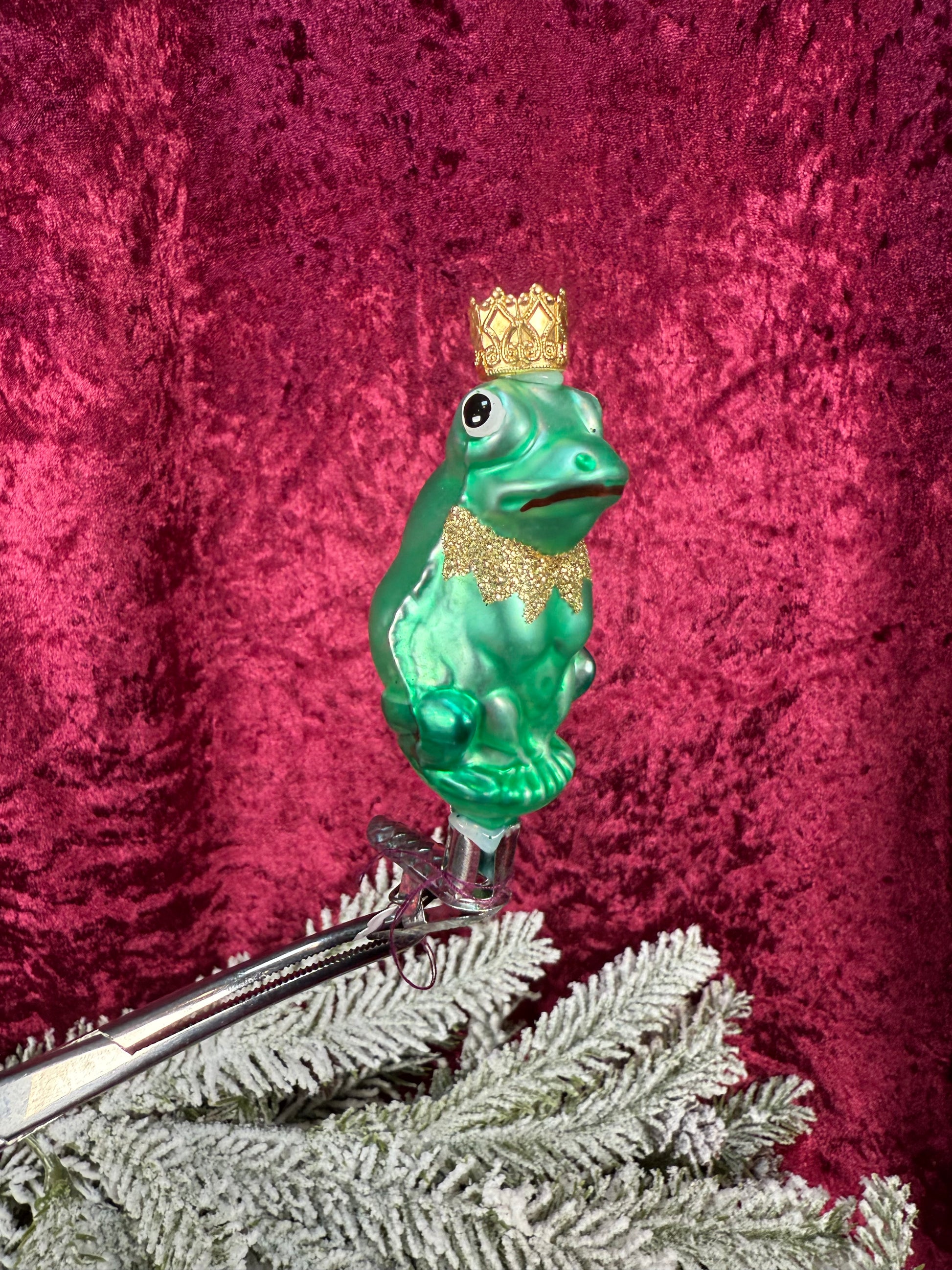 Vintage Christmas - Clip On Ornament - Hand Blown Glass - 3" Prince Frog