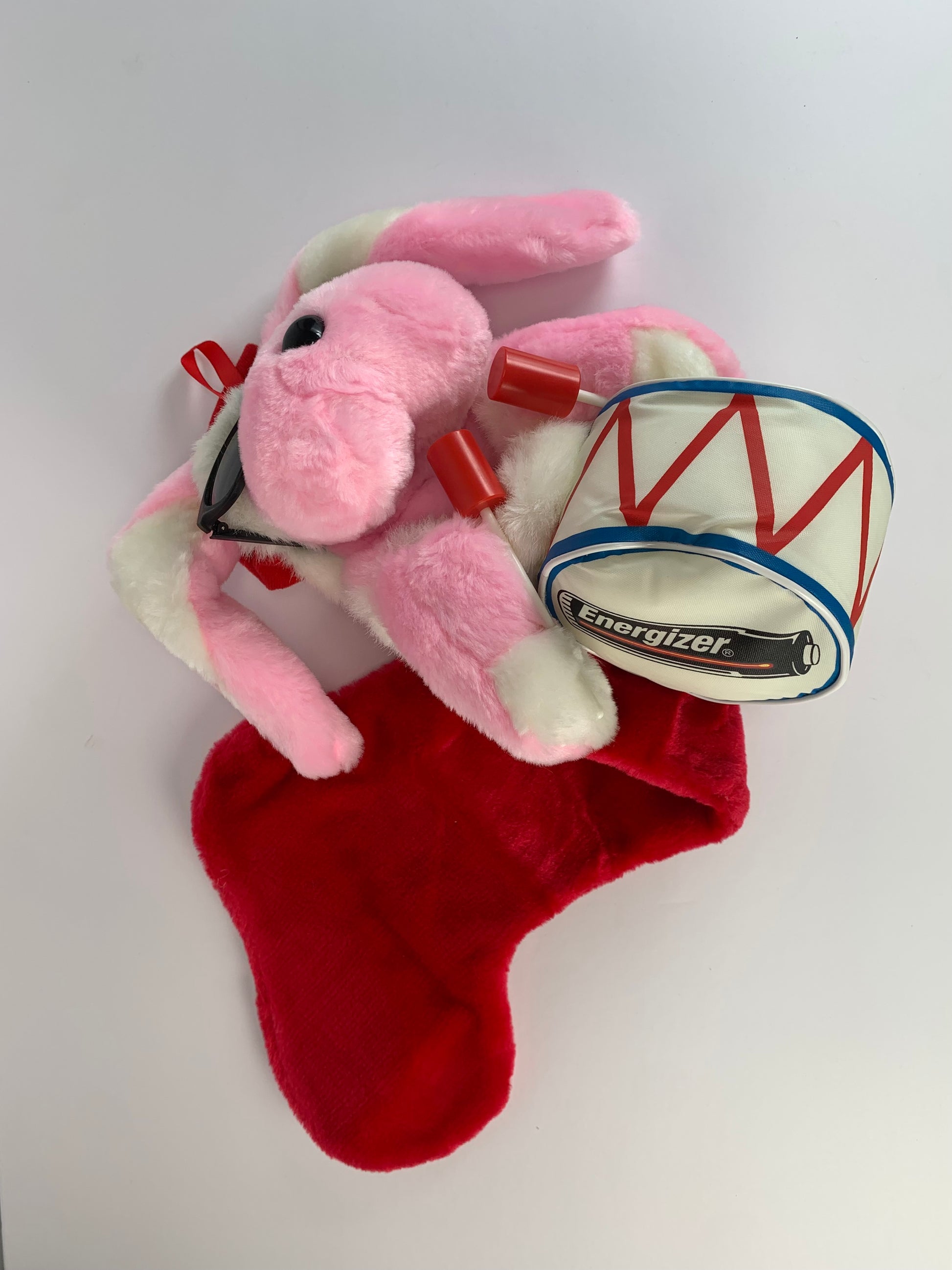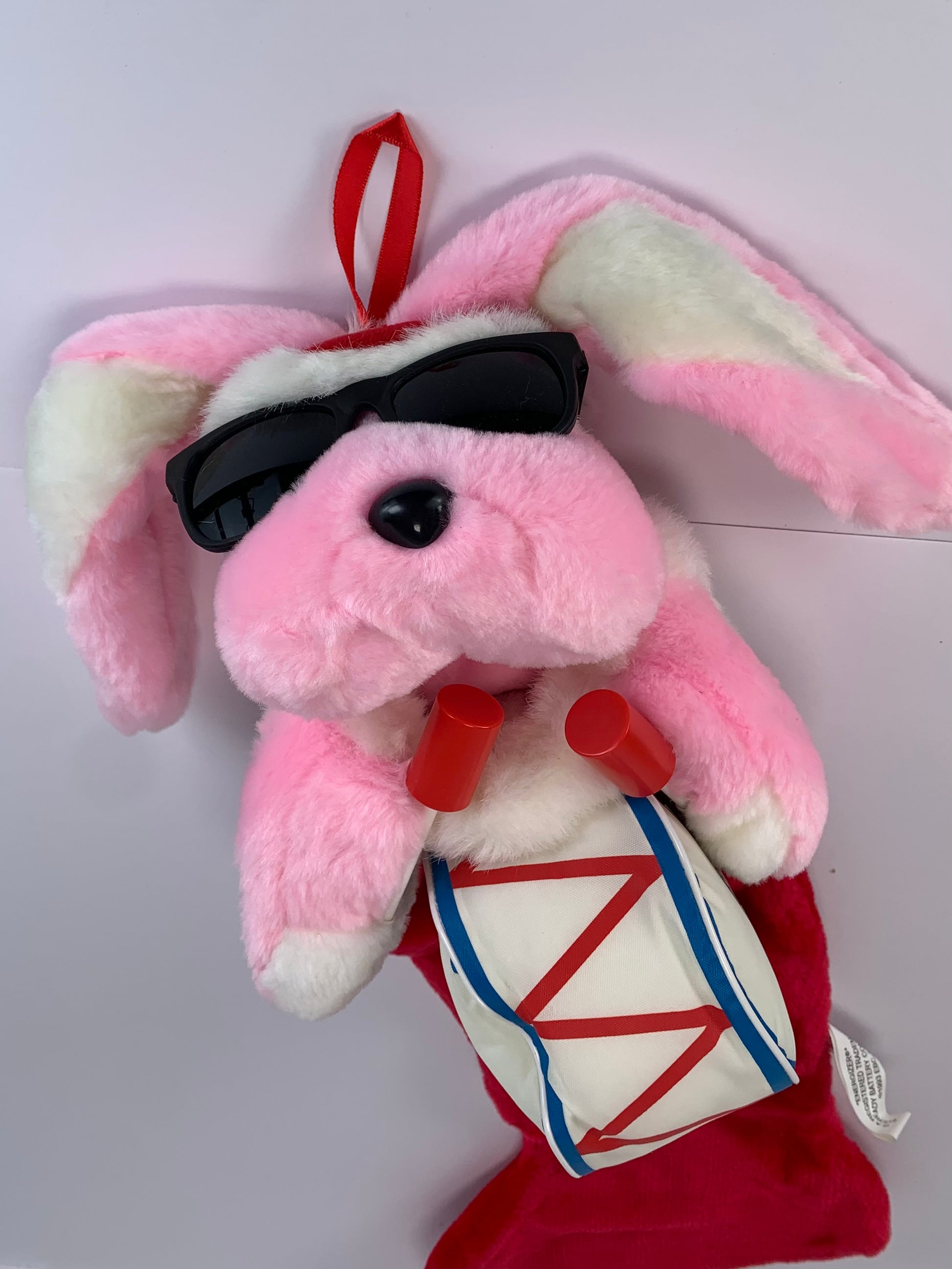 Vintage Christmas Decor - Energizer Buny Stocking - Pink Bunny Plush - 1993