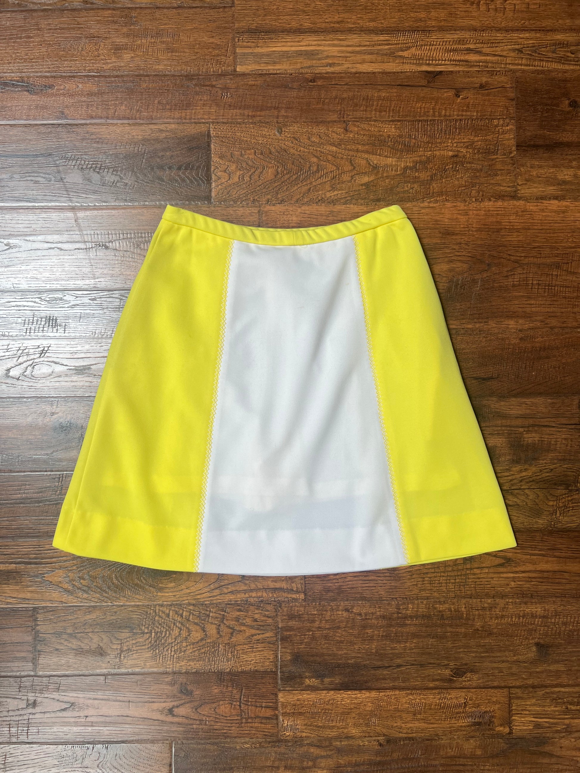Vintage Clothing - A-Line Above Knee Mod Skirt - Yellow and White - Medium - Haymaker