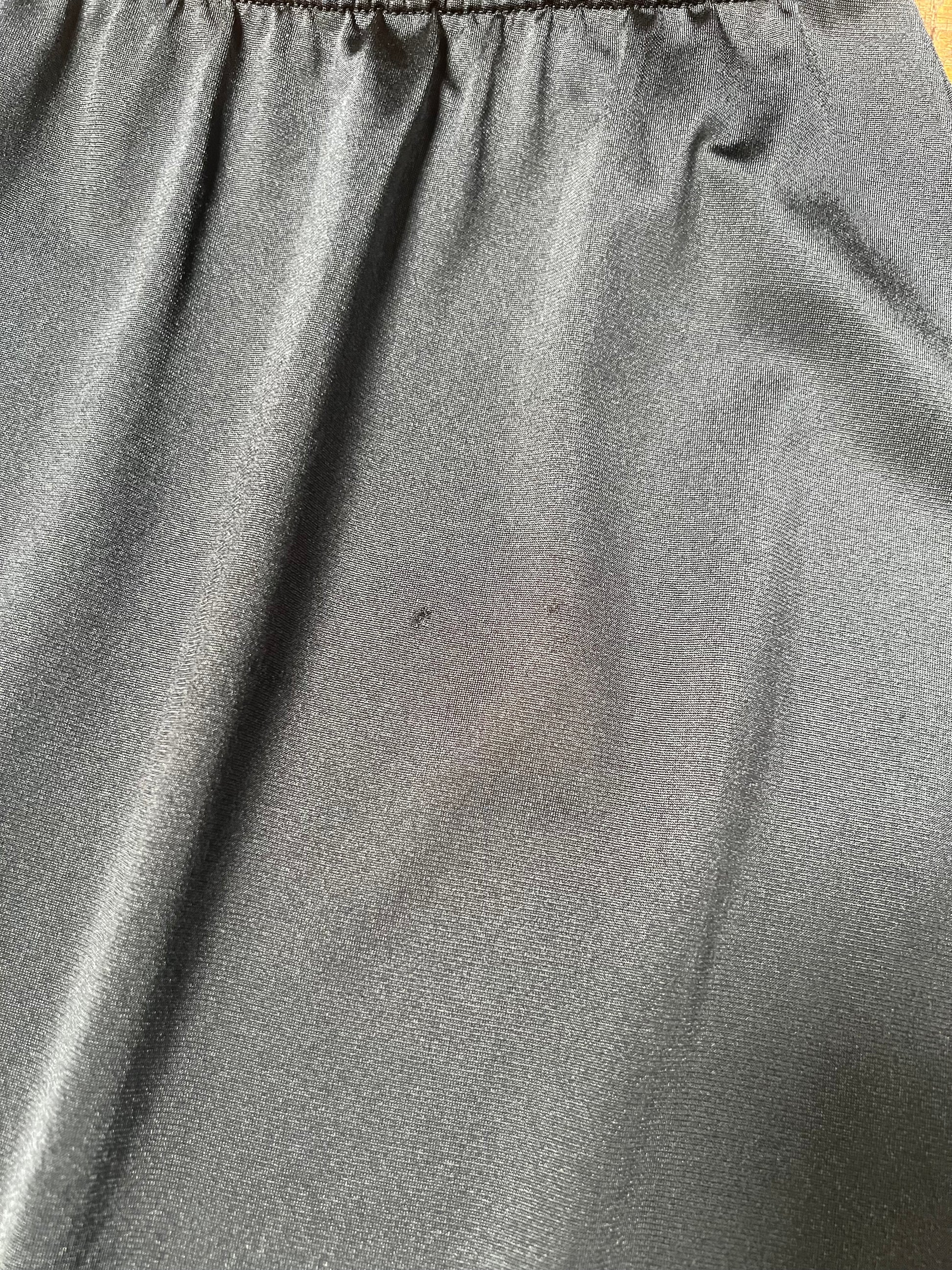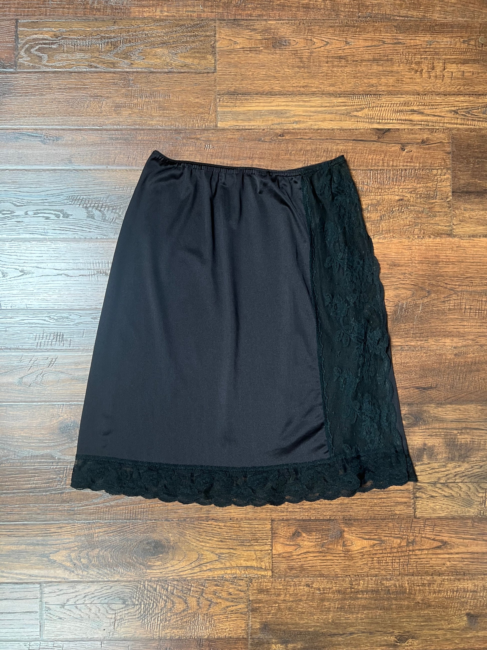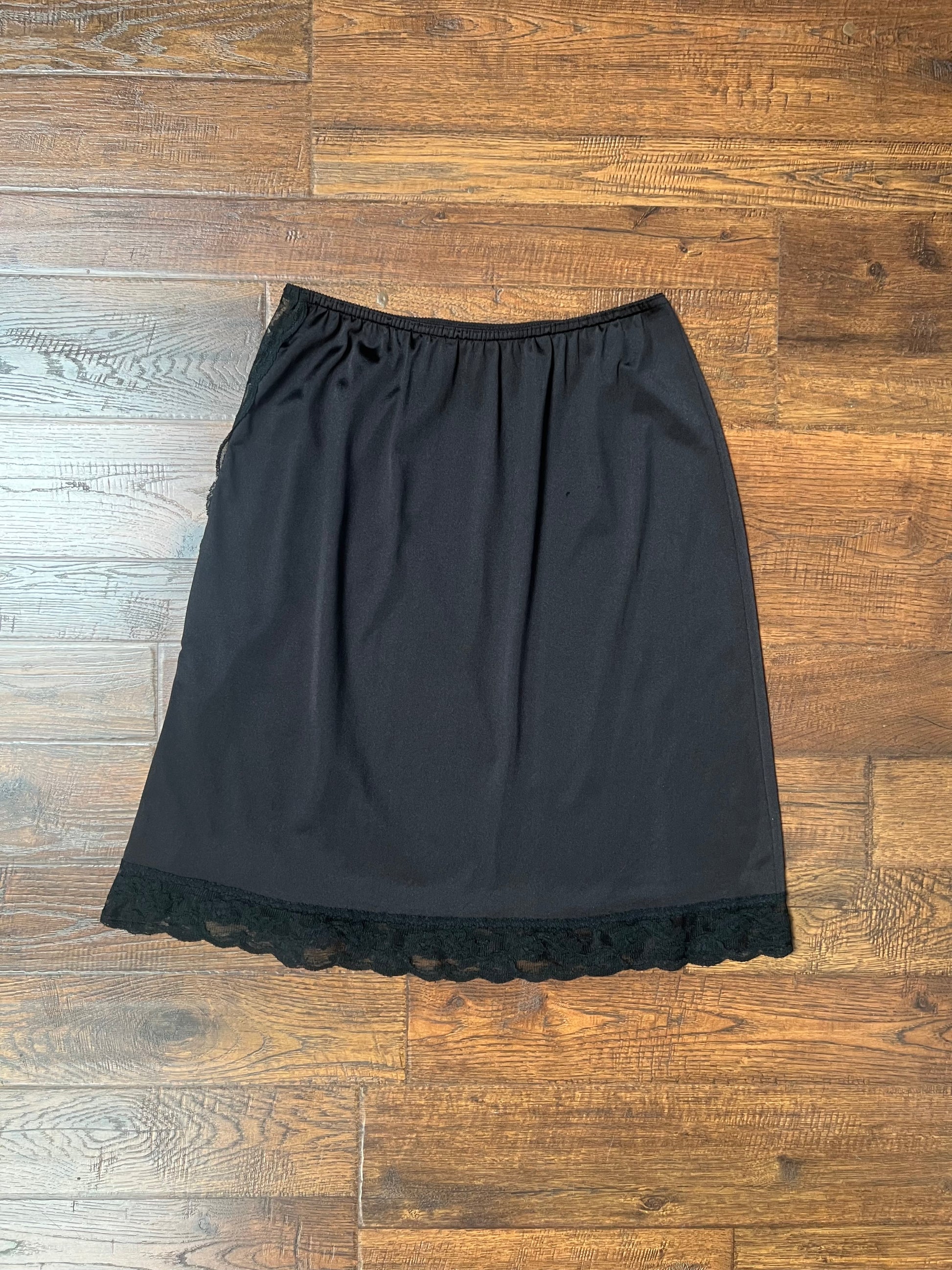 Vintage Clothing - Above Knee Skirt Slip - Black Satin with See Through Lace Slit - Medium