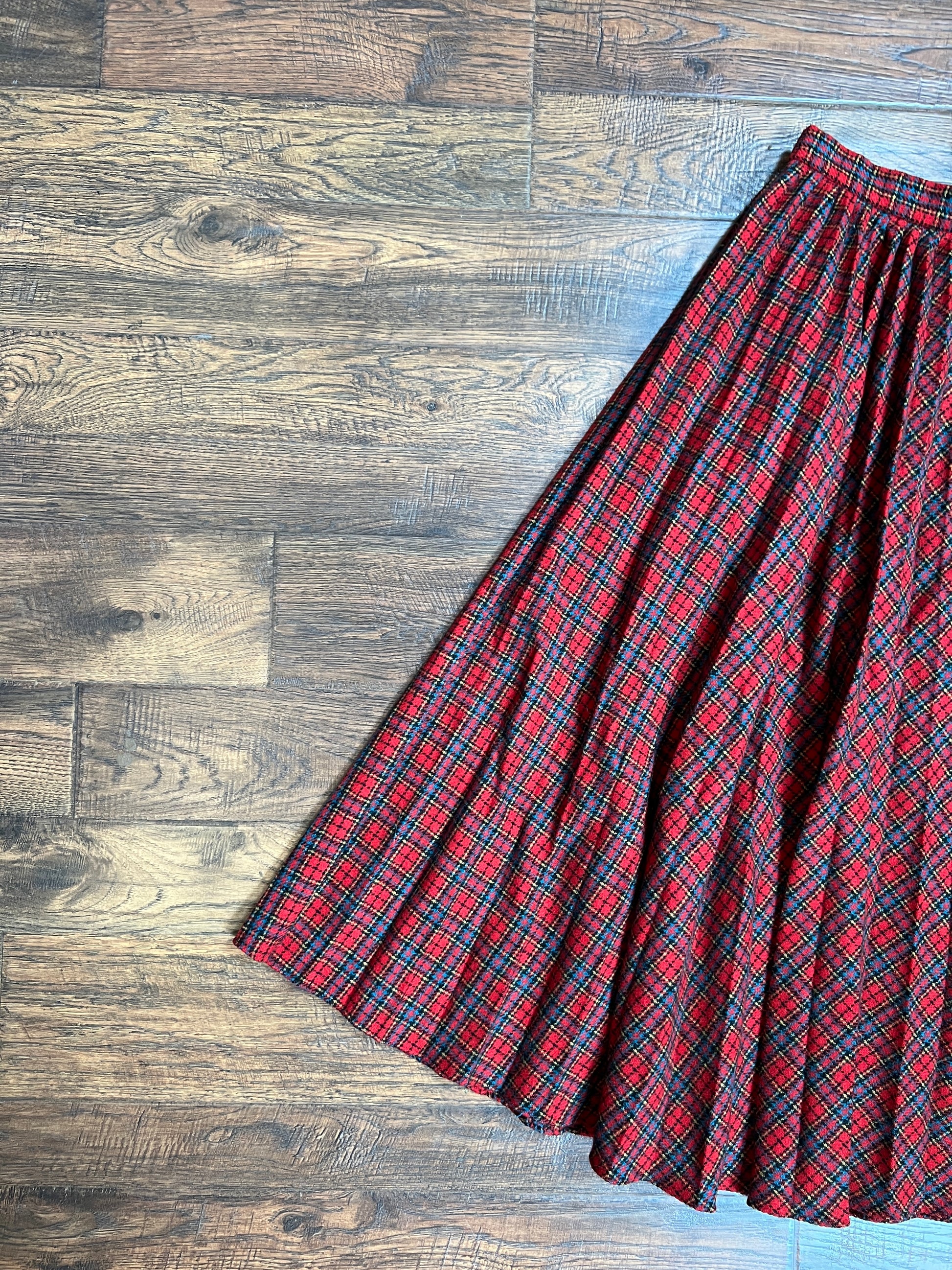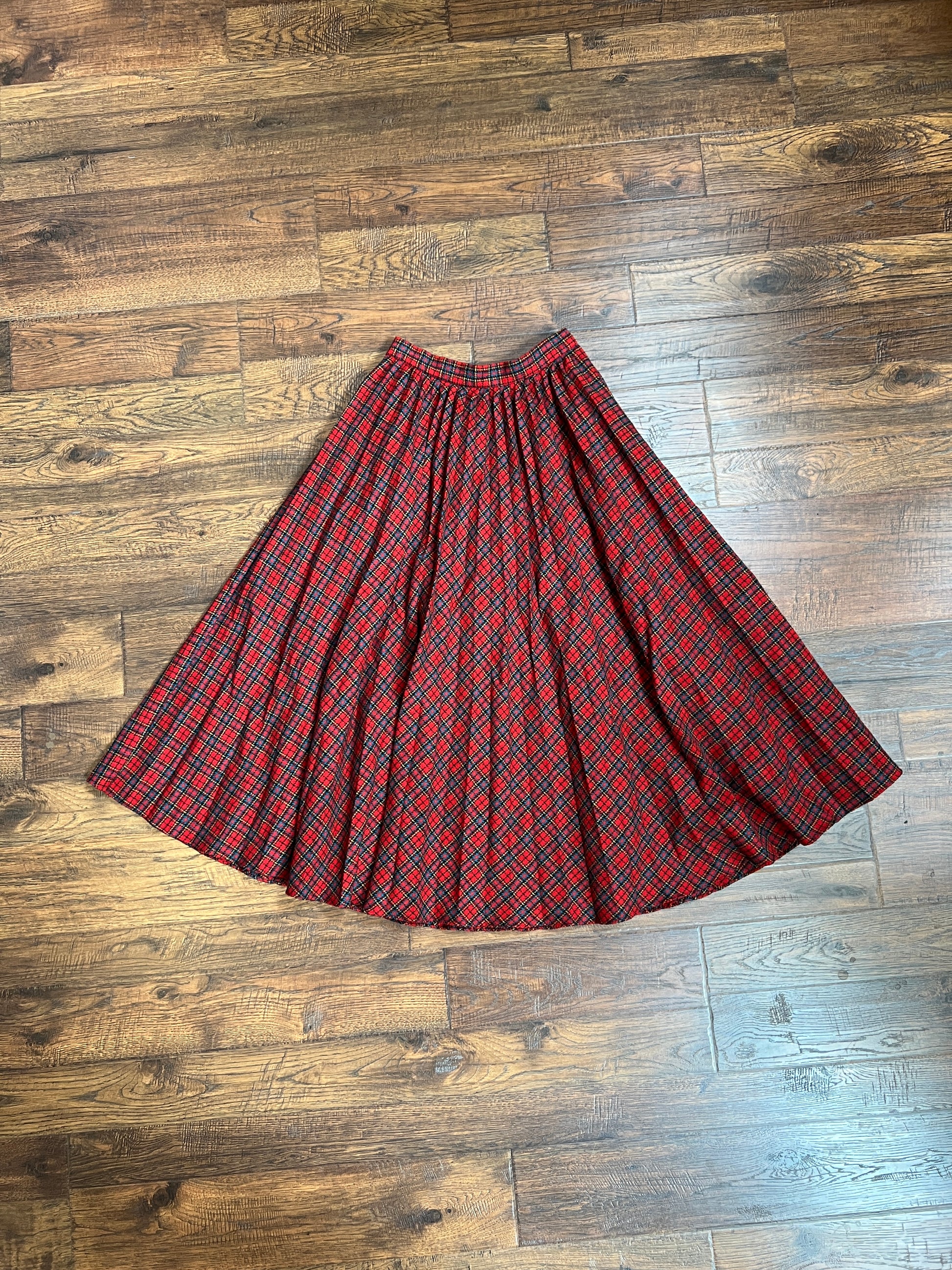 Vintage Clothing - Below The Knee Skirt - Red Plaid - X-Small - Doro Tennis