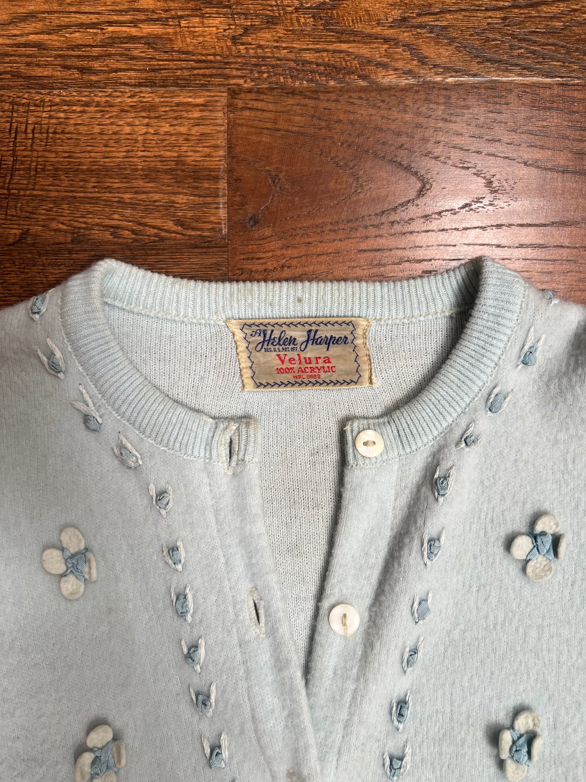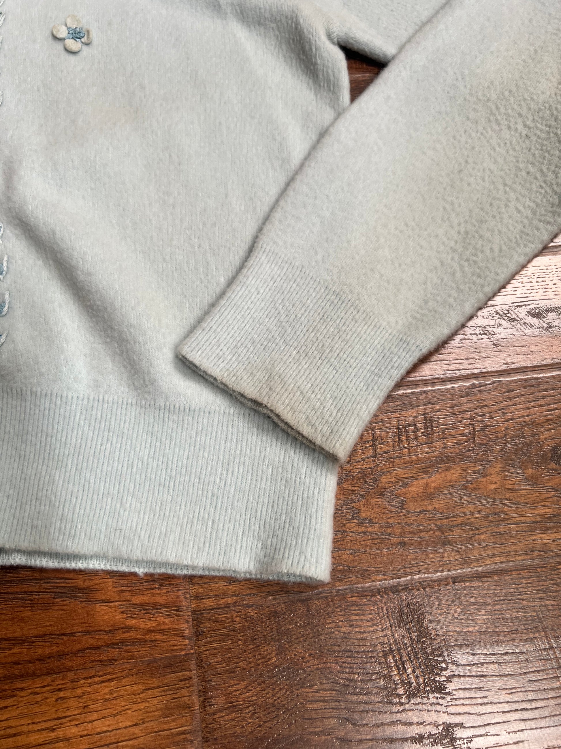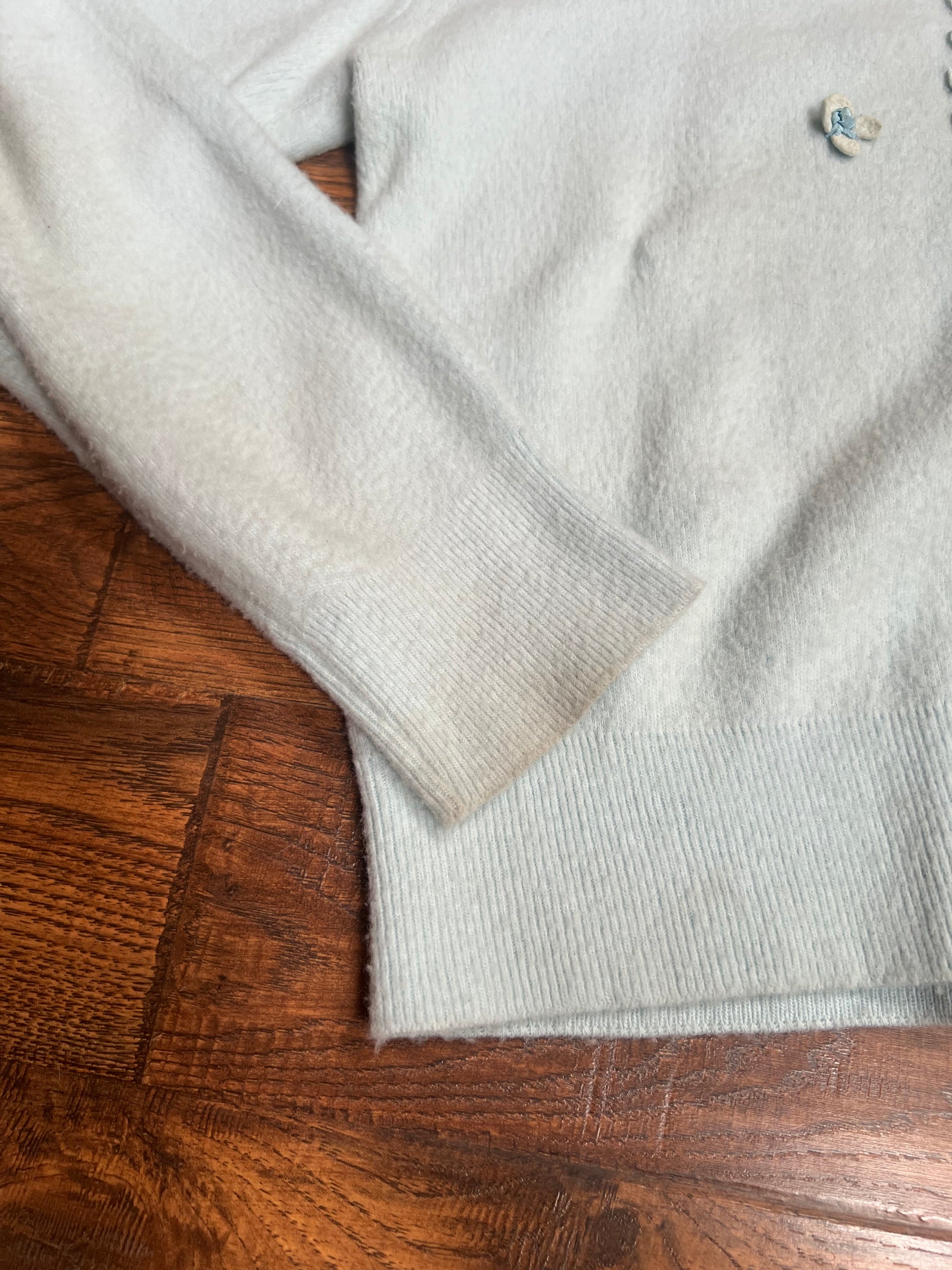 Vintage Clothing - Button Up Cardigan - Baby Blue with Embroidered Flowers - Helen Harper - Medium