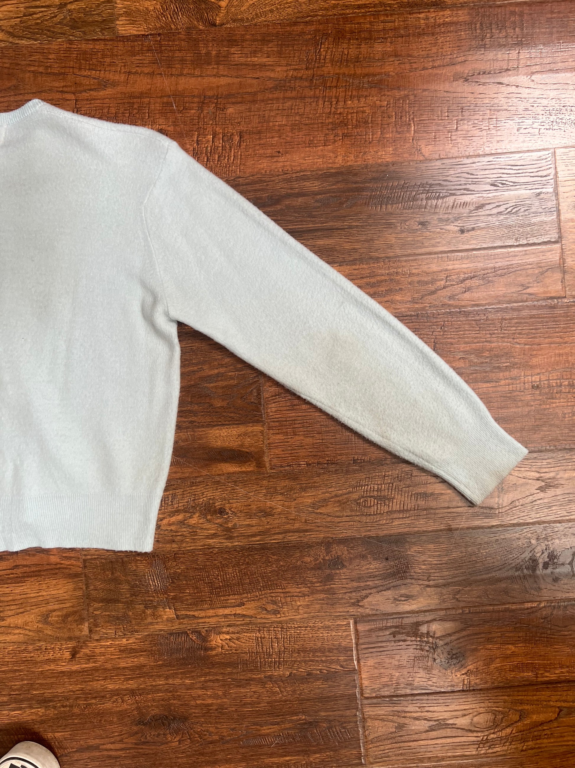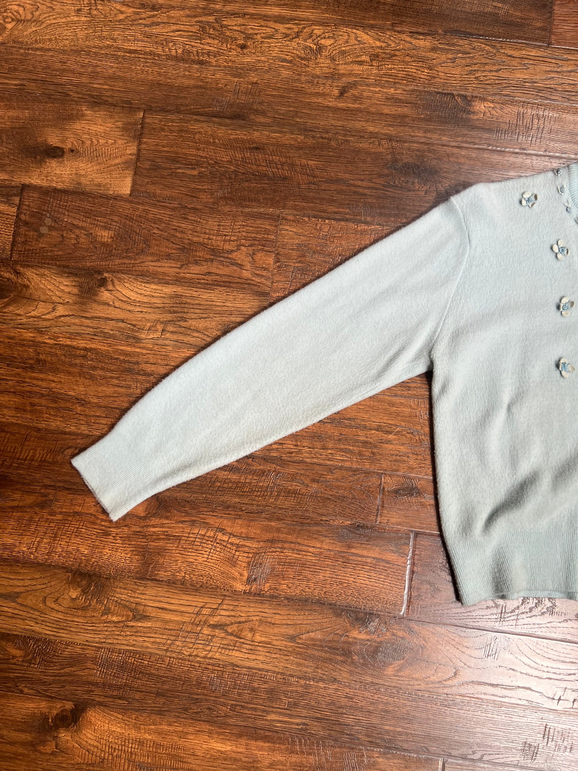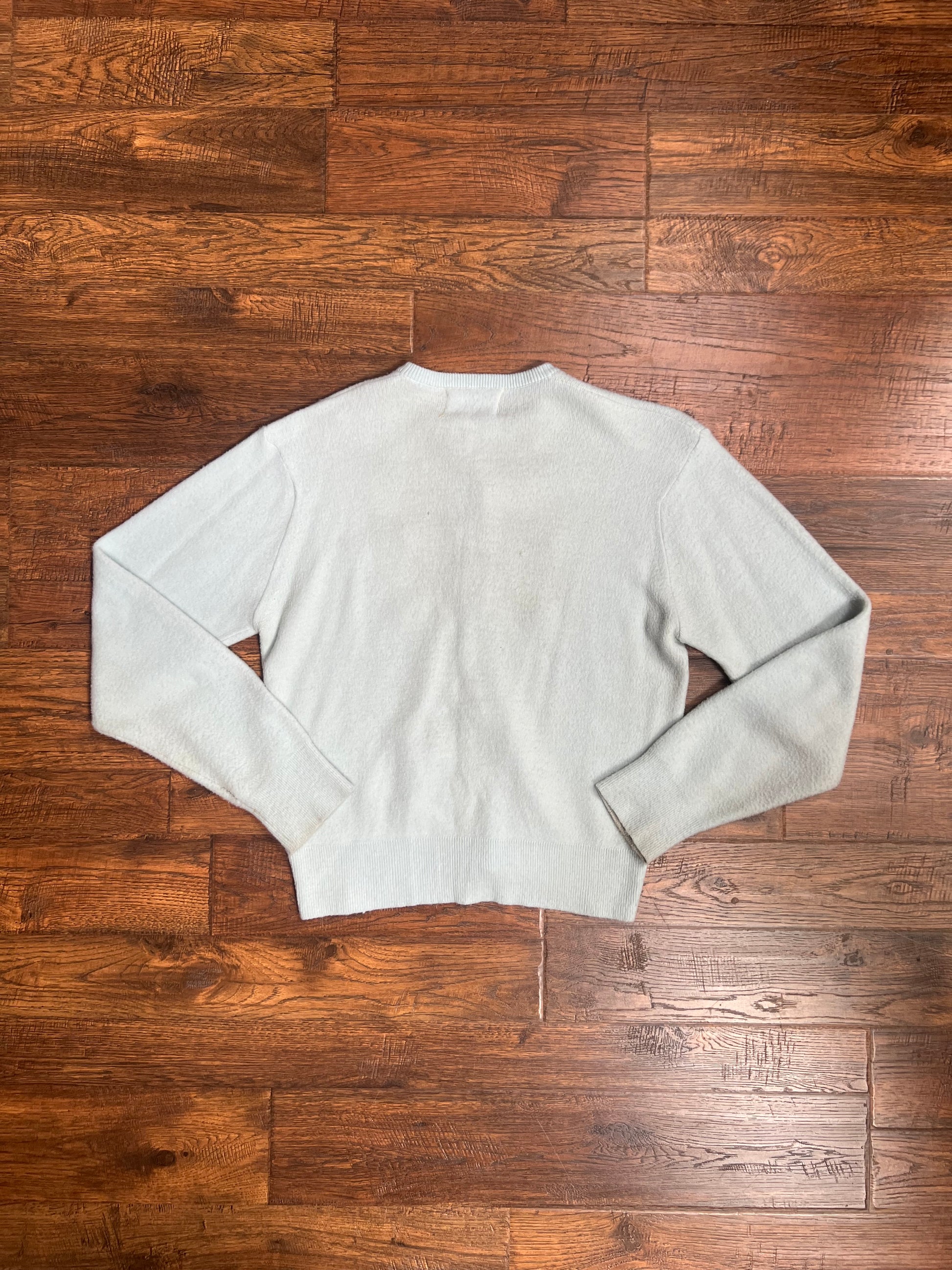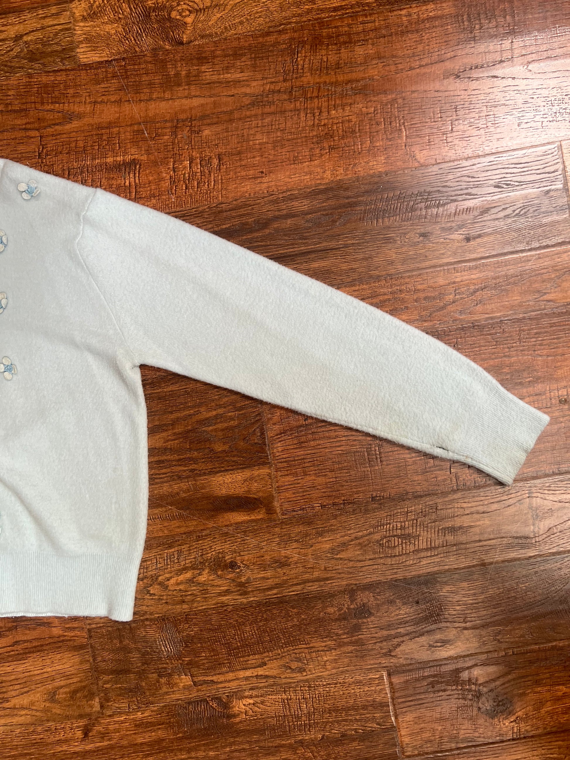 Vintage Clothing - Button Up Cardigan - Baby Blue with Embroidered Flowers - Helen Harper - Medium