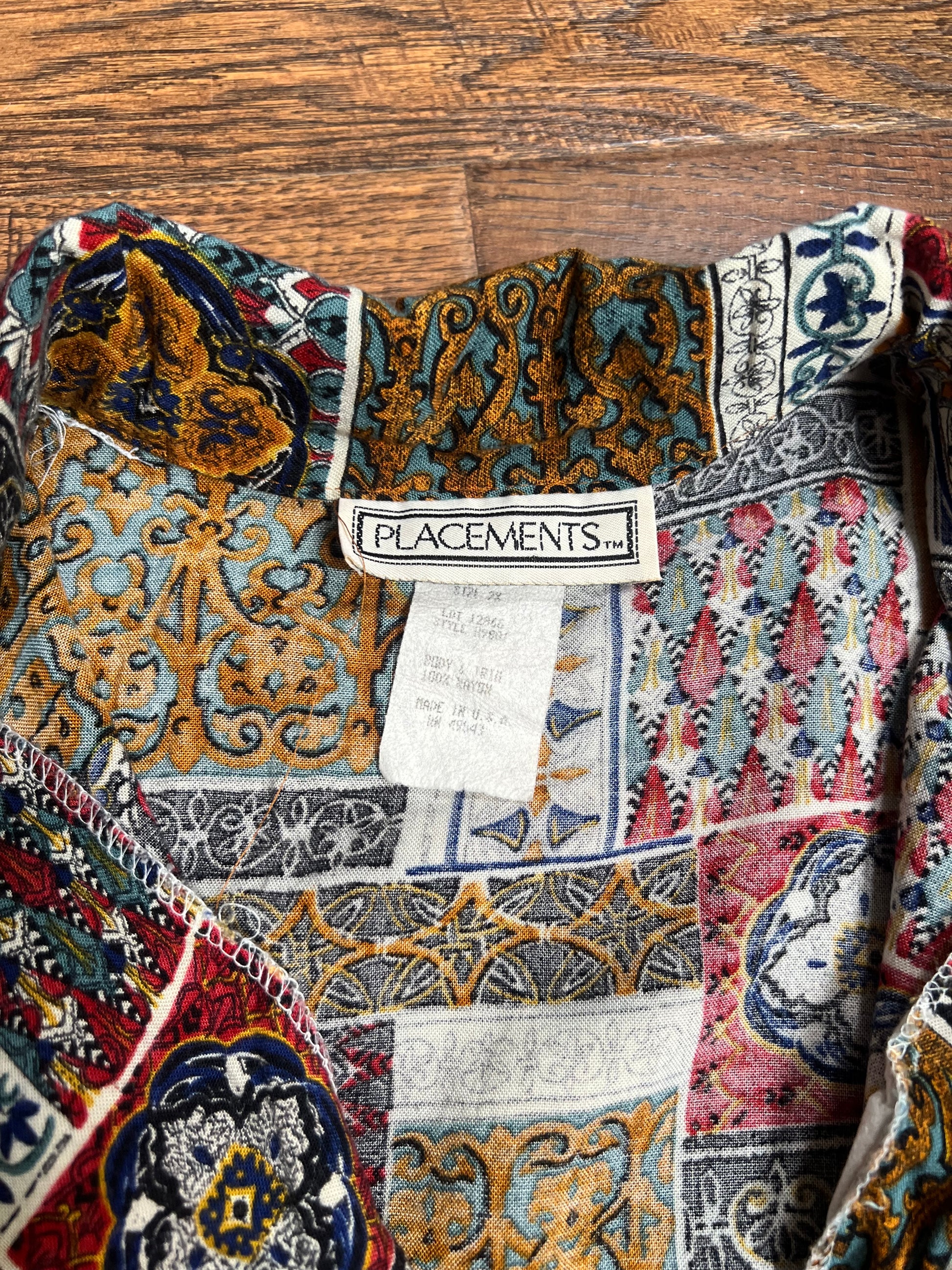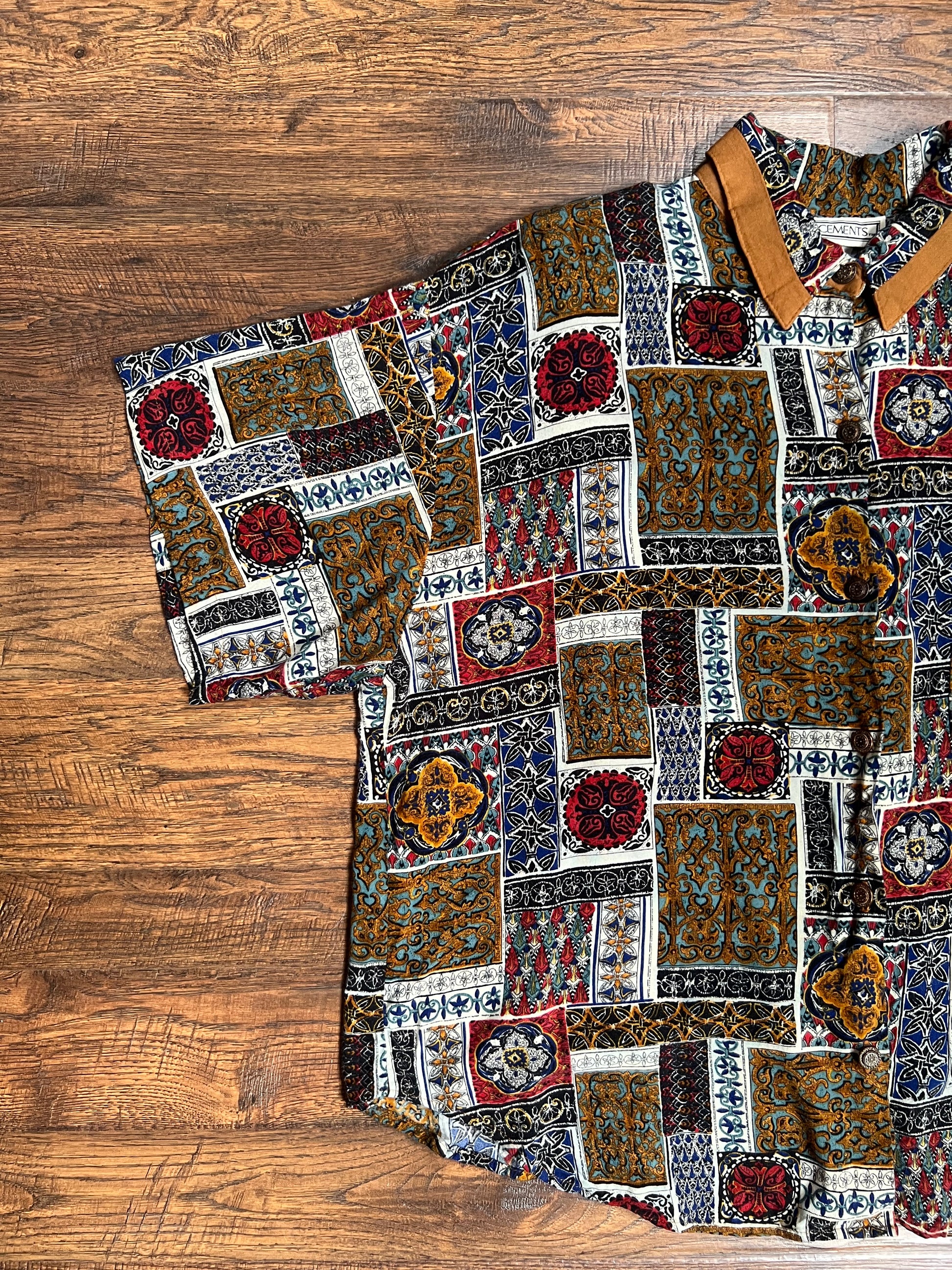 Vintage Clothing - Collared Button Up Short Sleeve Shirt - Mosaic Tiles Print - X-Large - Placements
