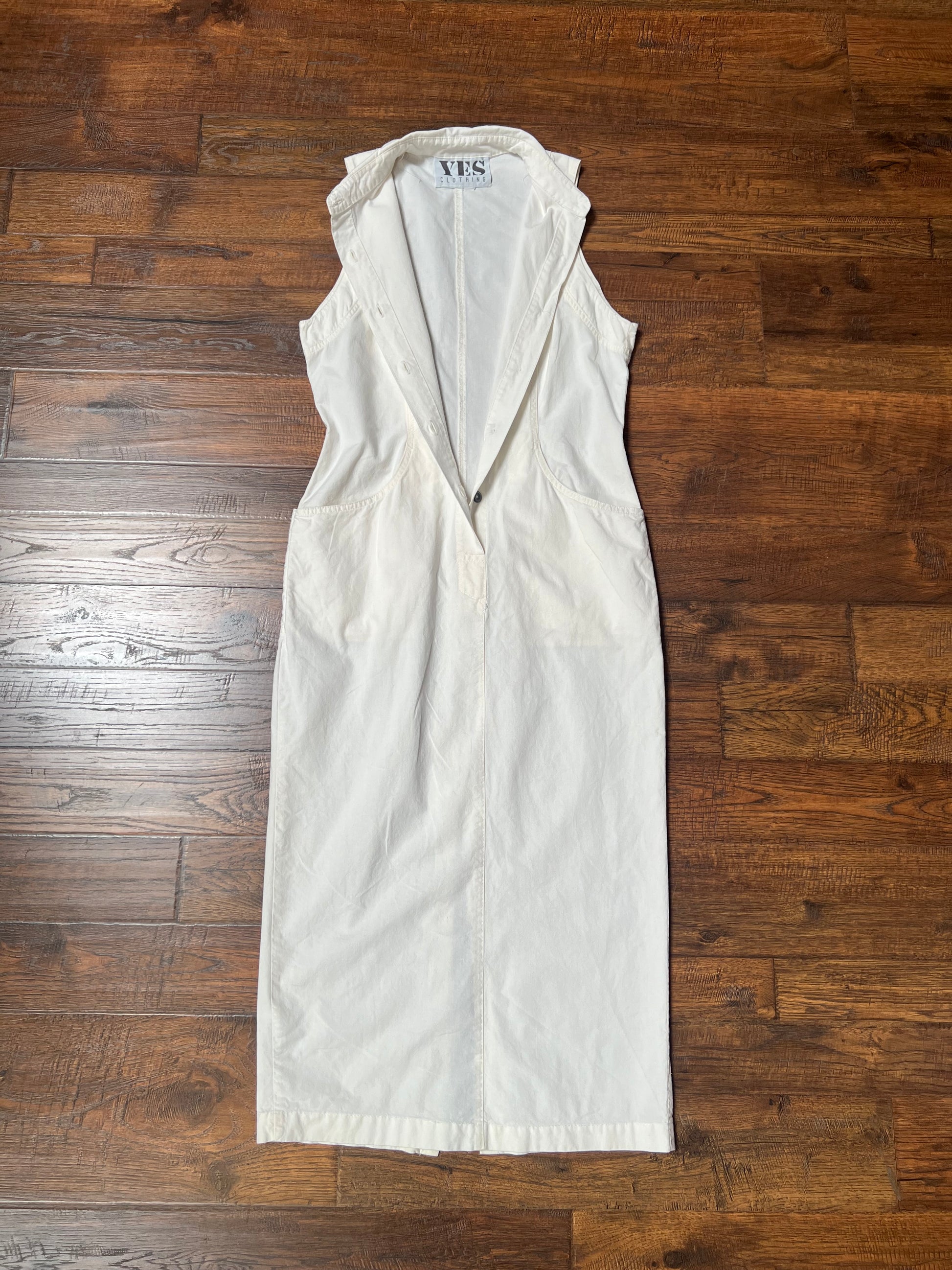Vintage Clothing - Full Length Sleeveless Shirt Dress - Button Front - White - Medium - YES Clothing