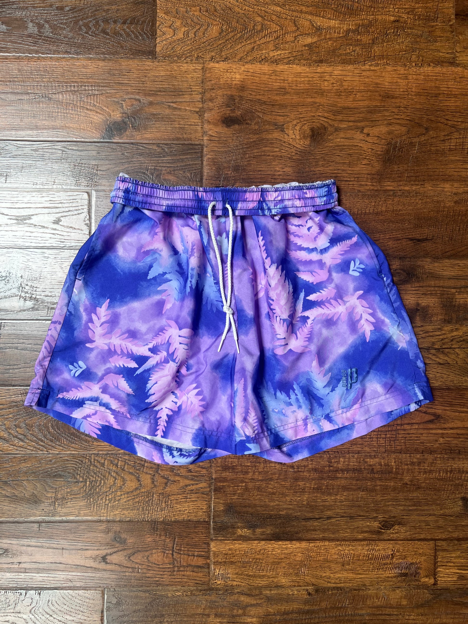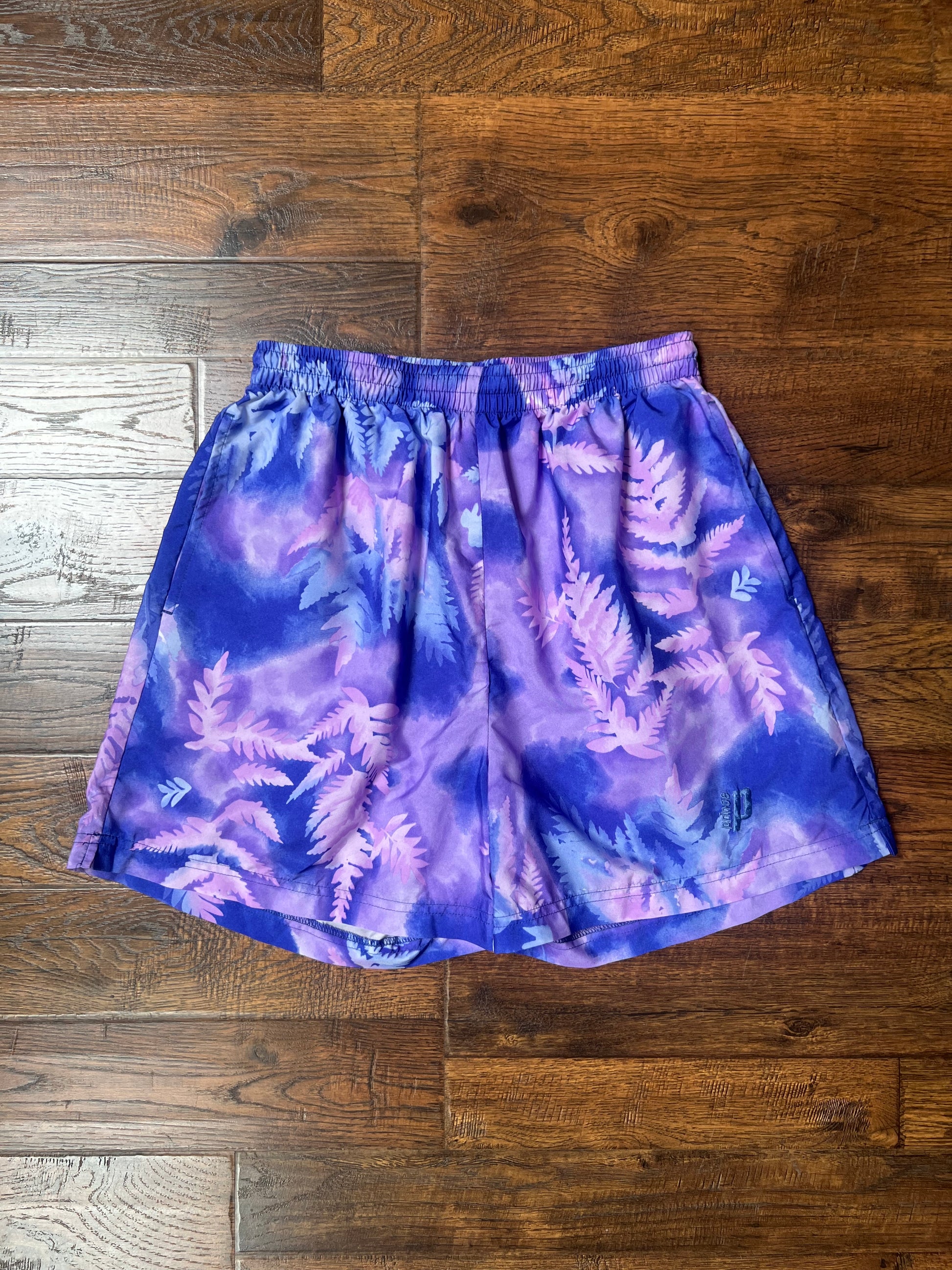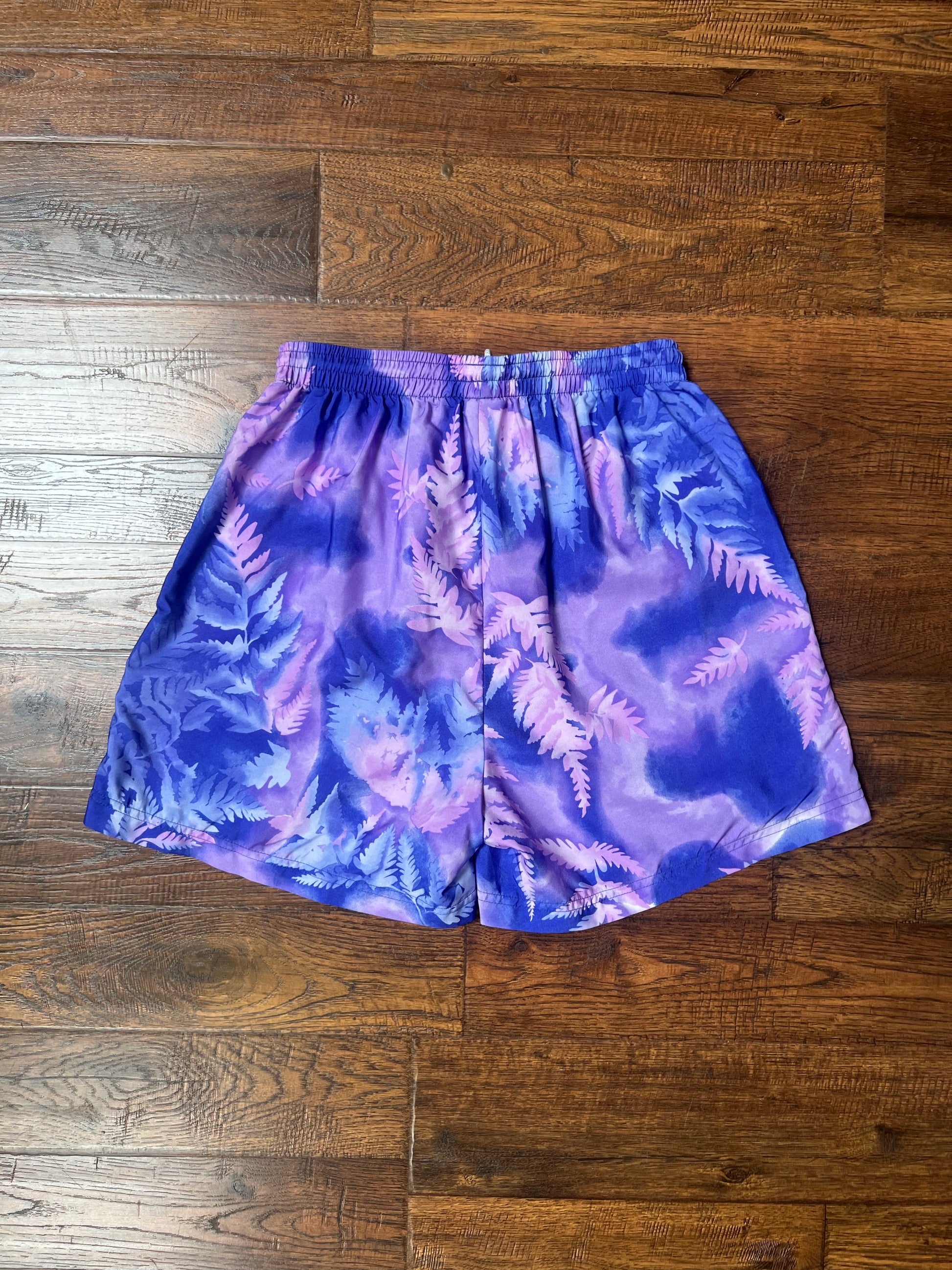 Vintage Clothing - Gym Shorts - Purple Fern Foliage - Medium - Prince Sportswear