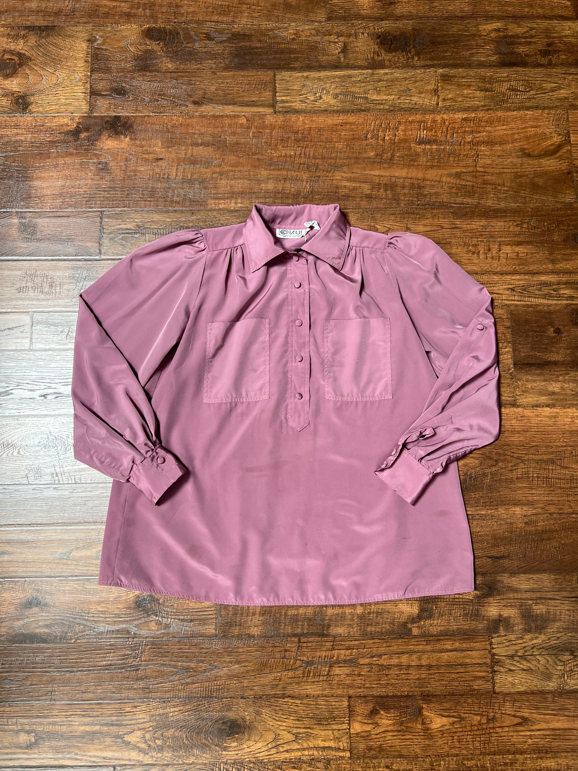 Vintage Clothing - Half-Button Front Blouse - Deep Lilac - Medium - Chaus