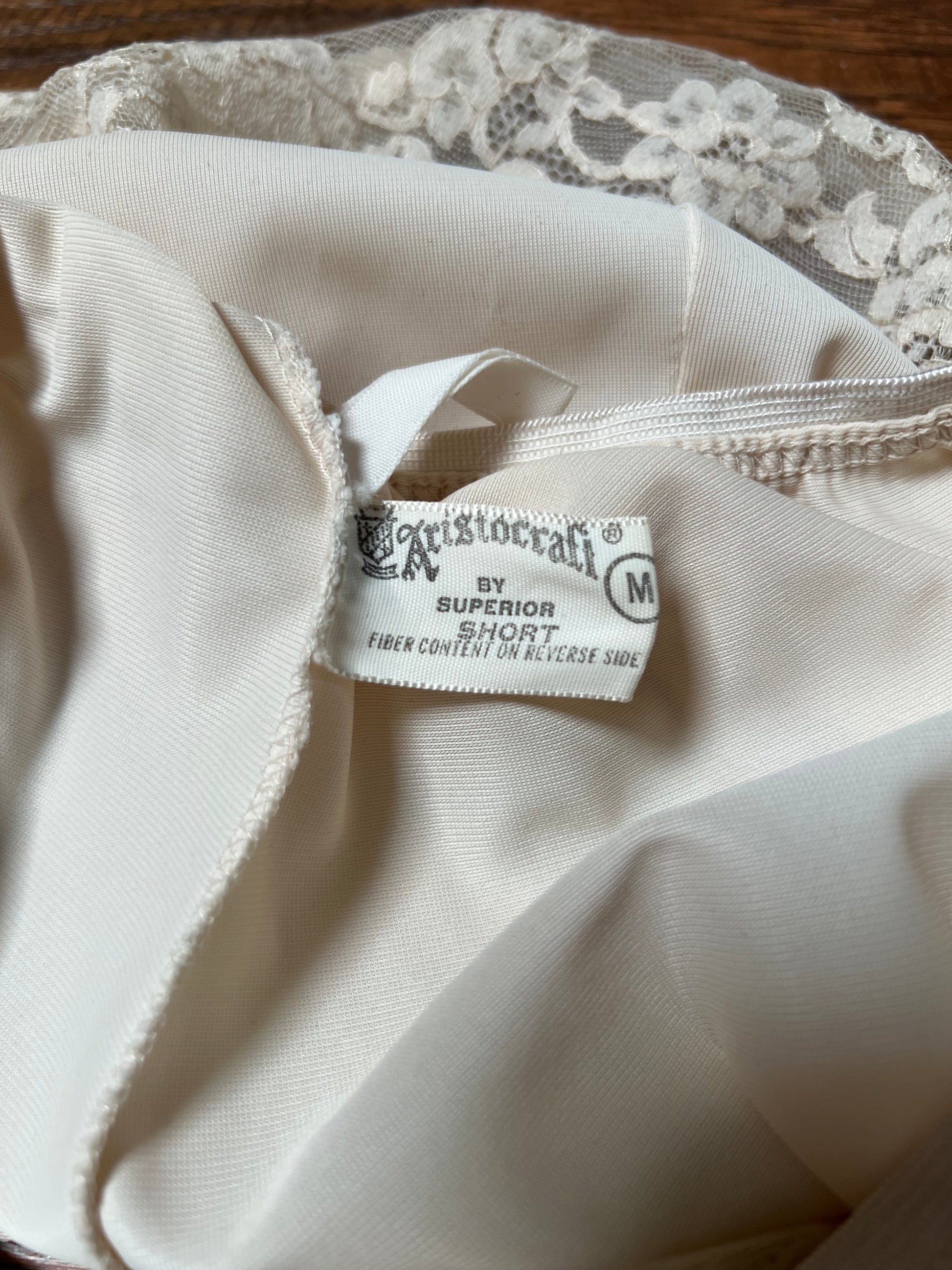 Vintage Clothing - Knee Length Skirt Slip - Nude - Floral Lace Hem - Short Leg Slit - Small - Aristocraft