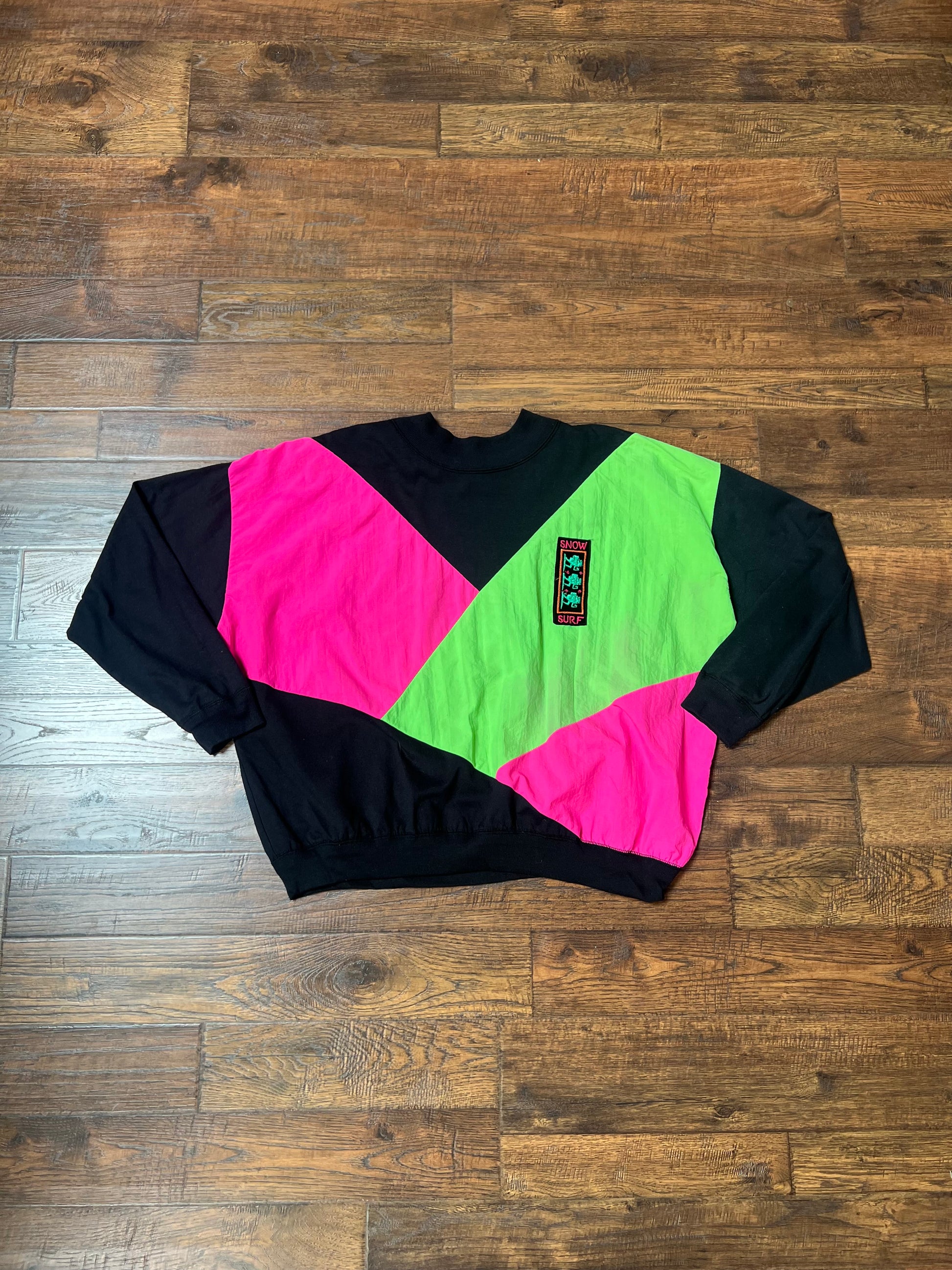 Vintage Clothing - Lightweight Pullover Sweatshirt - 80's Neon Color Block - Ms. Jik - Large