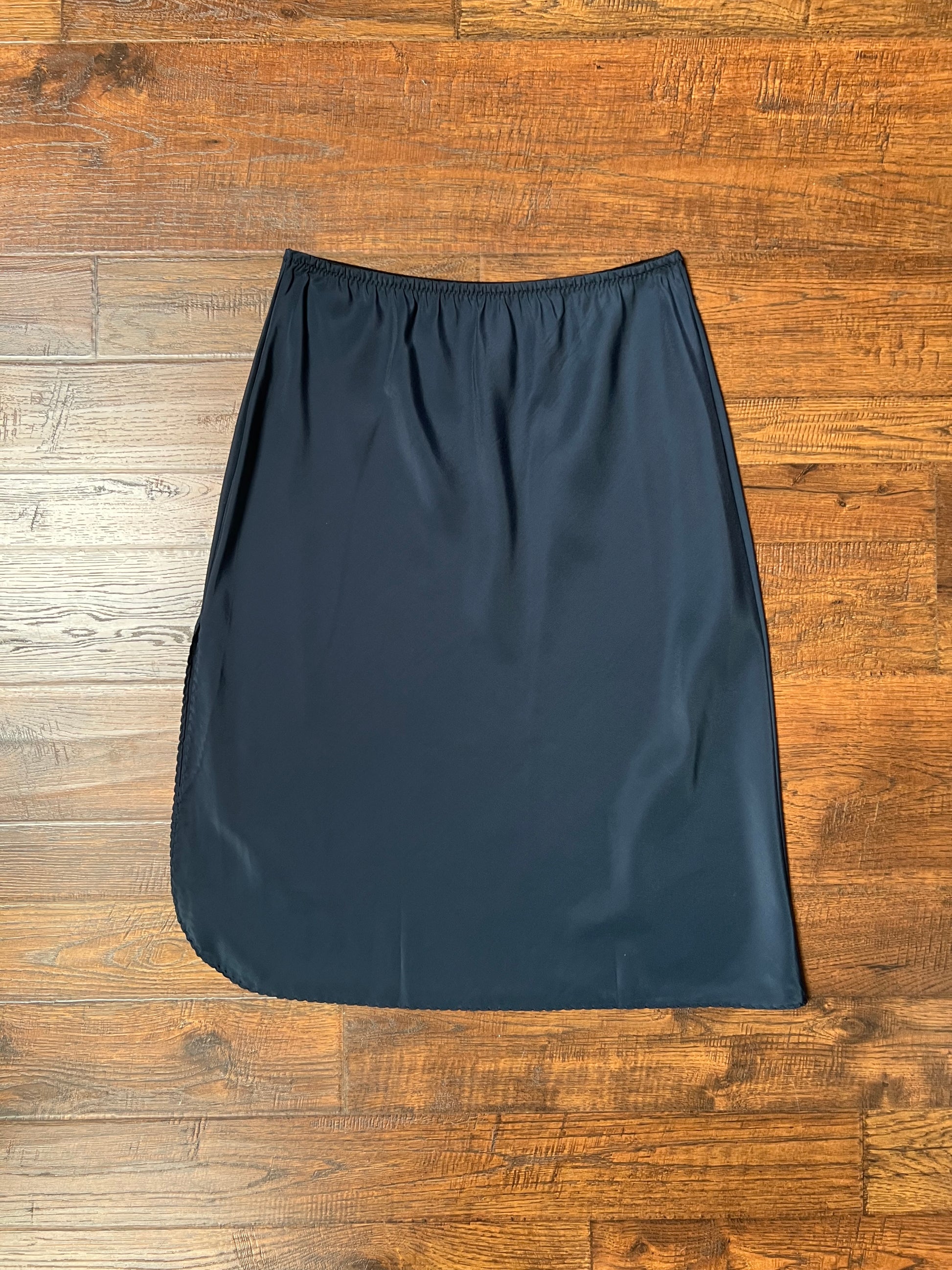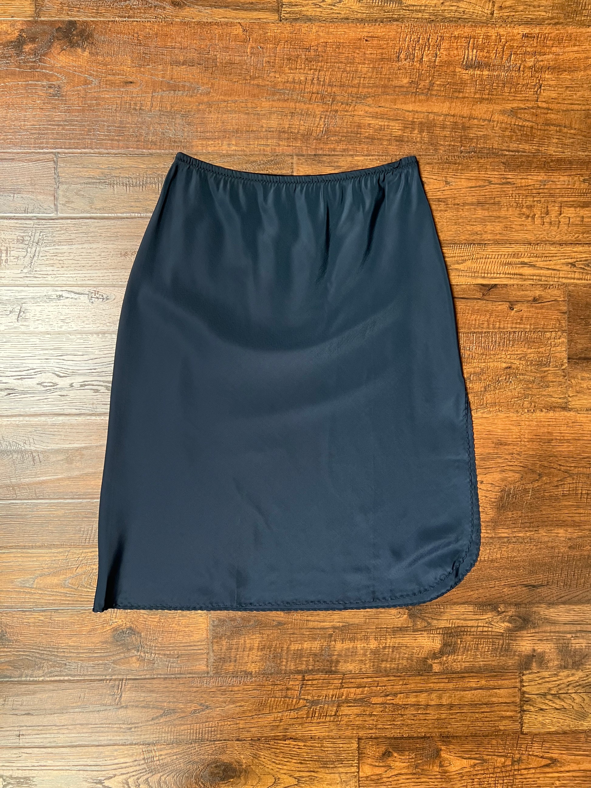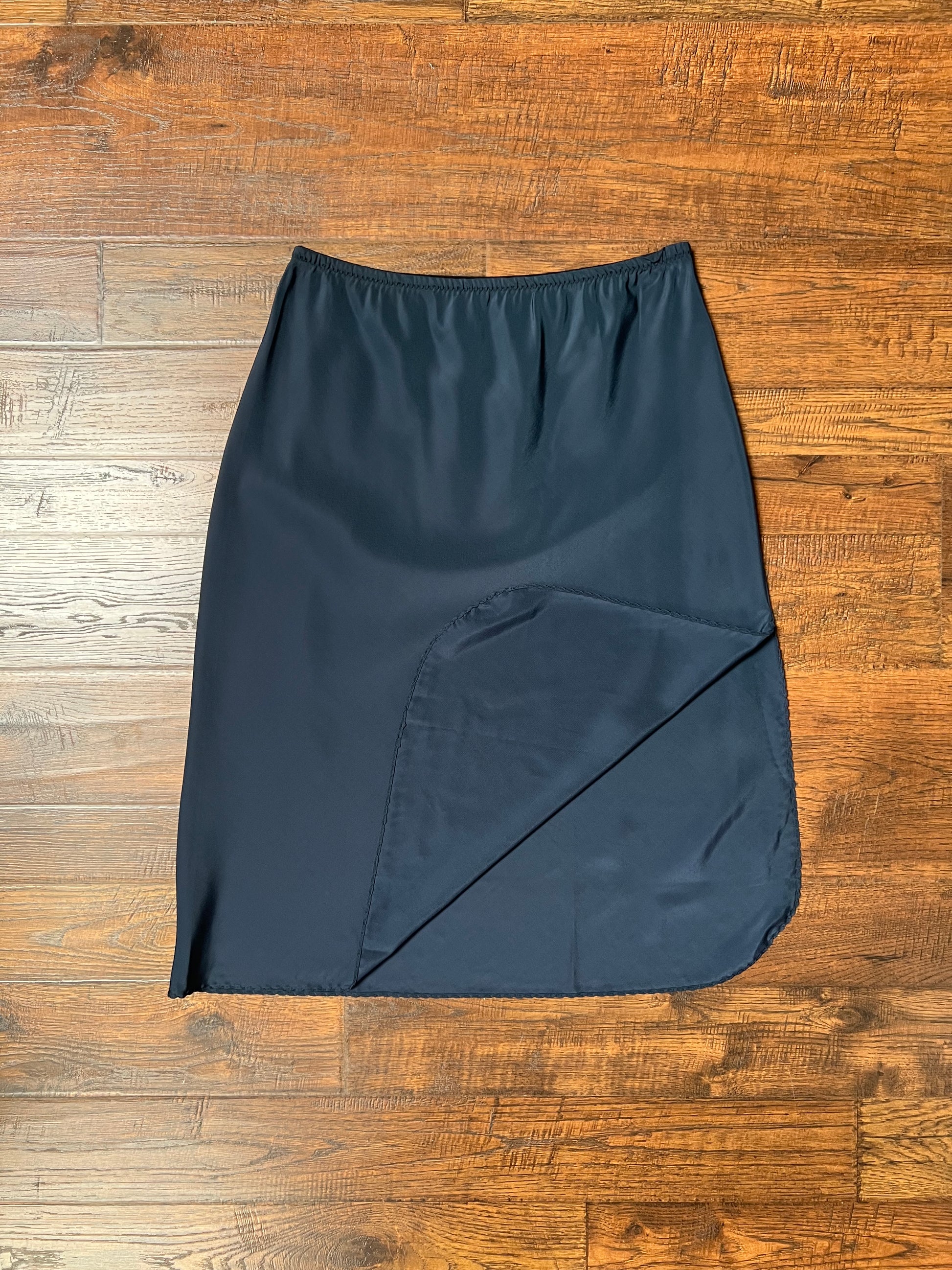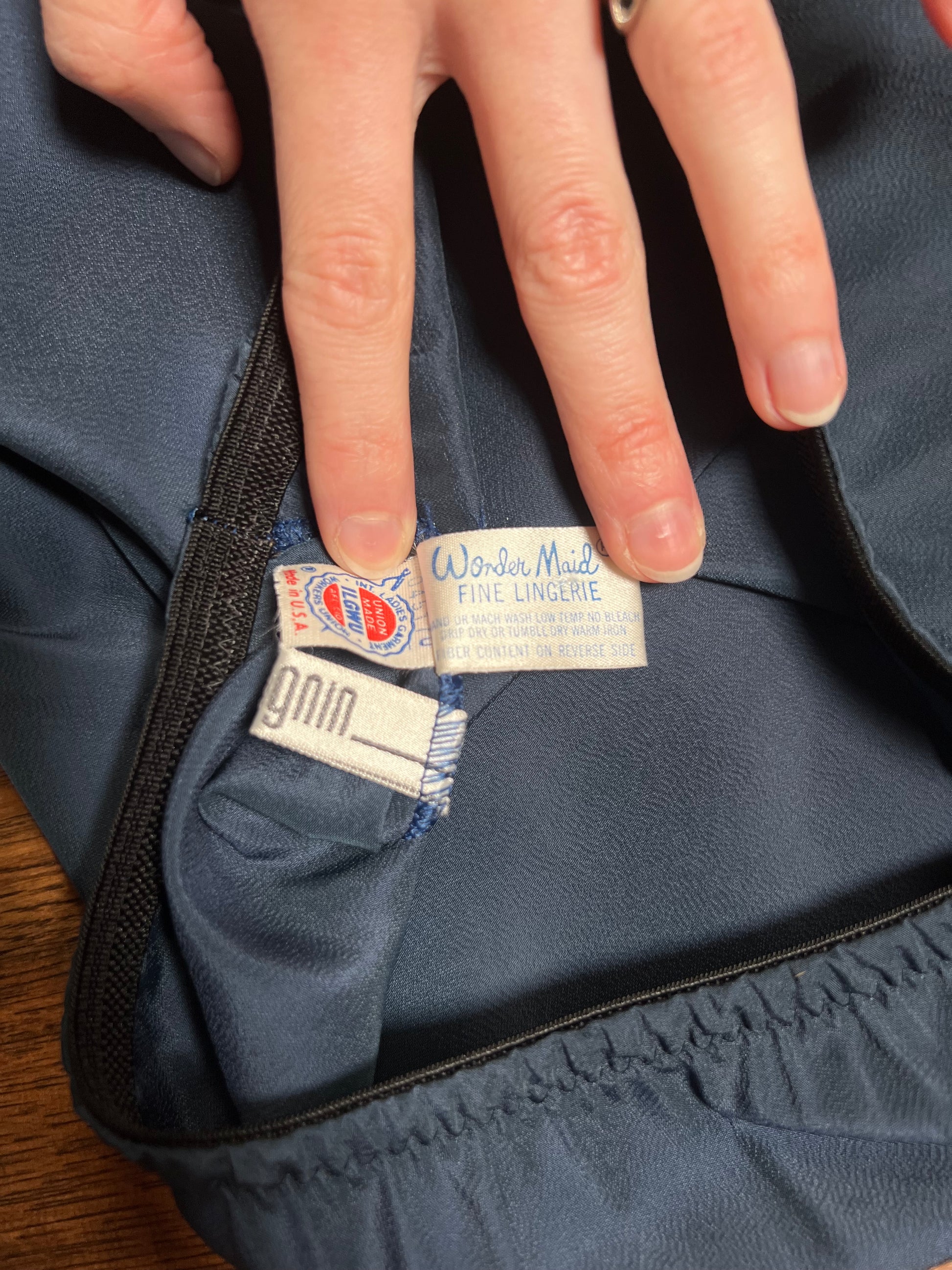 Vintage Clothing - Mid-Length Skirt Slip - Navy Blue with Leg Slit - Scalloped Hem - Wonder Maid Fine Lingerie for I. Magnin