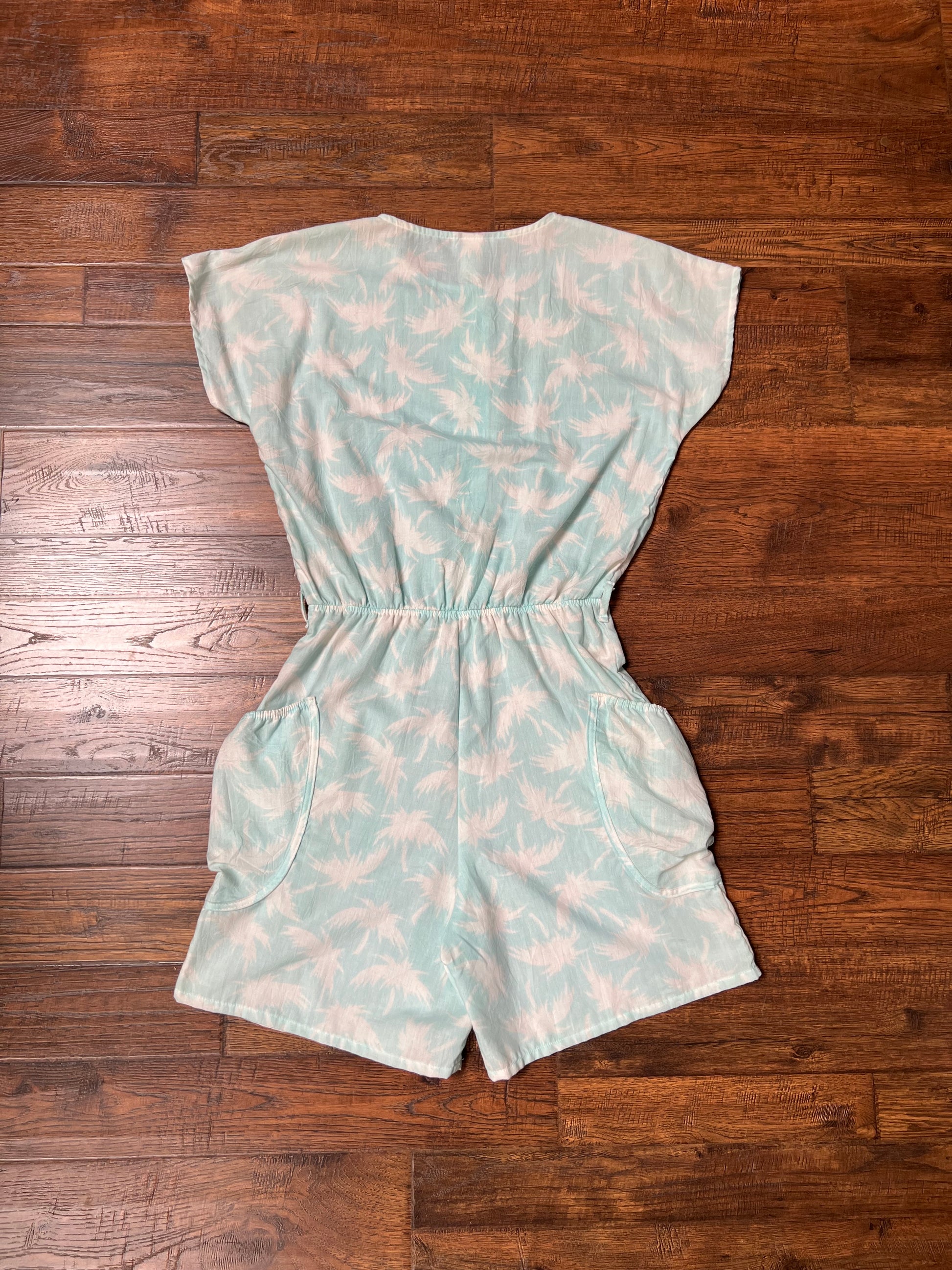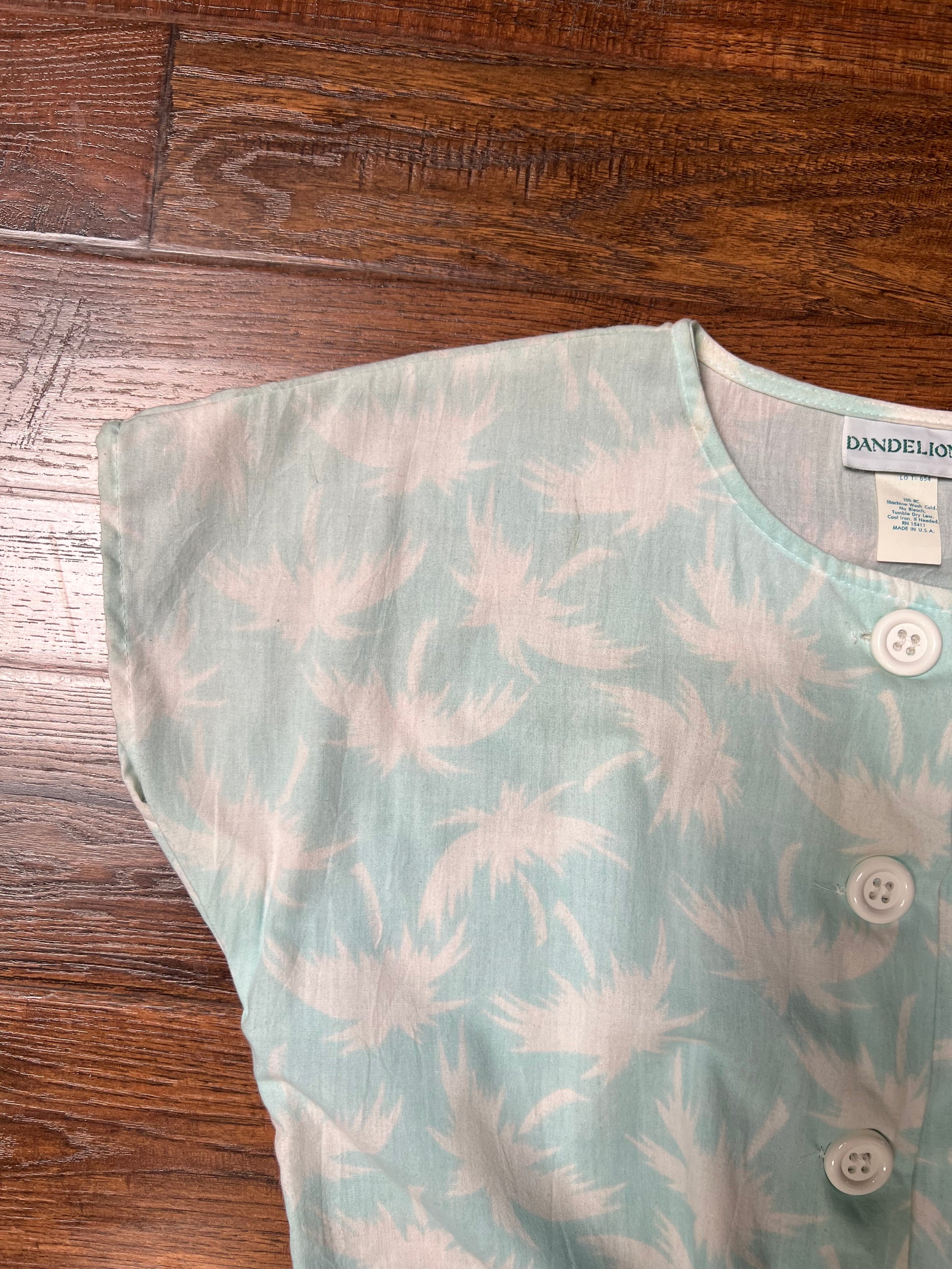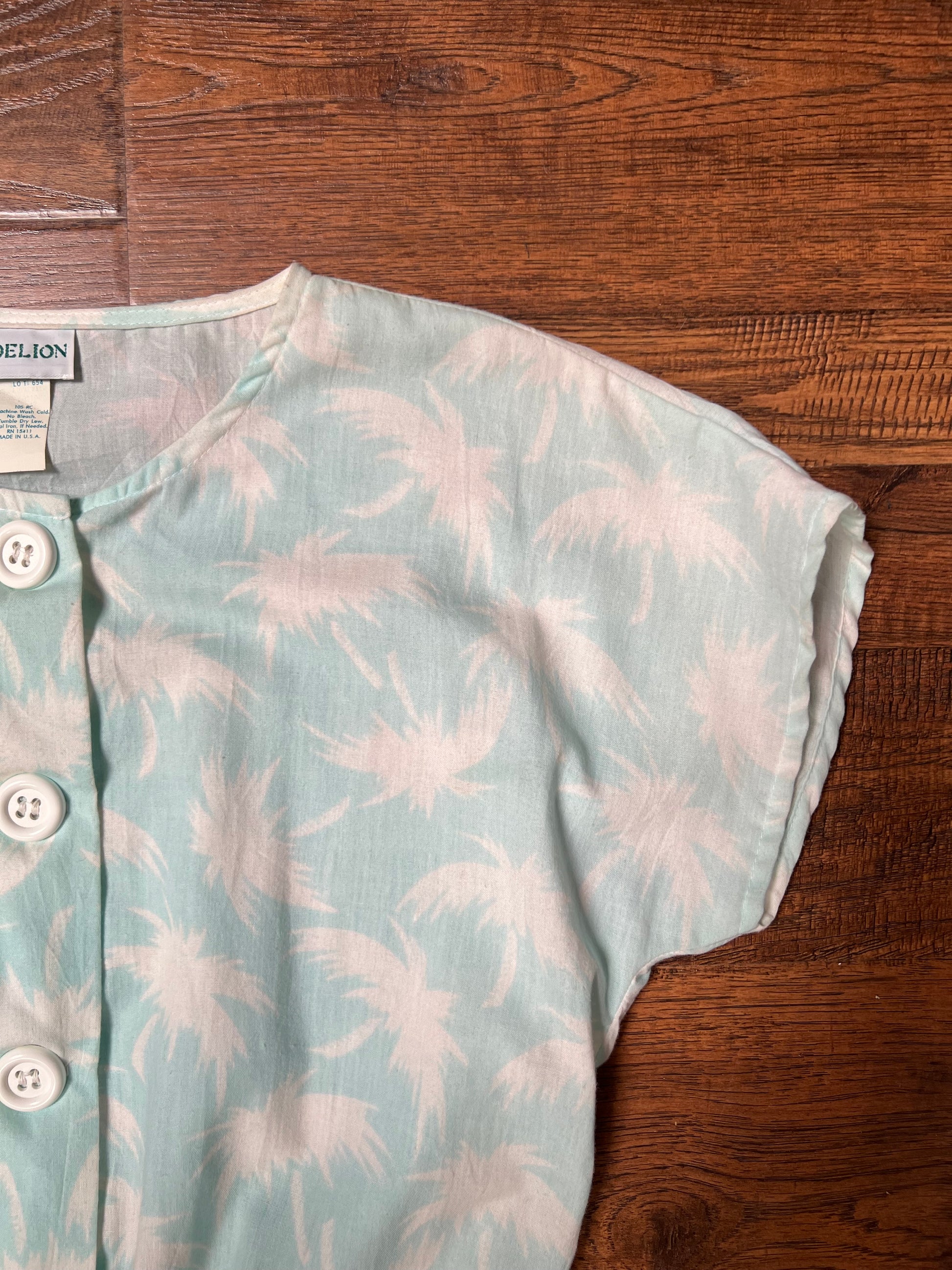 Vintage Clothing - One Piece Jumper - White Palm Trees on Baby Blue - Medium - Dandelion