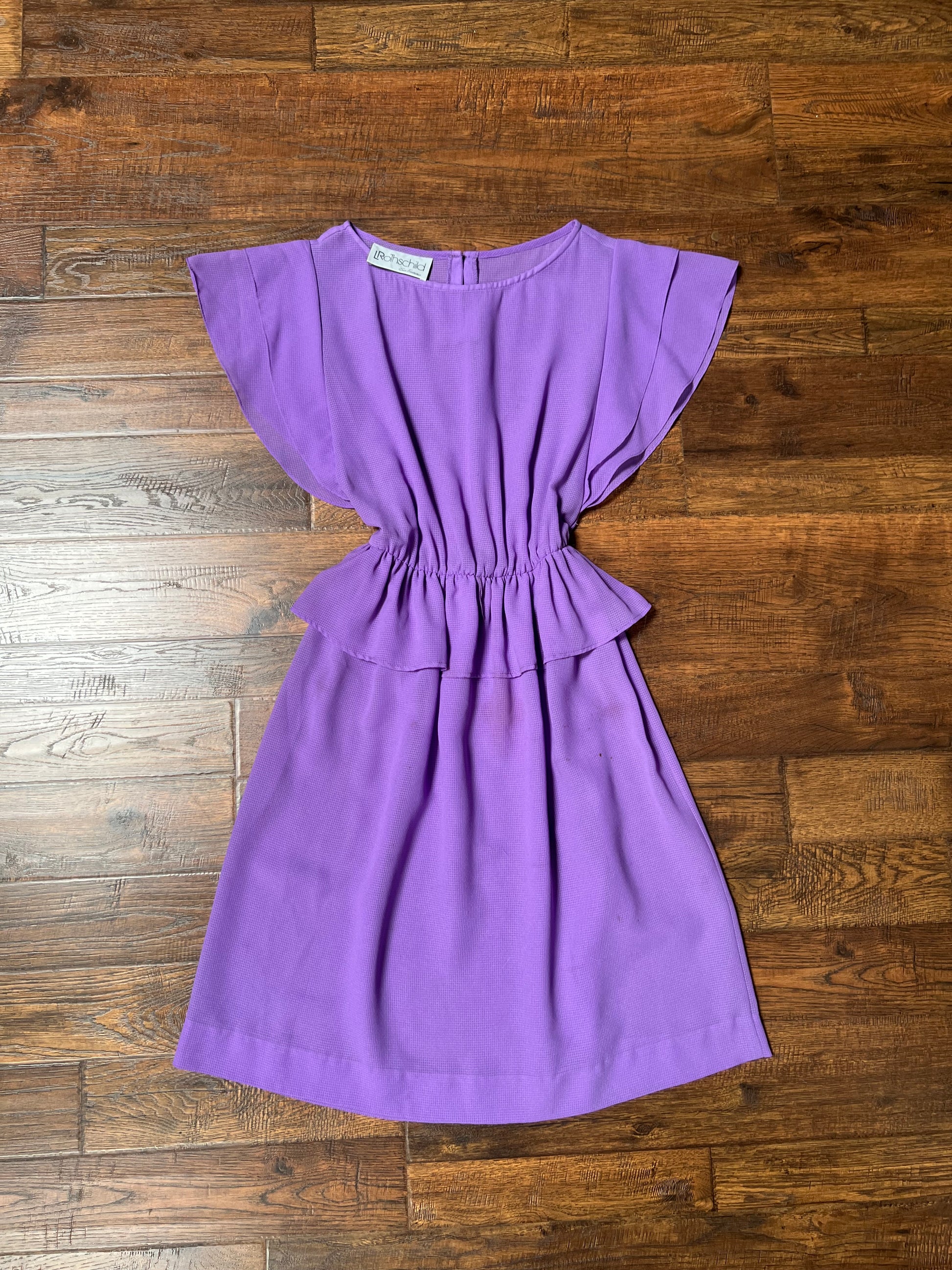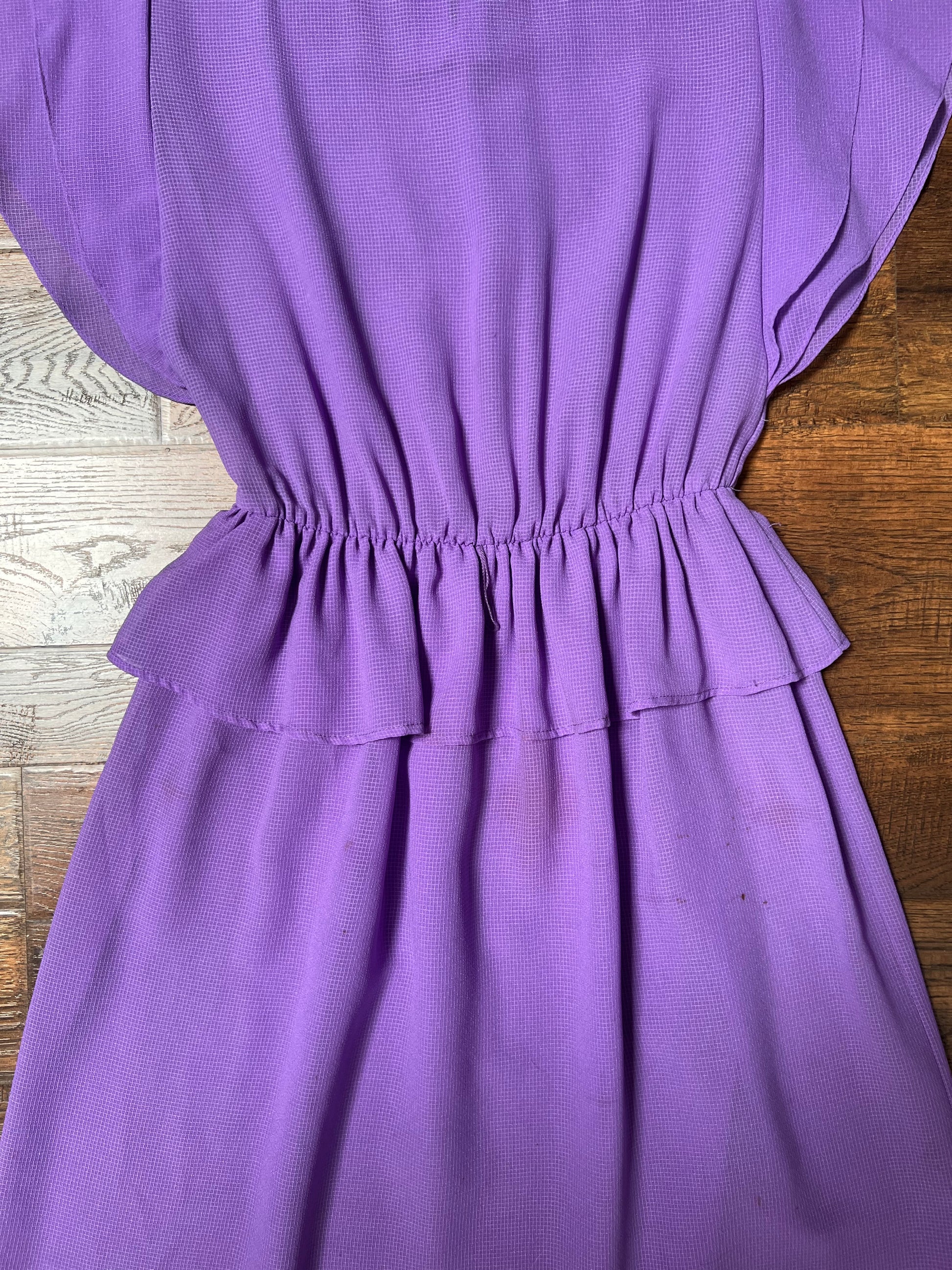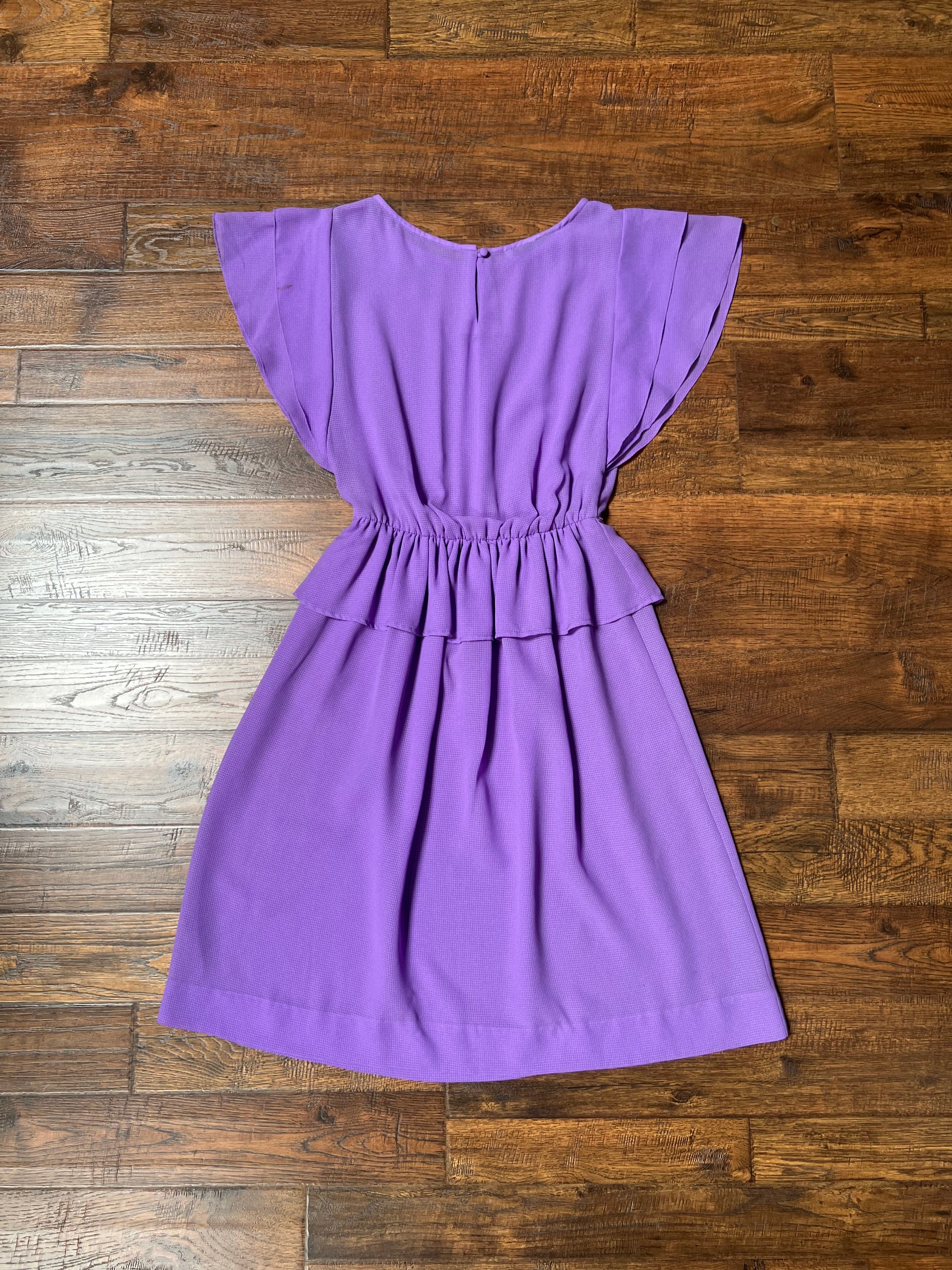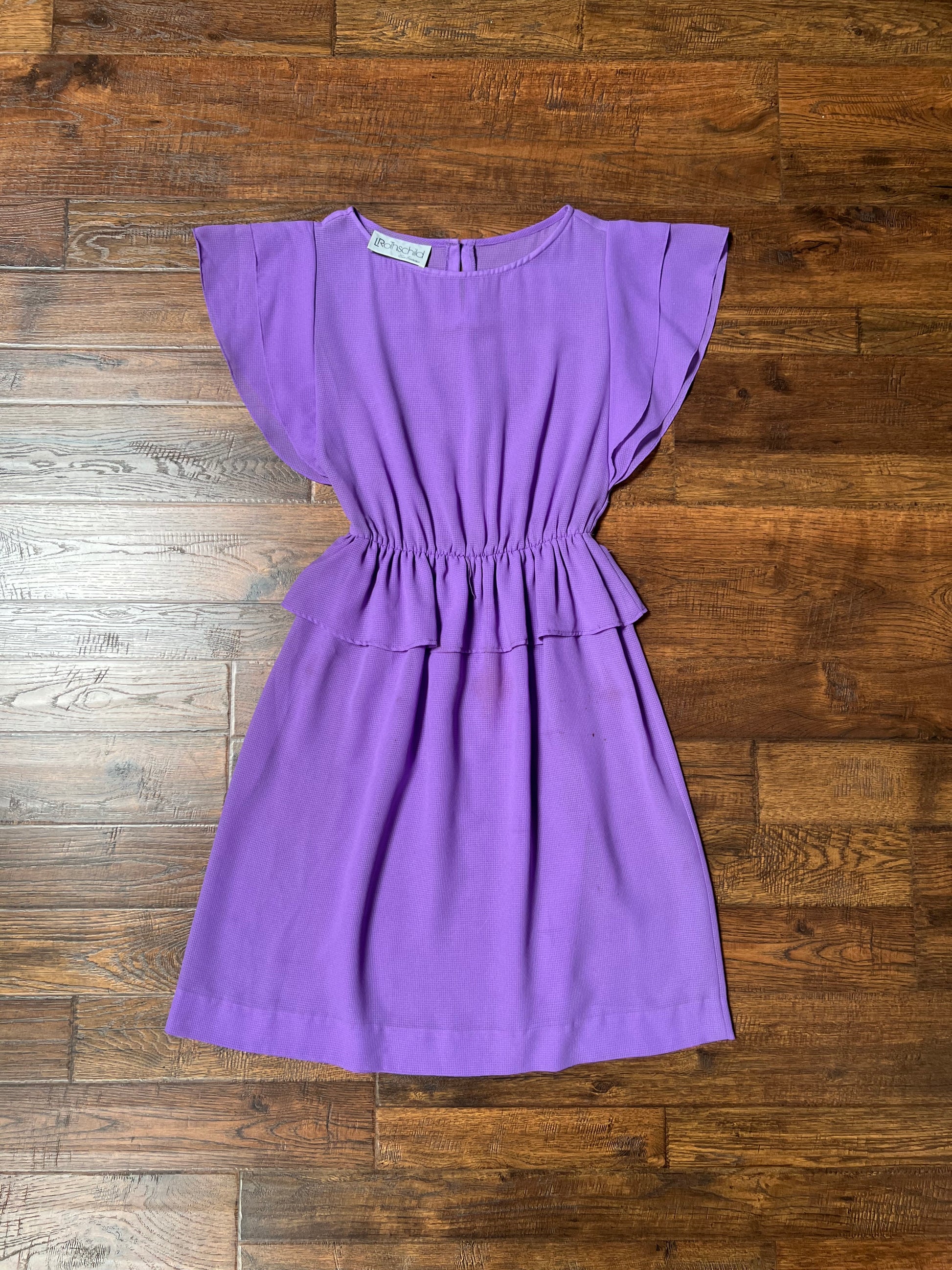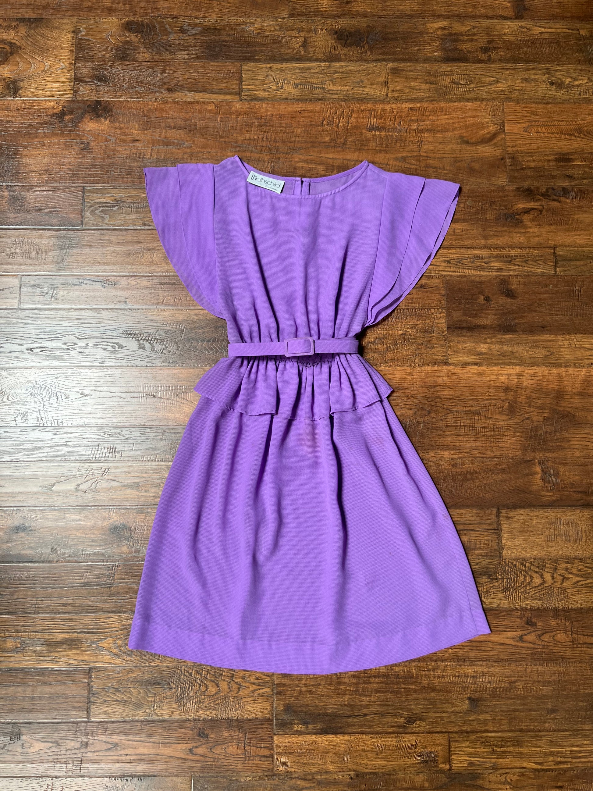 Vintage Clothing - Belted Peplum Dress - Textured Lilac - Small - L Rothschild San Francisco