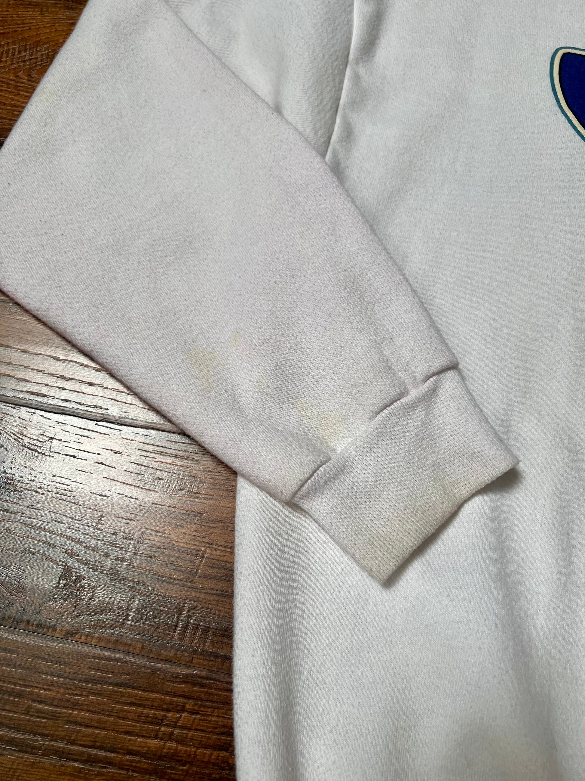 Condition: Pilling all over. Some cracking to graphic, and a few tea colored stains on the left sleeve. See pictures.
