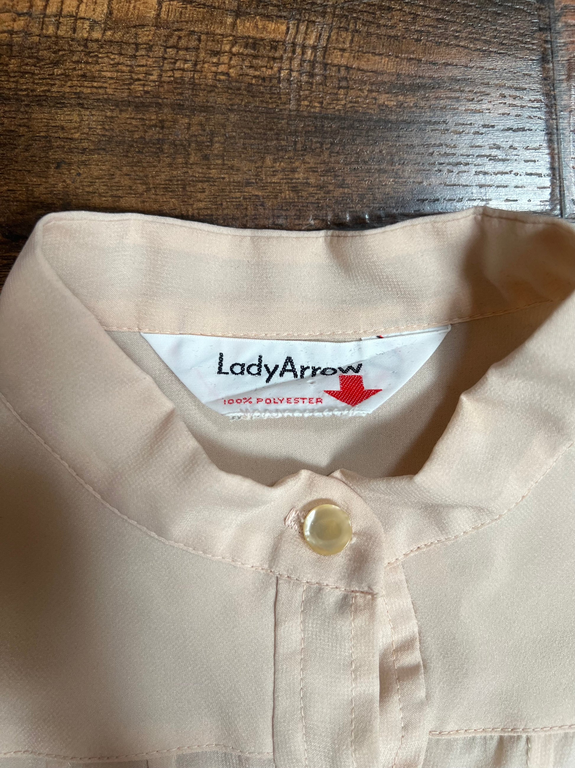 Vintage Clothing - Semi-Sheer Blouse - Pleated Front - Soft Pink - X-Large - Lady Arrow
