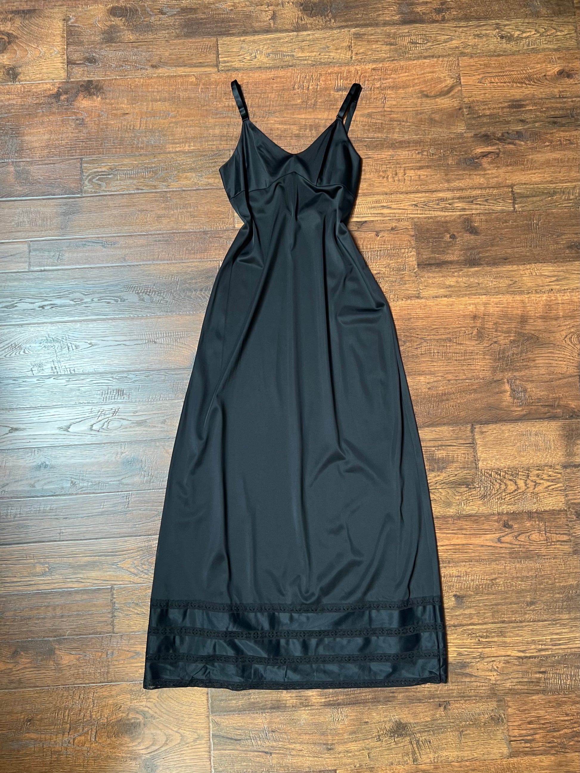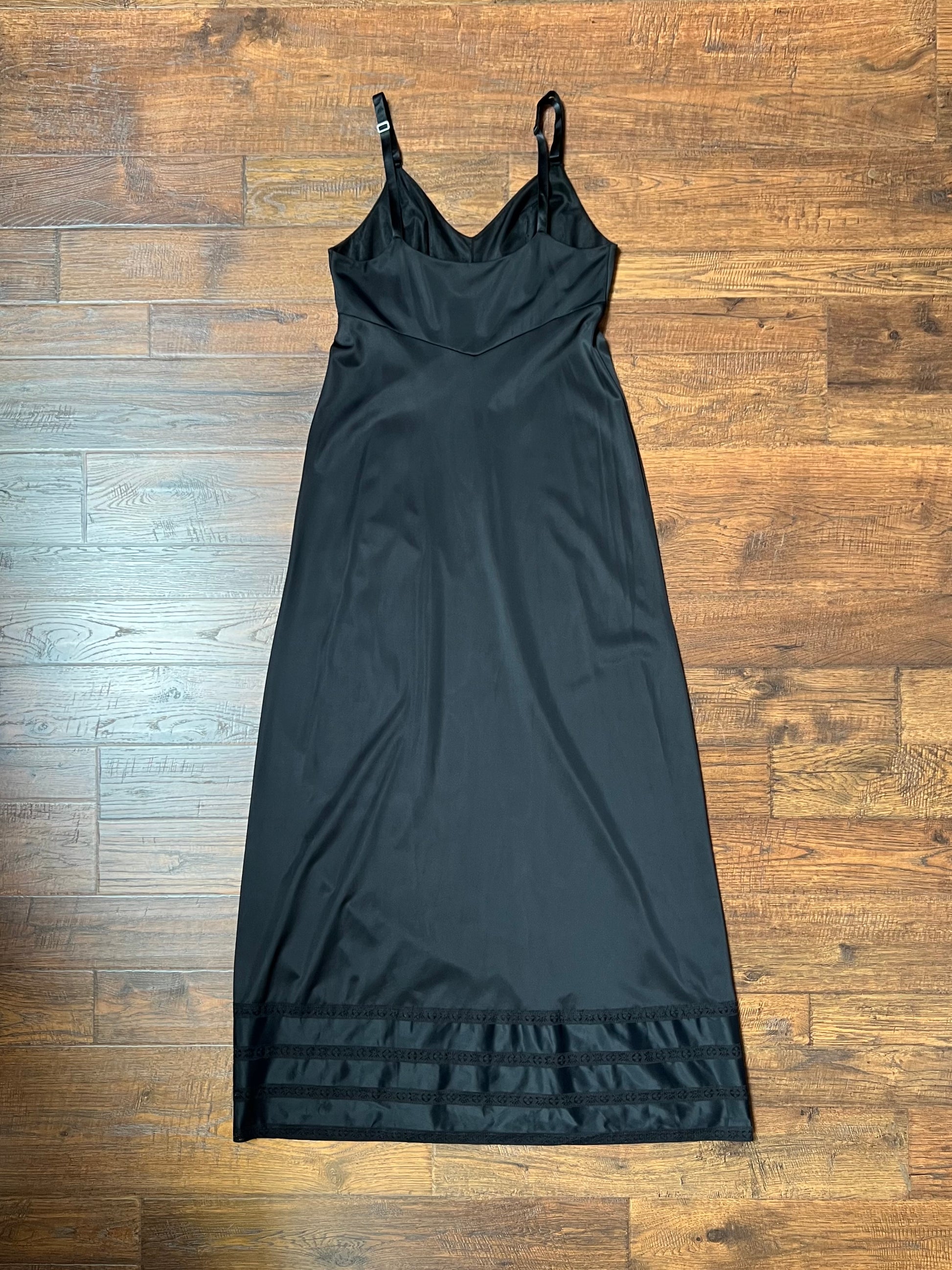 Vintage Clothing - Semi-Sheer Long Dress Slip - Black with Tiered Lace Trim - Gossard Artemis - Small