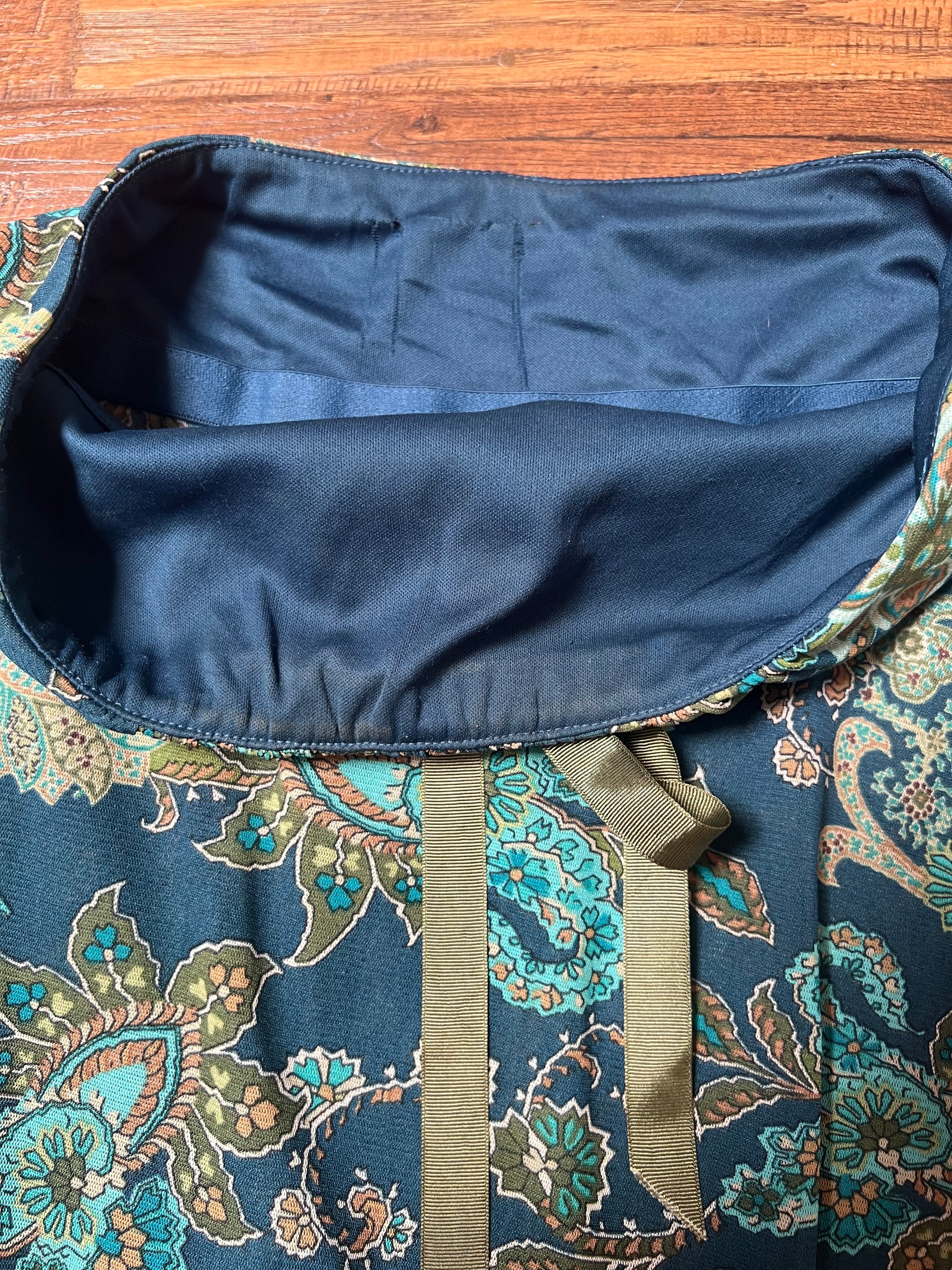 Condition: In good vintage condition, the tag was ripped out of the back of the bandeau lining so there is a small hole there. Some light staining around the inside of the top lining. The green accent ribbon is starting to life on one side. See pictures.