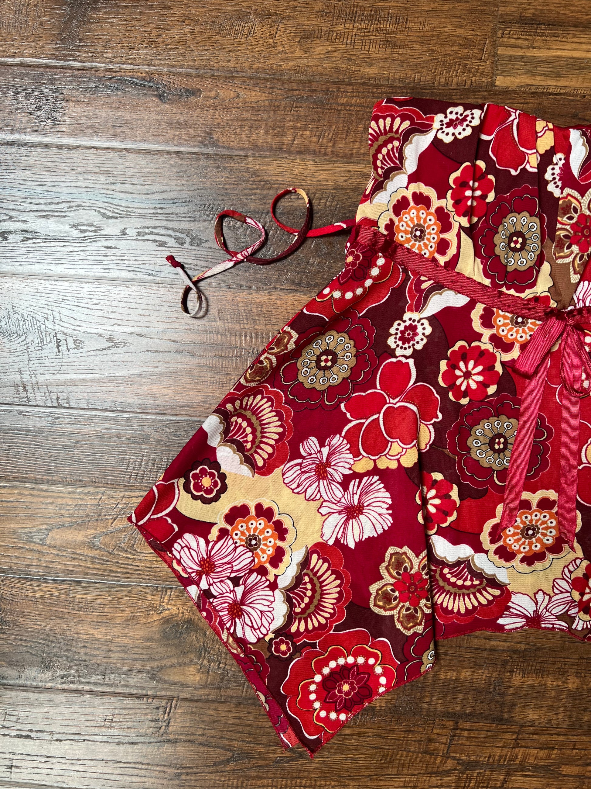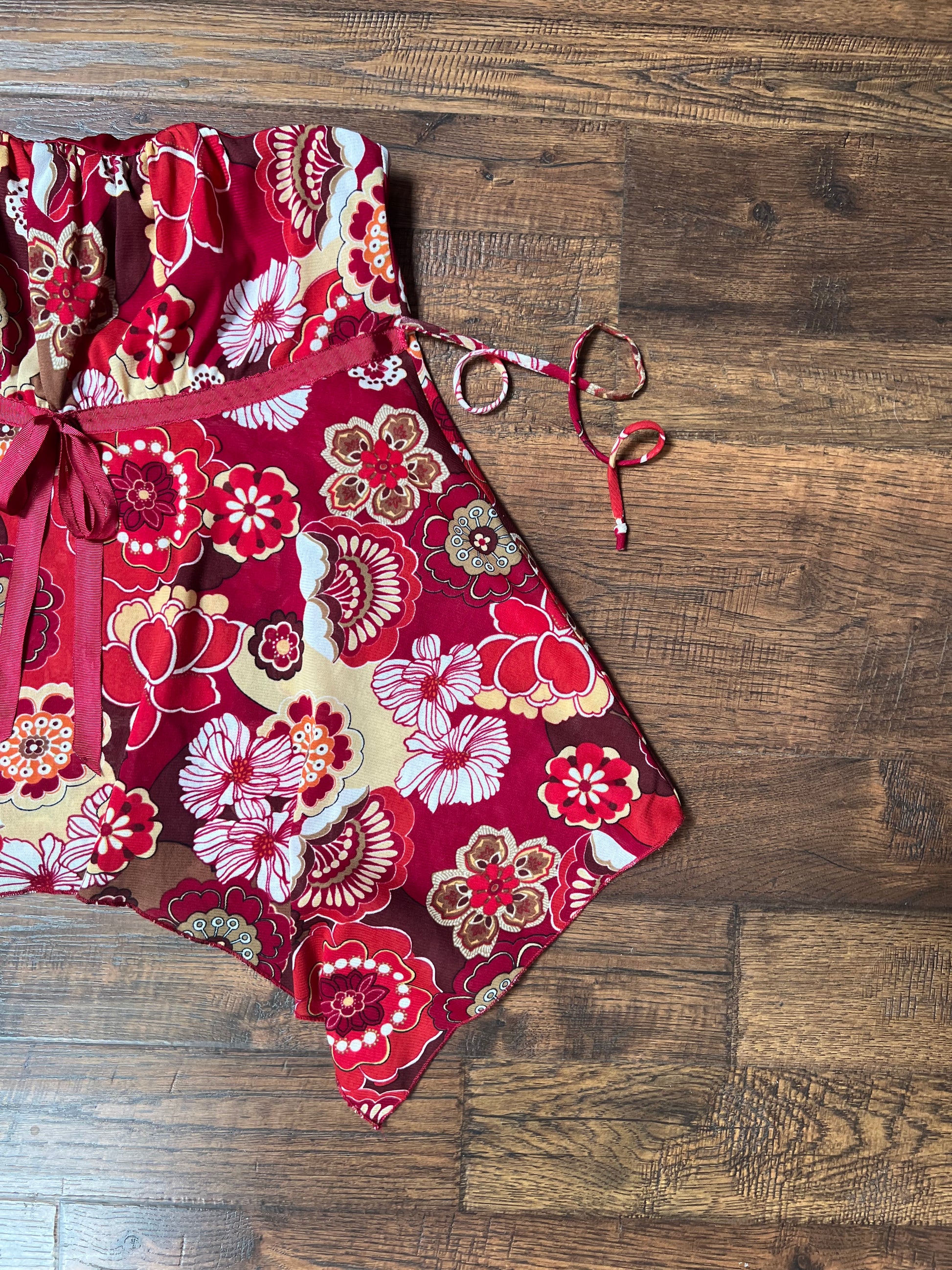 Vintage Clothing - Sheer Frilly Tube Top - Y2K Retro Florals - Red - Small - Self Esteem