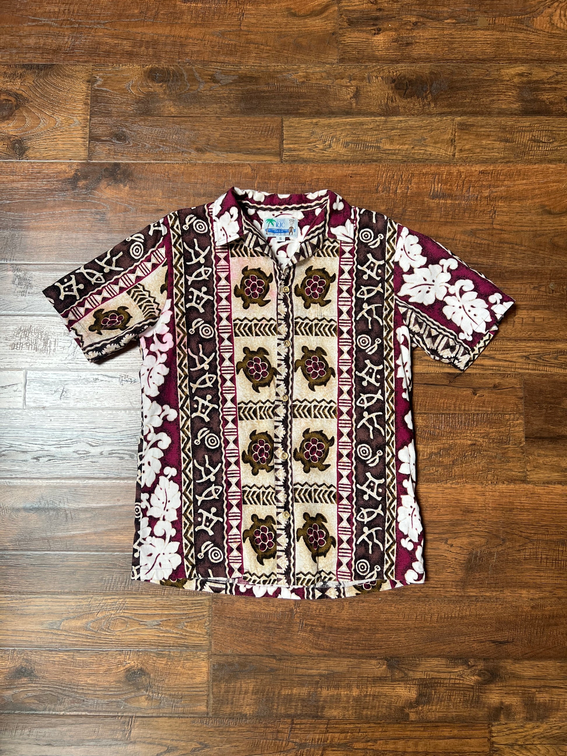 Vintage Clothing - Short Sleeve Hawaiian Shirt - Tiki Turtle Novelty Print - RJC Limited - Small