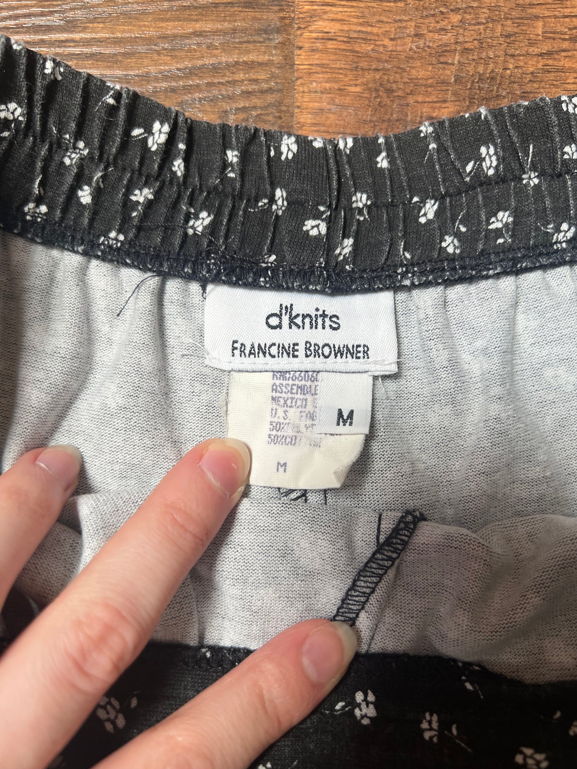 Vintage Clothing - Skort - Black - White Floral - Medium - D’Knits