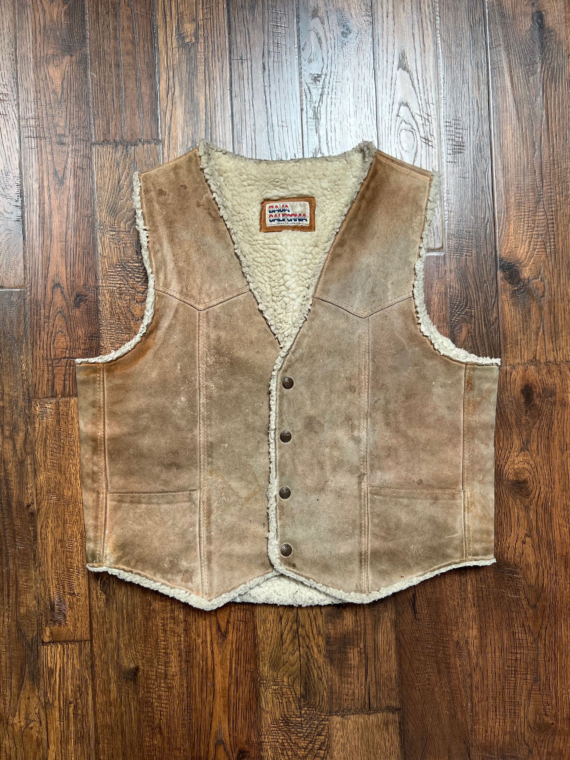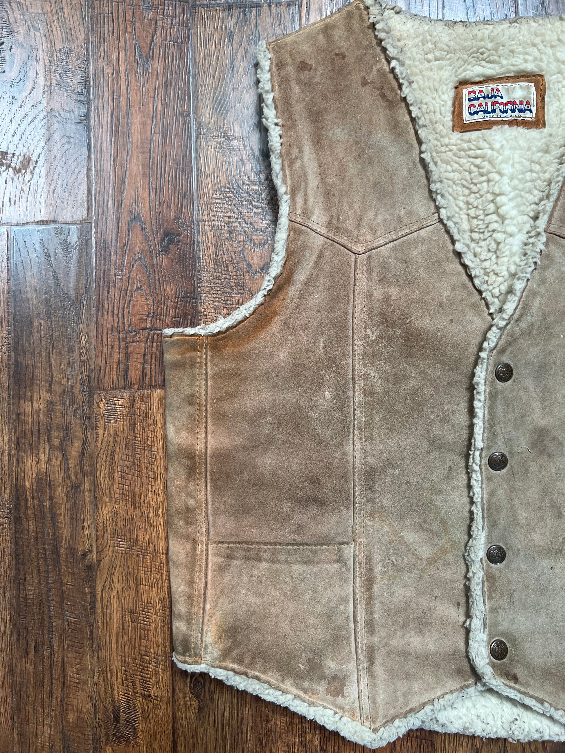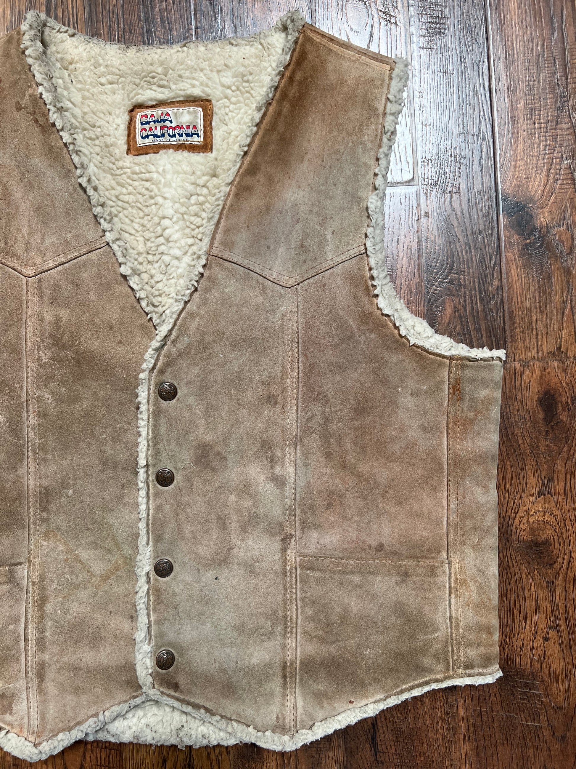 Vintage Clothing - Suede Sherpa Lined Vest - Tan - Baja California - Medium