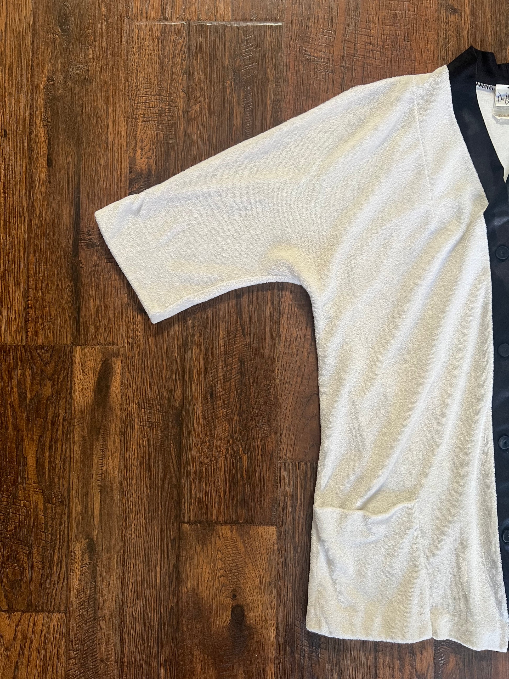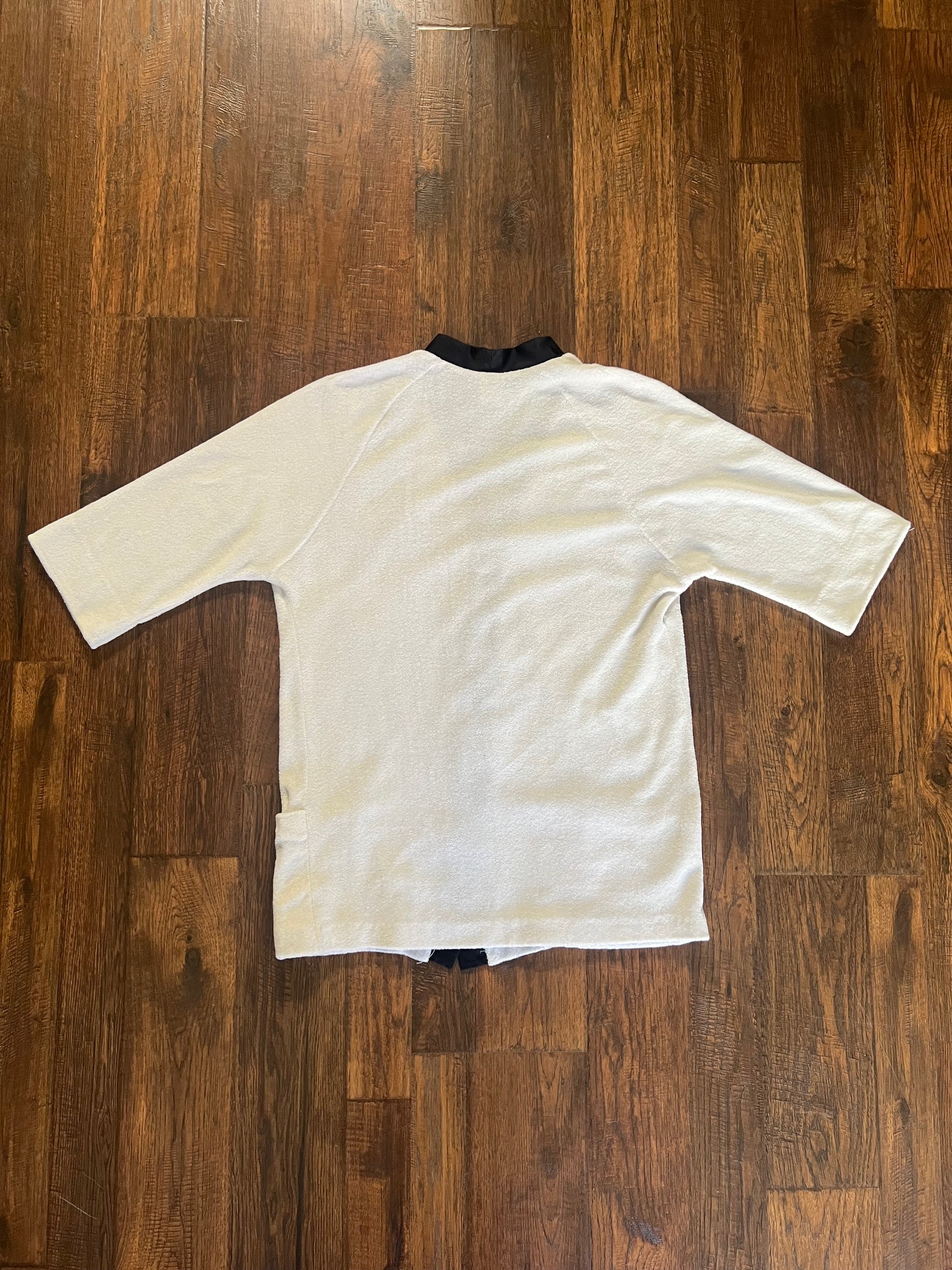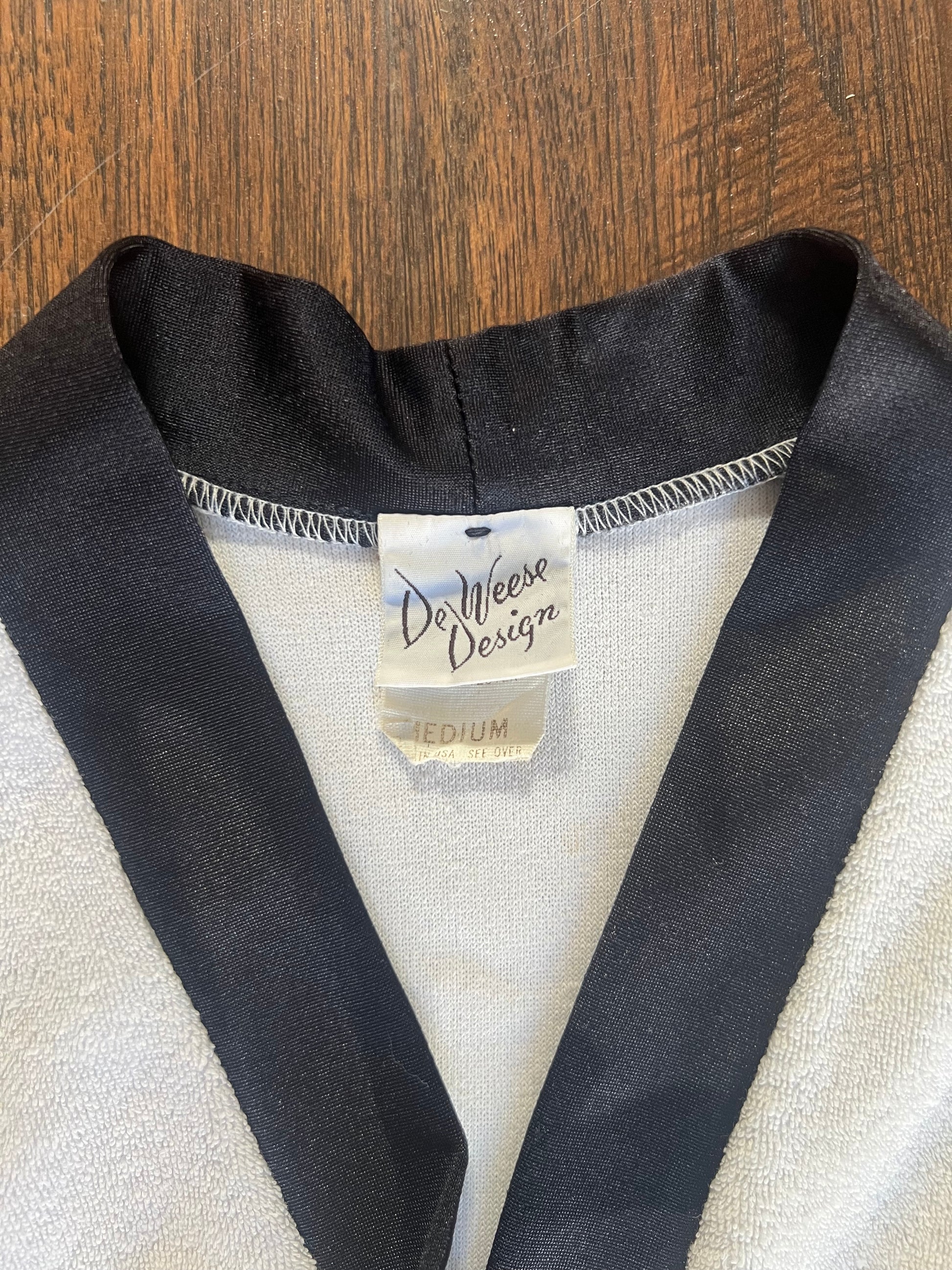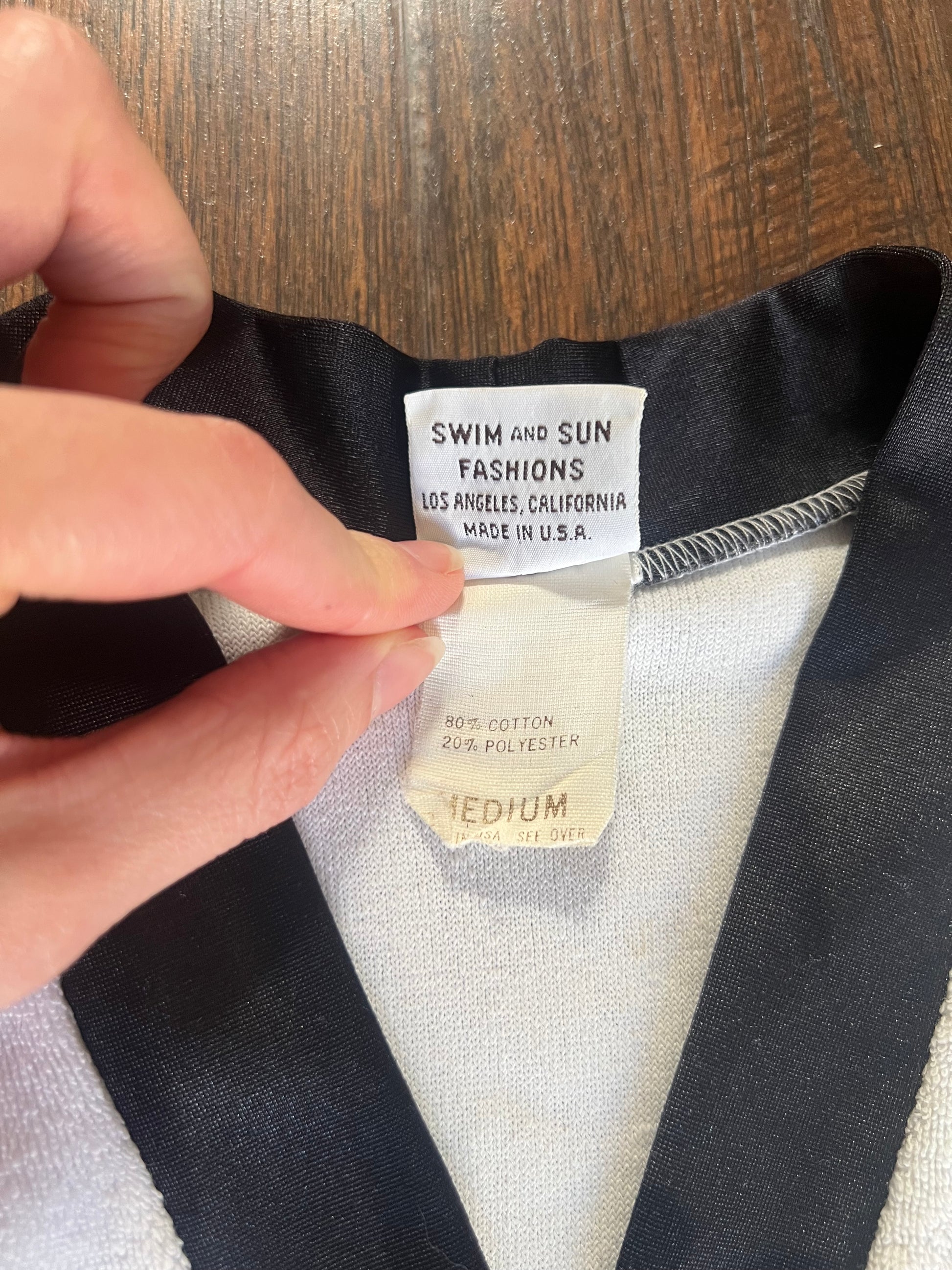 Vintage Clothing - Terry Cloth Swim Cover Up - Black Floral Embellishment - Medium - DeWeese Design