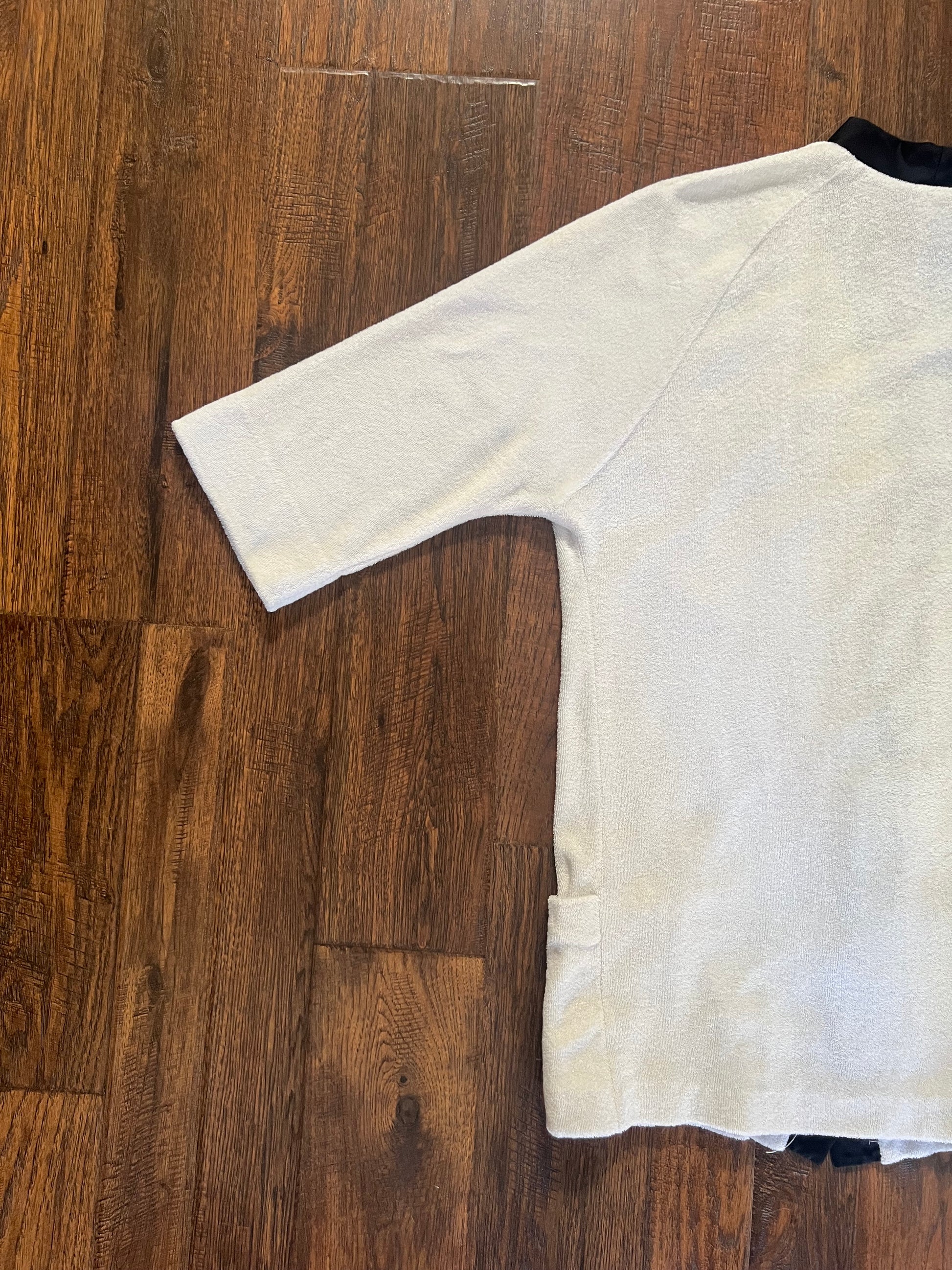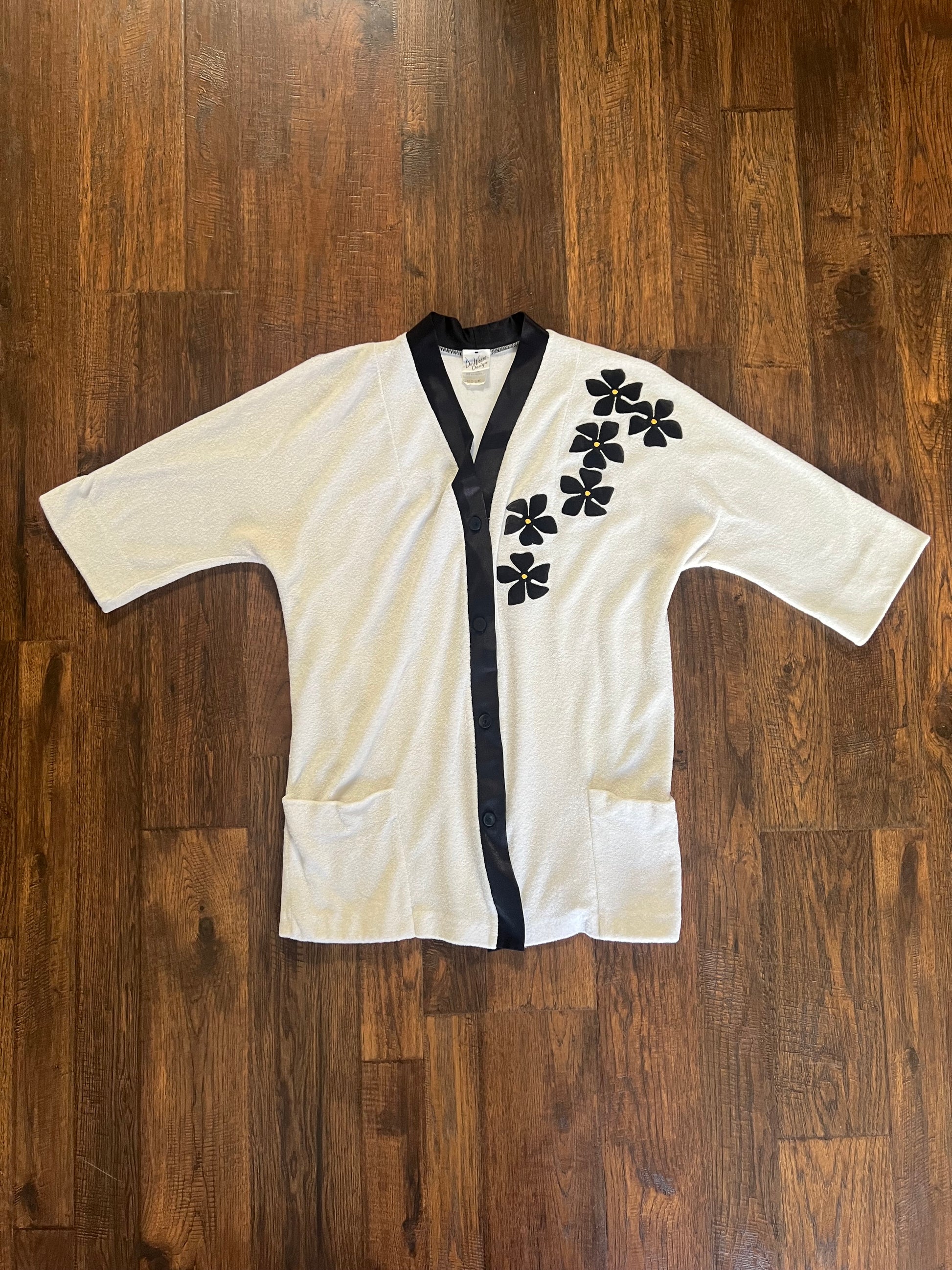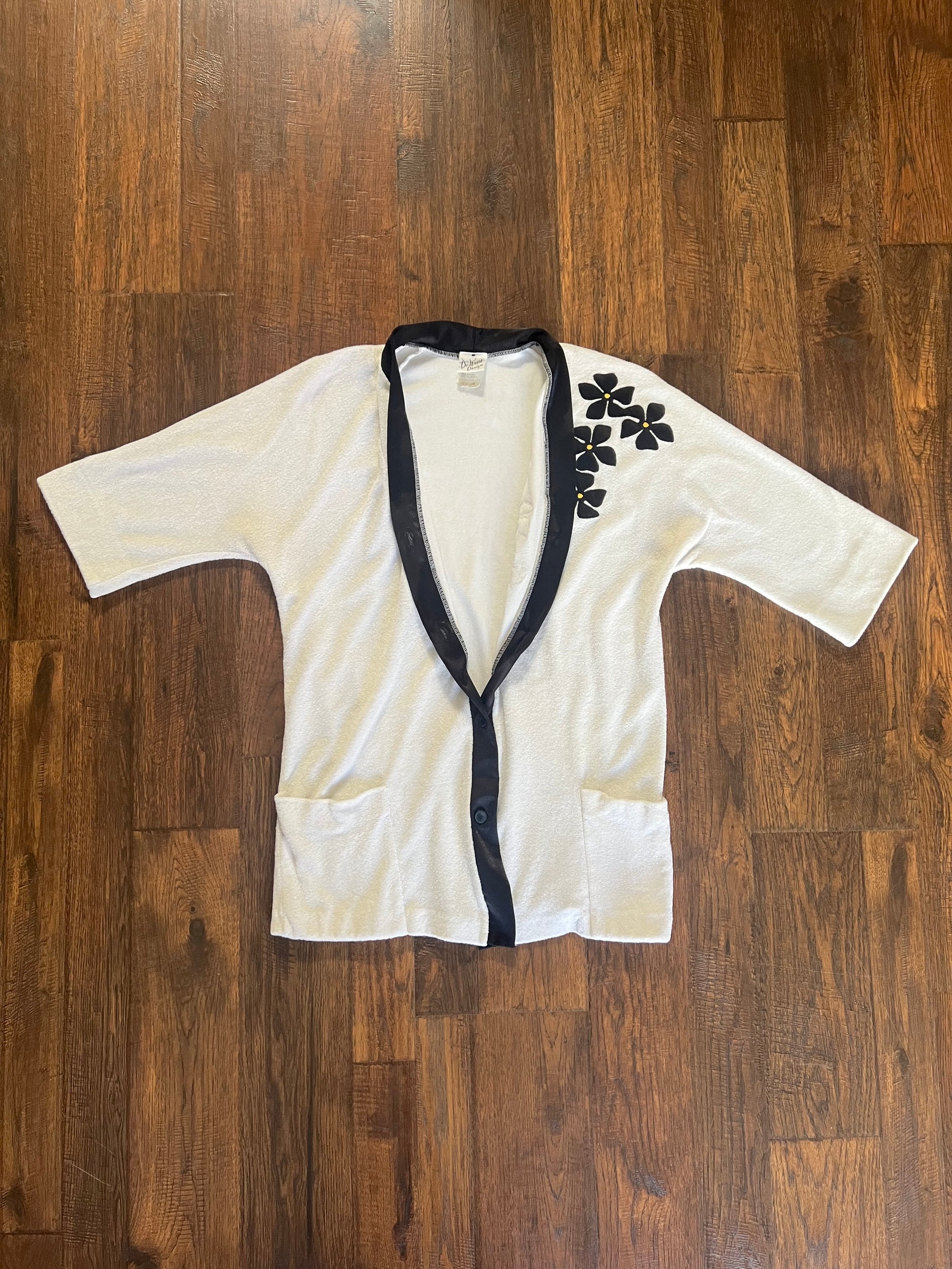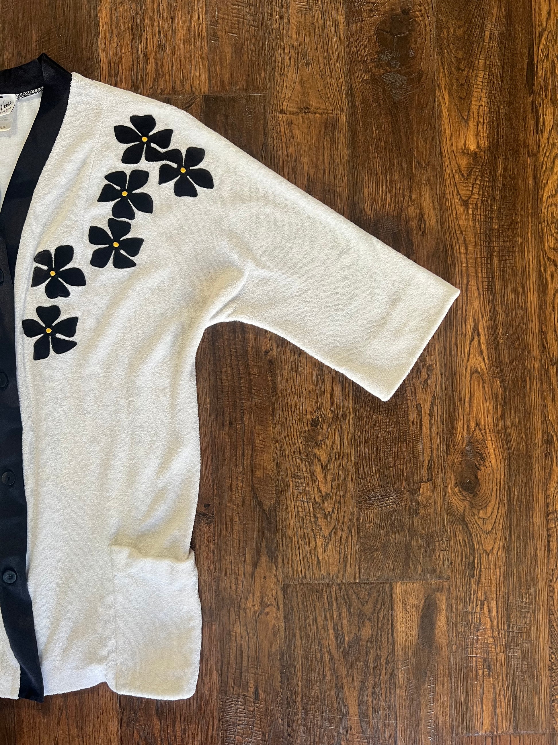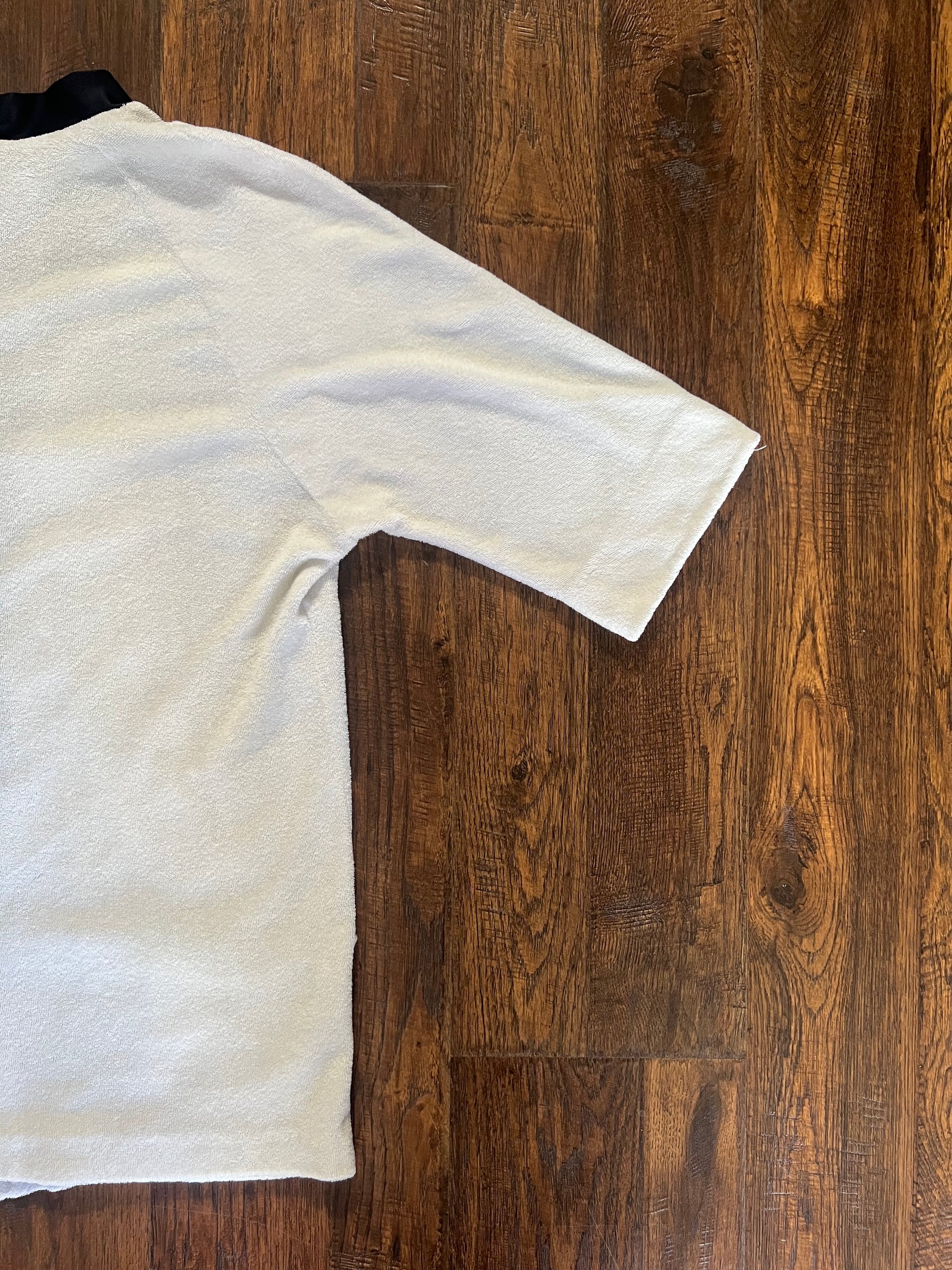 Vintage Clothing - Terry Cloth Swim Cover Up - Black Floral Embellishment - Medium - DeWeese Design