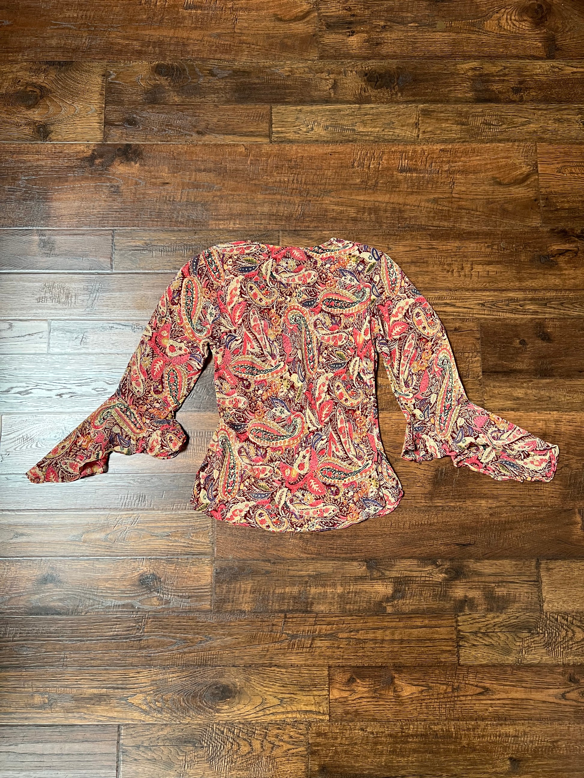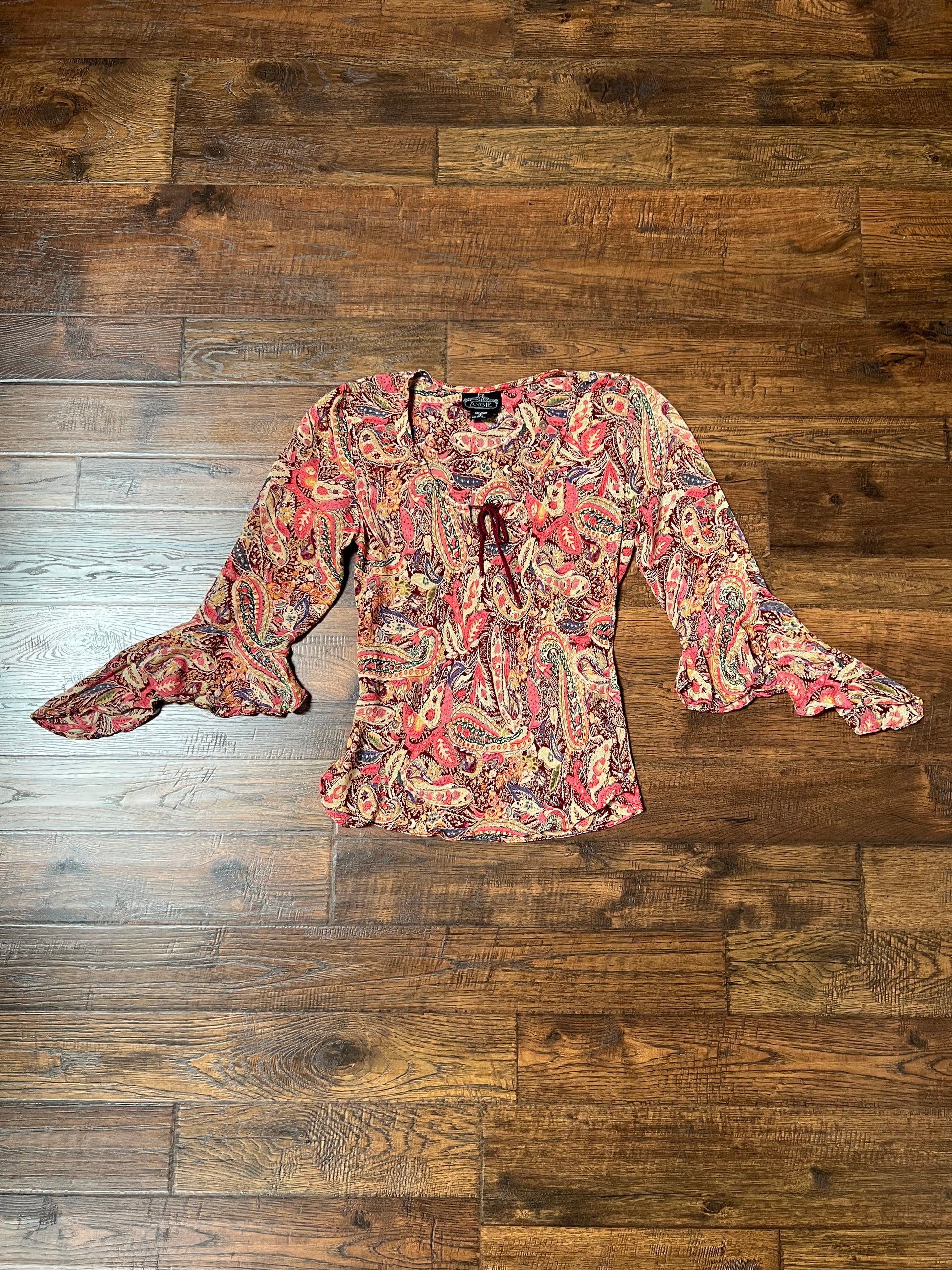Vintage Clothing - Y2K Scoop Neck Blouse - Butterfly Sleeves - Pink Paisley Print - Small - Angie