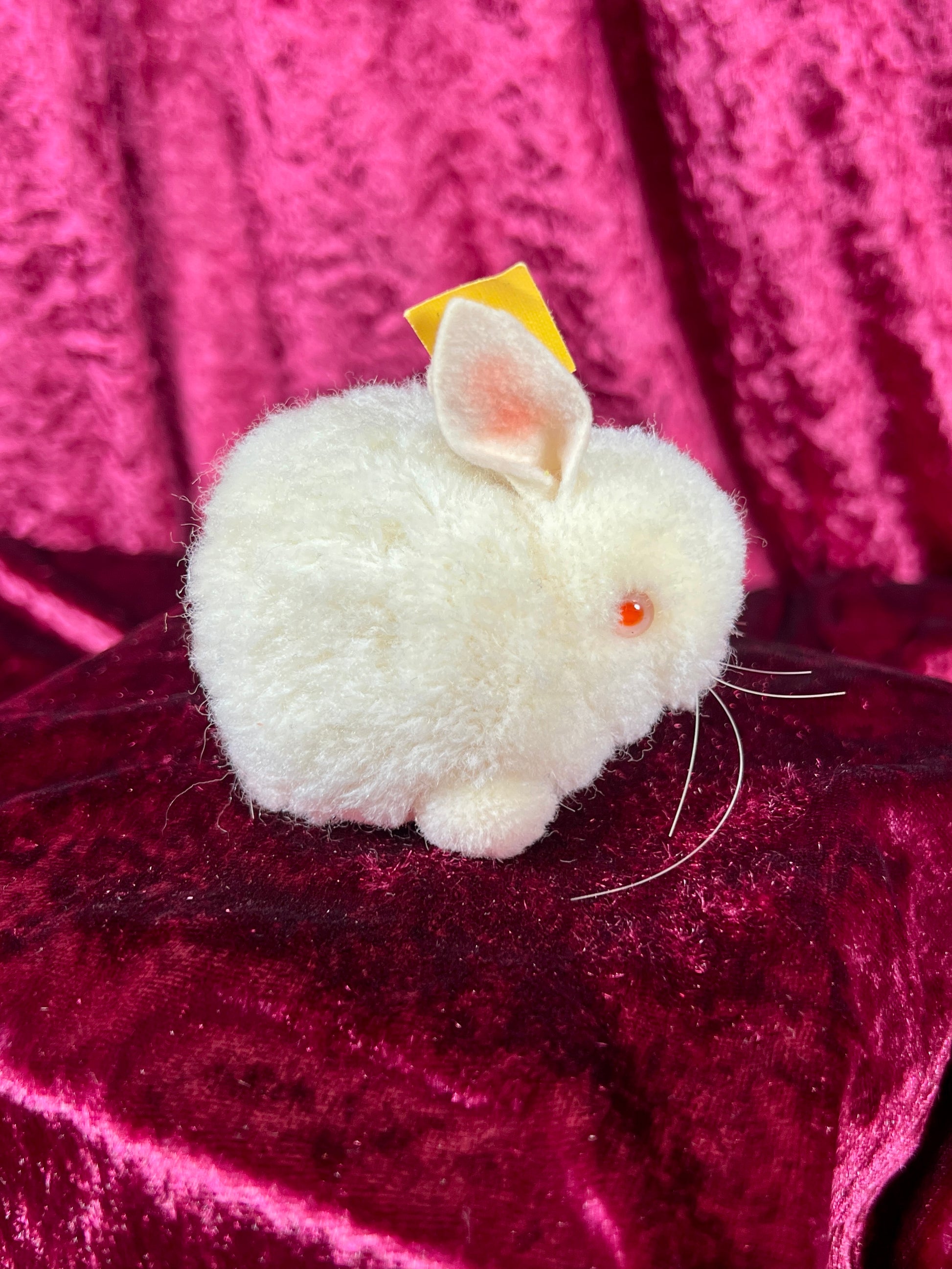 Vintage Collectibles - Miniature Stuffed Toy - White Pom Pom Bunny Rabbit - 25061 - Steiff - Germany