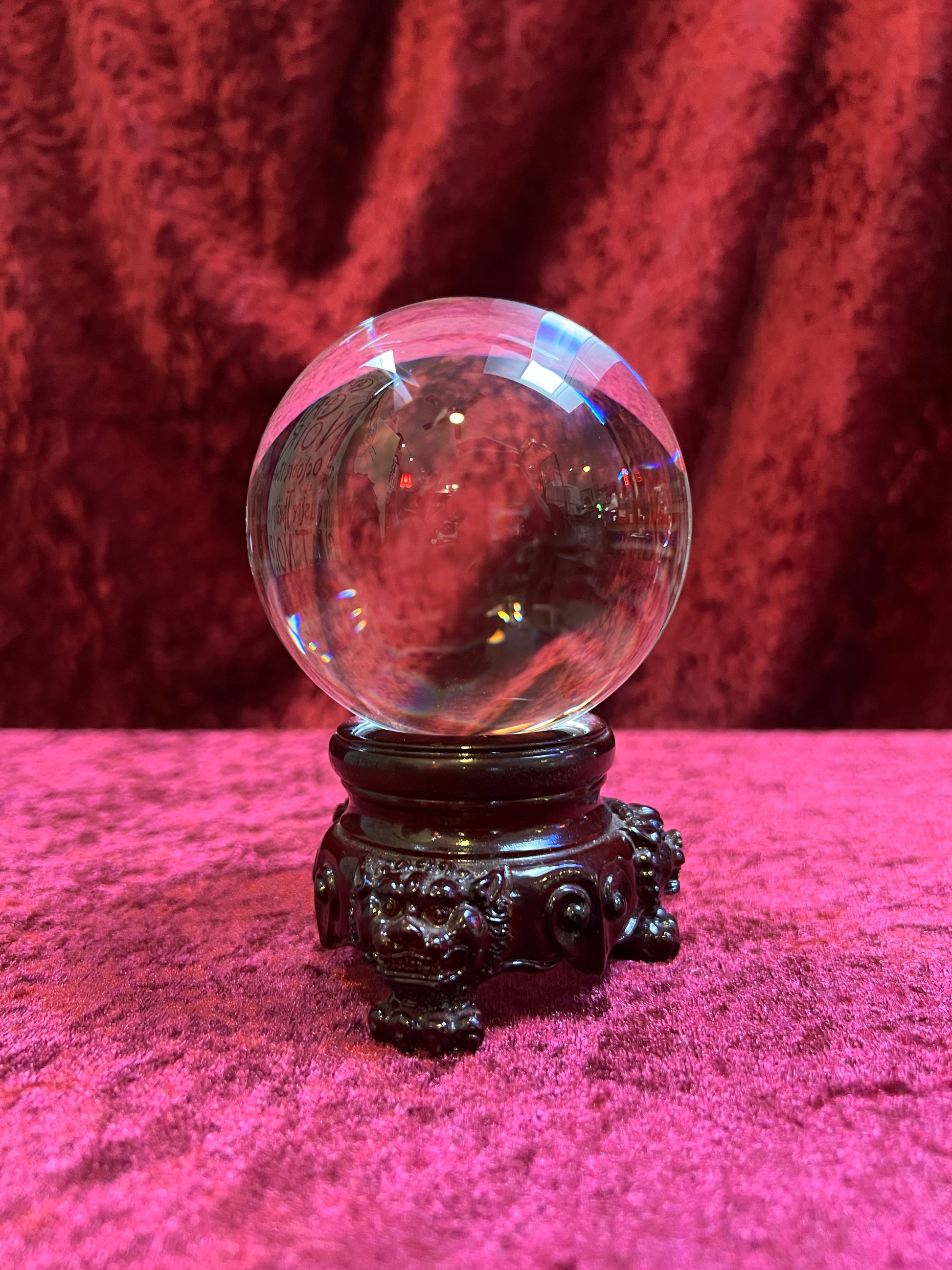 Vintage Curiosities - Crystal Ball with Carved Wood Dragon Head Stand - Medium