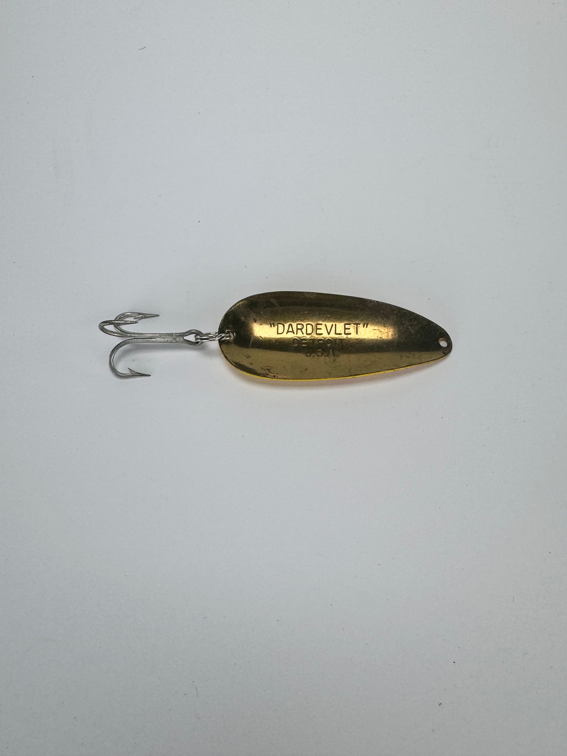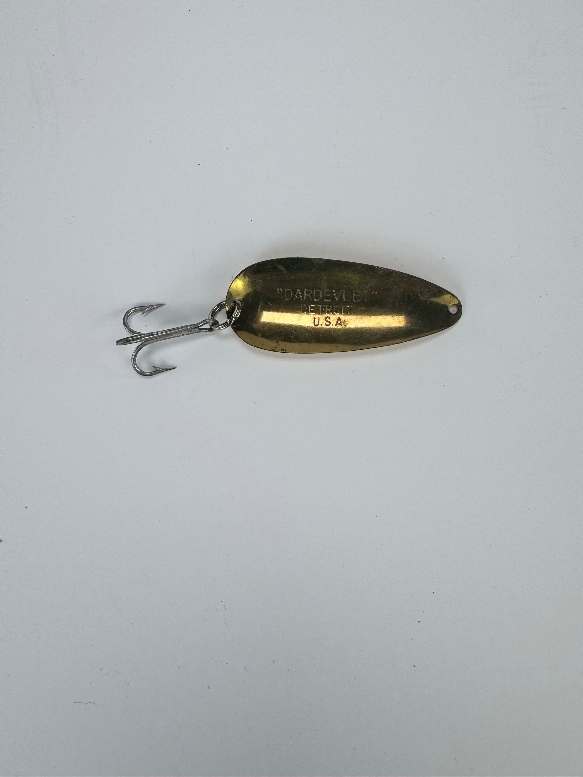 Vintage Dardevle Yellow and Red Fishing Lure Spinner