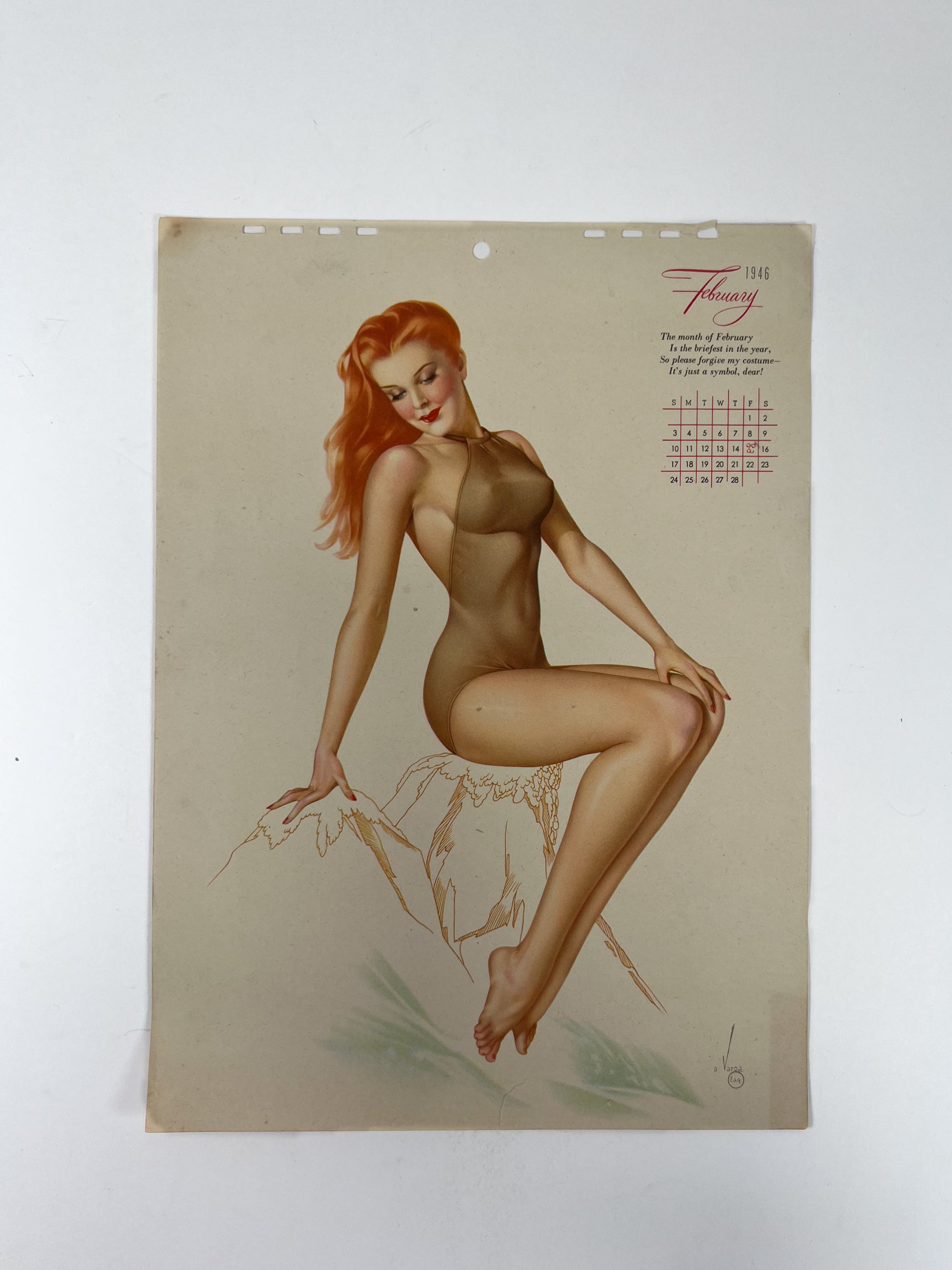 Vintage Ephemera - Esquire Pin Up Calendar Page - February 1946 - Alberto Vargas