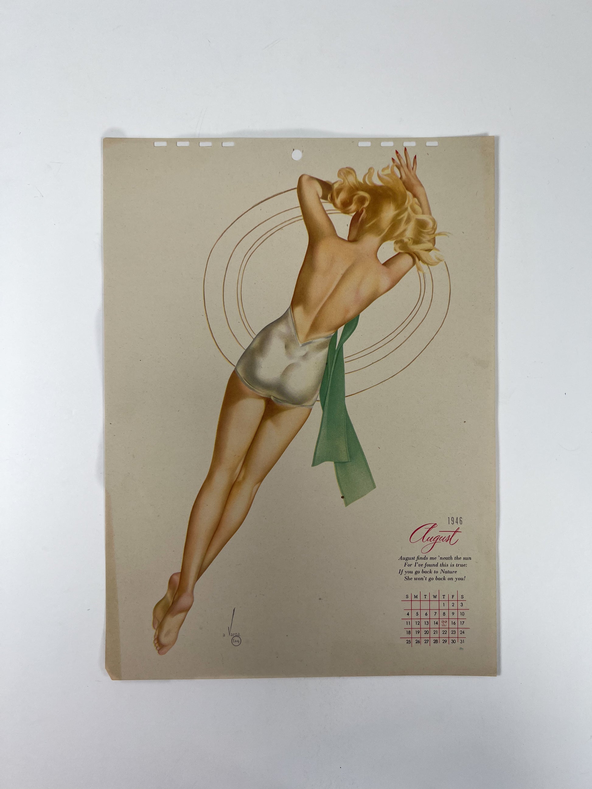 Vintage Ephemera - Esquire Pin Up Calendar Page - August 1946 - Alberto Vargas