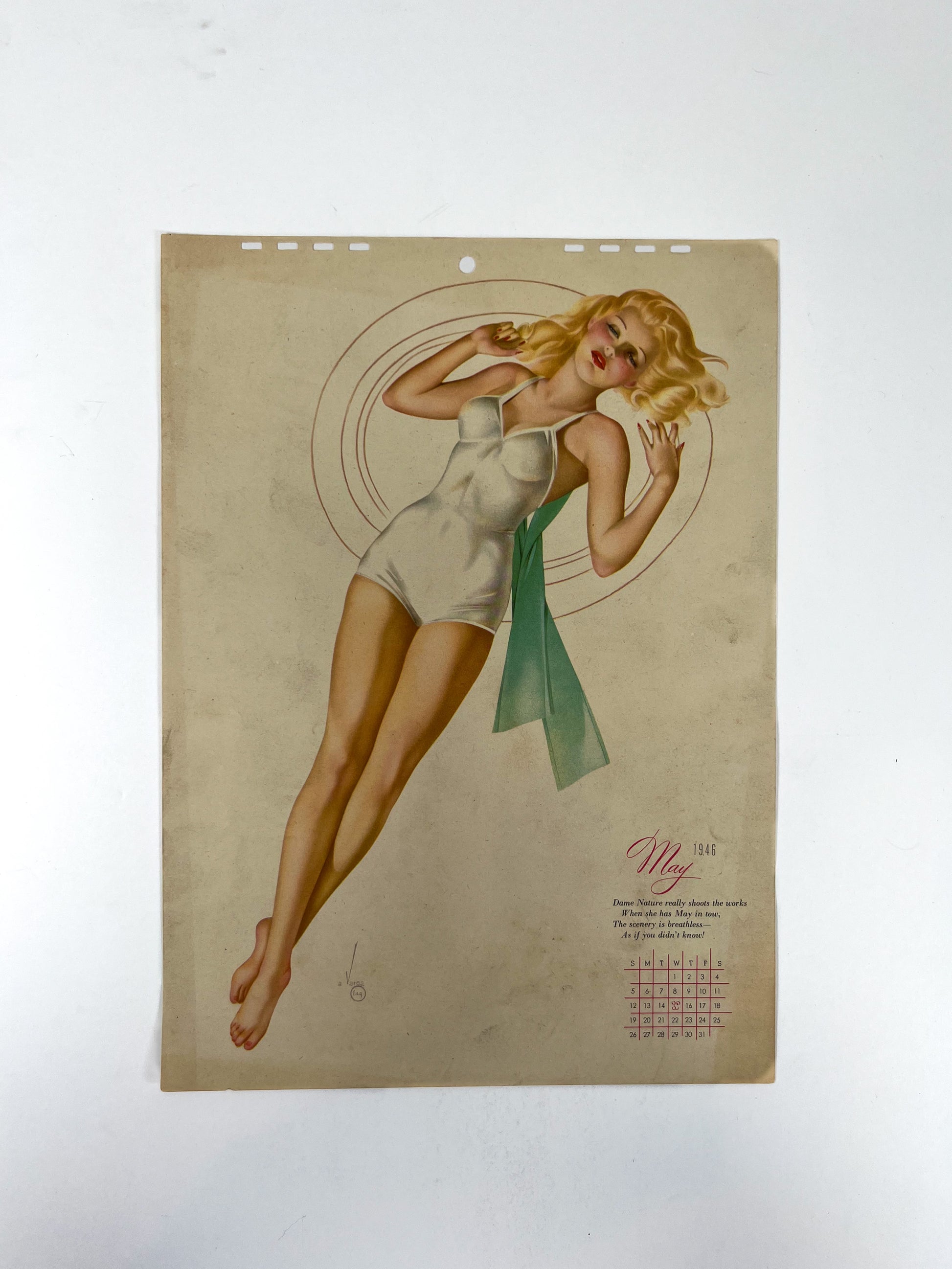 Vintage Ephemera - Esquire Pin Up Calendar Page - May 1946 - Alberto Vargas