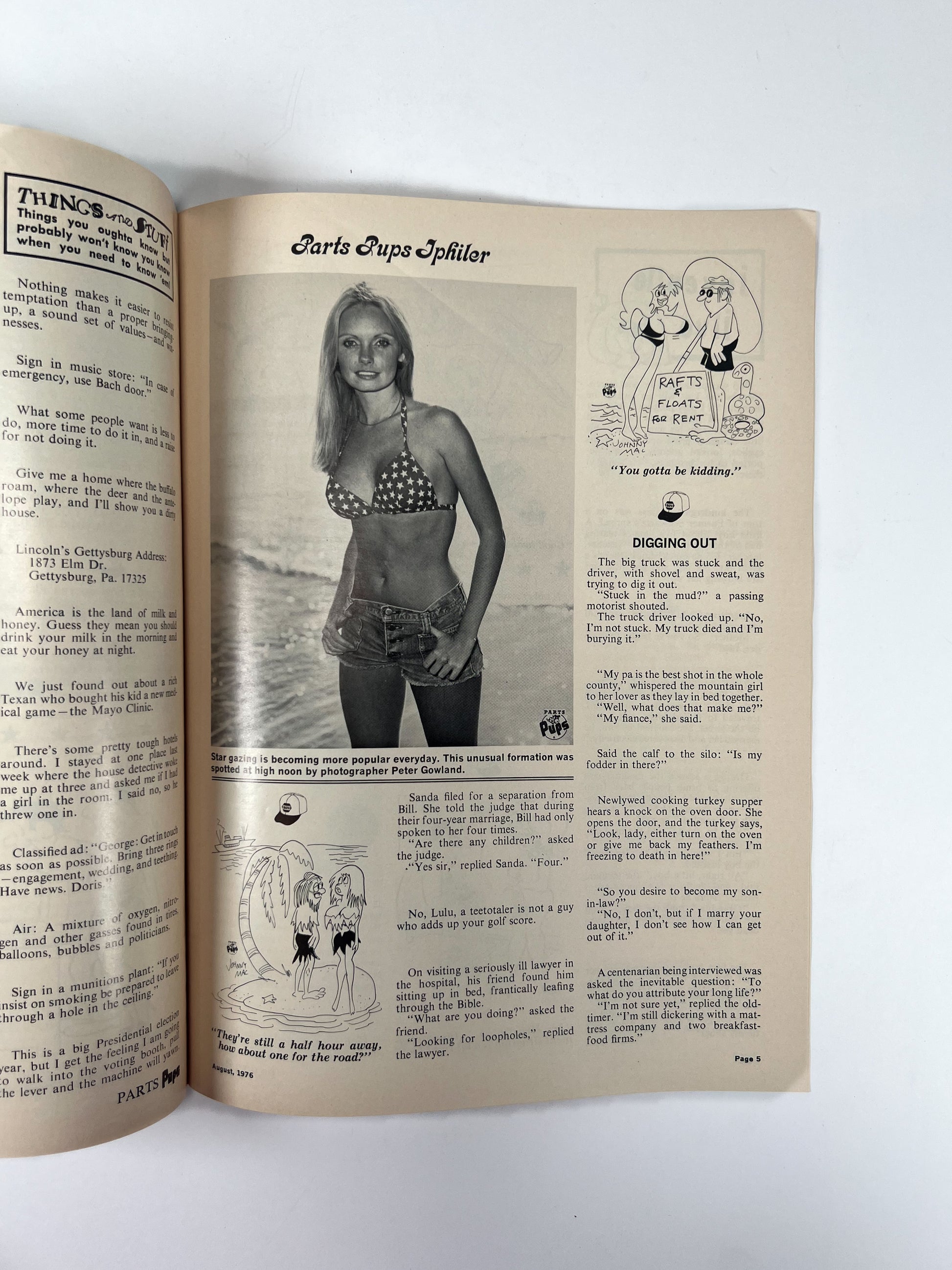 A naughty magazine filled with off-color articles, cartoons, and pin-up style pictures! Distributed at Greer Auto Parts of Vallejo, a Napa automotive parts and supplies store. Printed in USA. Volume 45, #5.