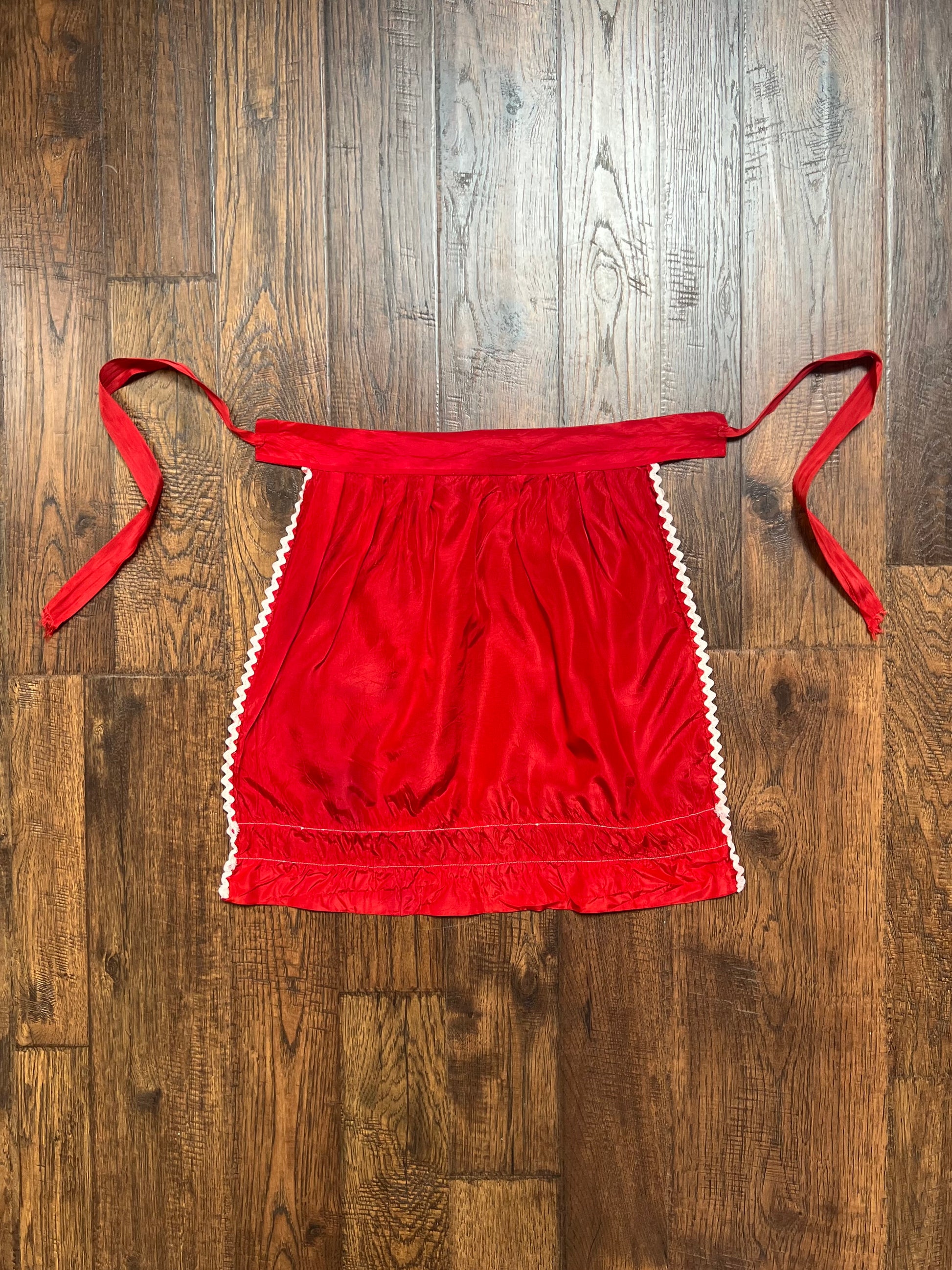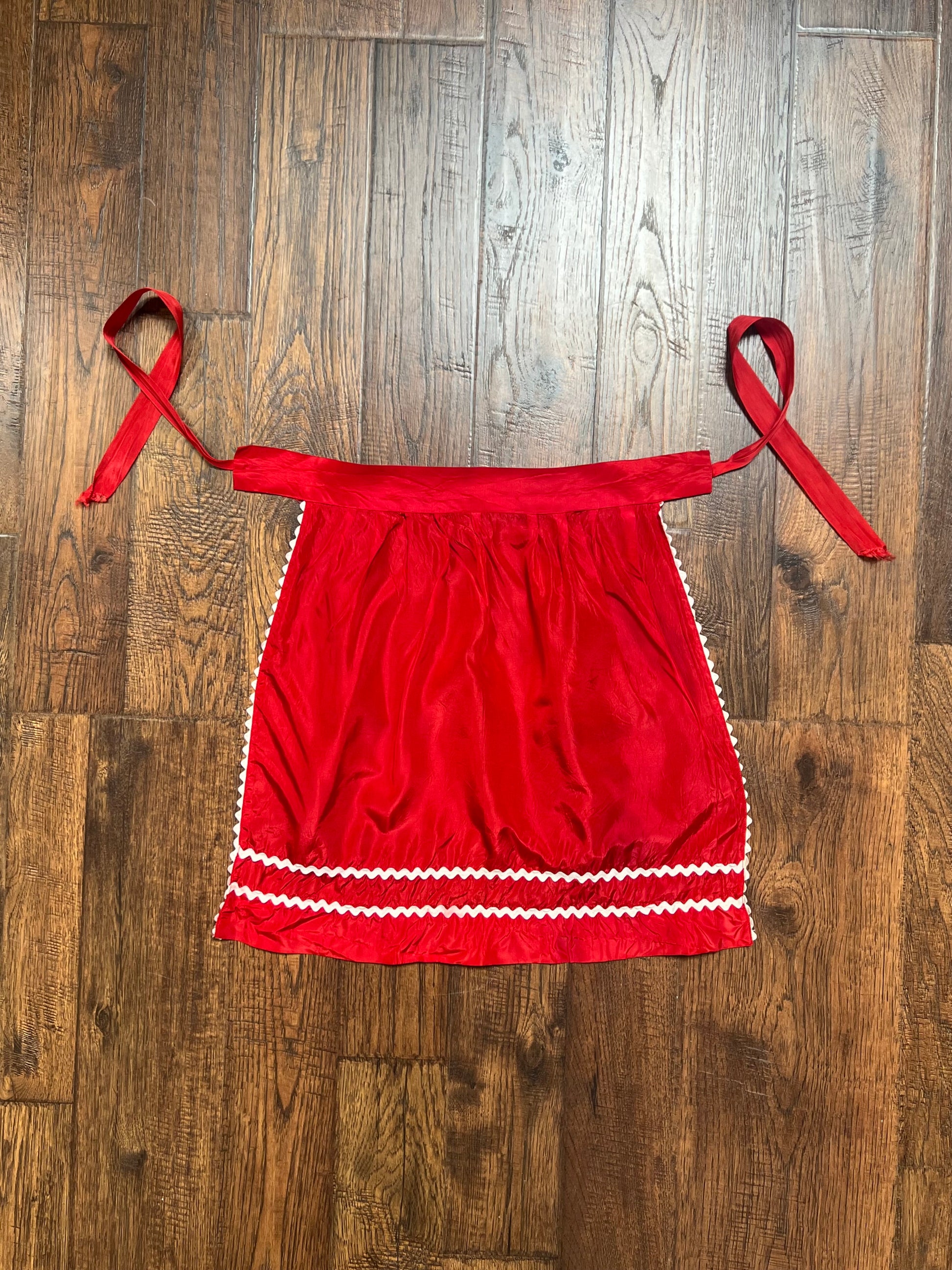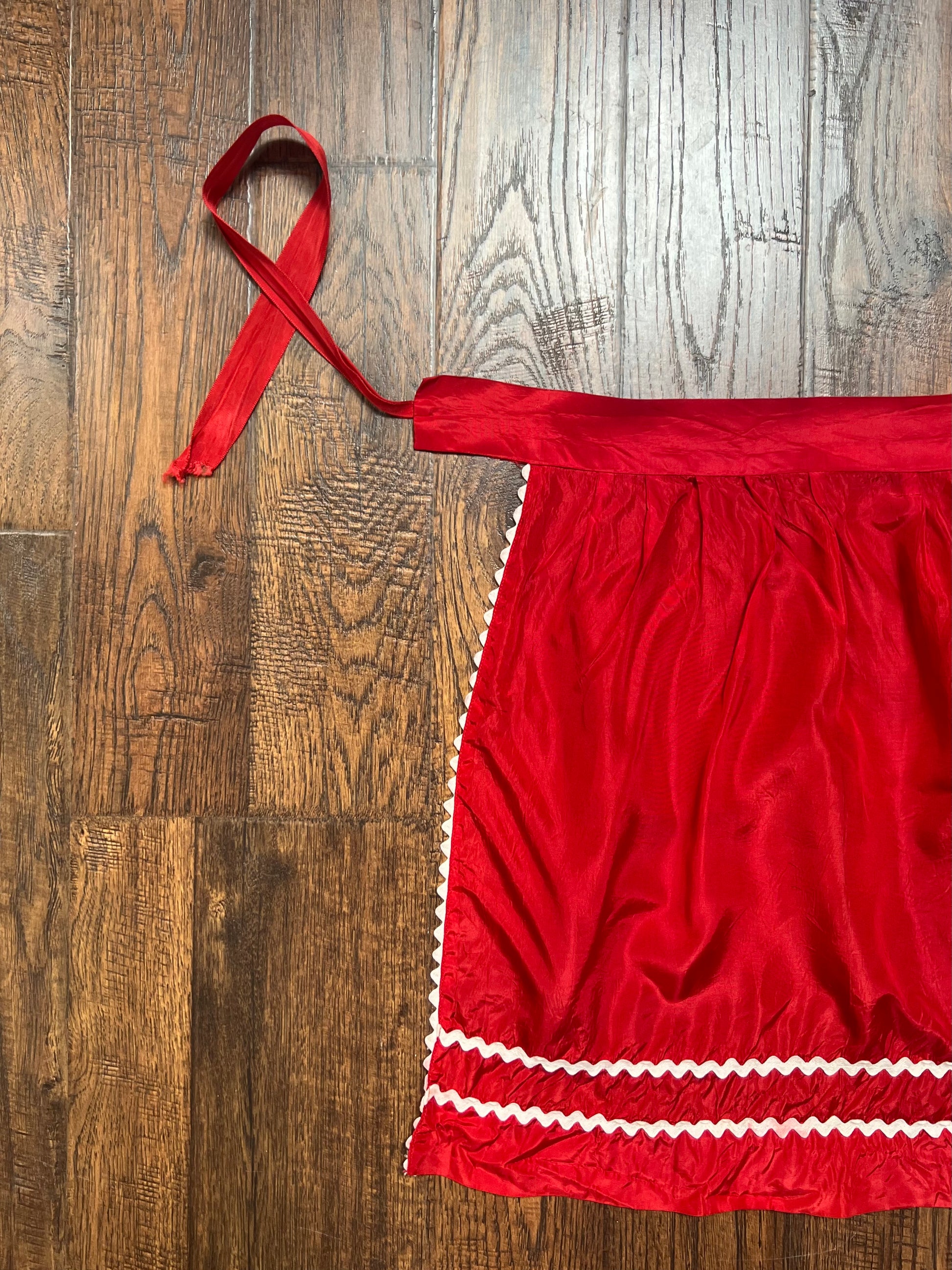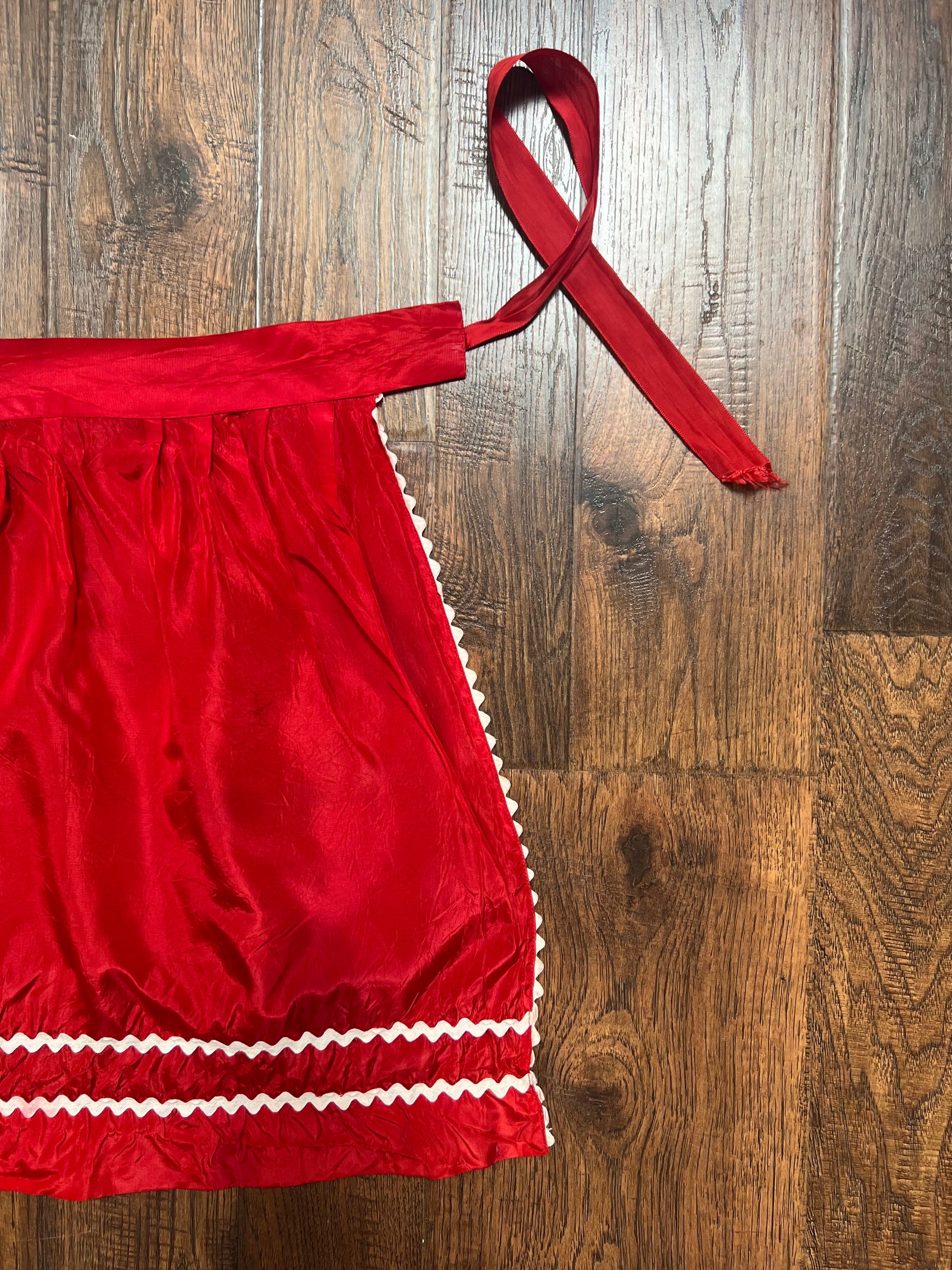 Vintage Clothing - Handmade Half Apron - Red with White Gingerbread Trim