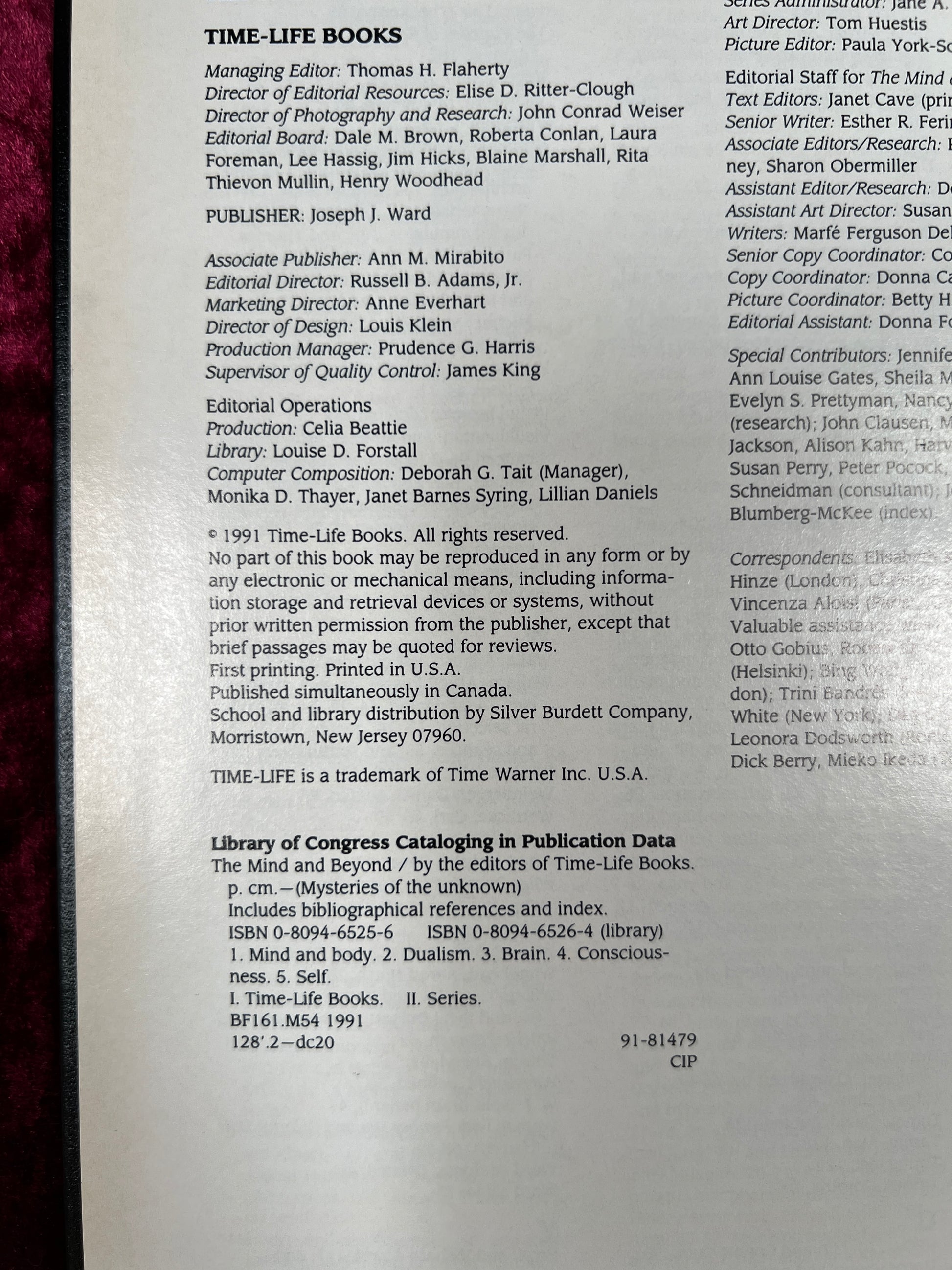Vintage Hardcover Coffee Table Book - Time Life Mysteries Of The Unknown - The Mind and Beyond
