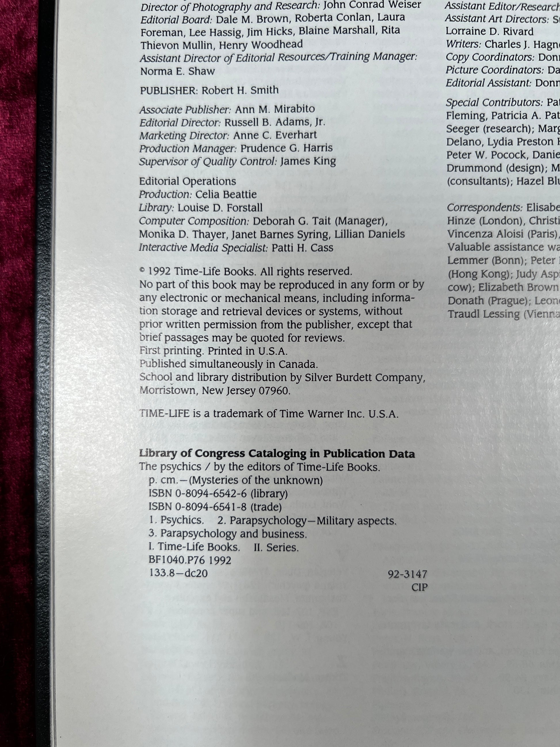 Vintage Hardcover Coffee Table Book - Time Life Mysteries Of The Unknown - The Psychics