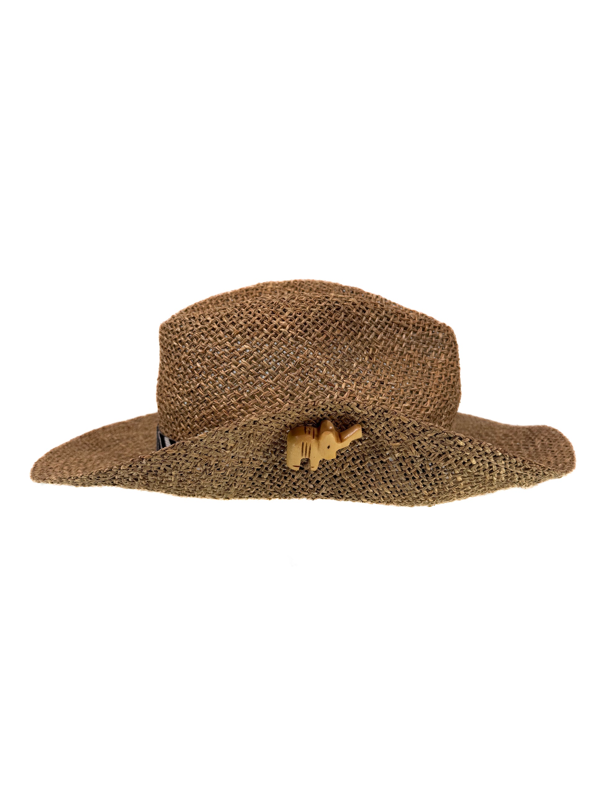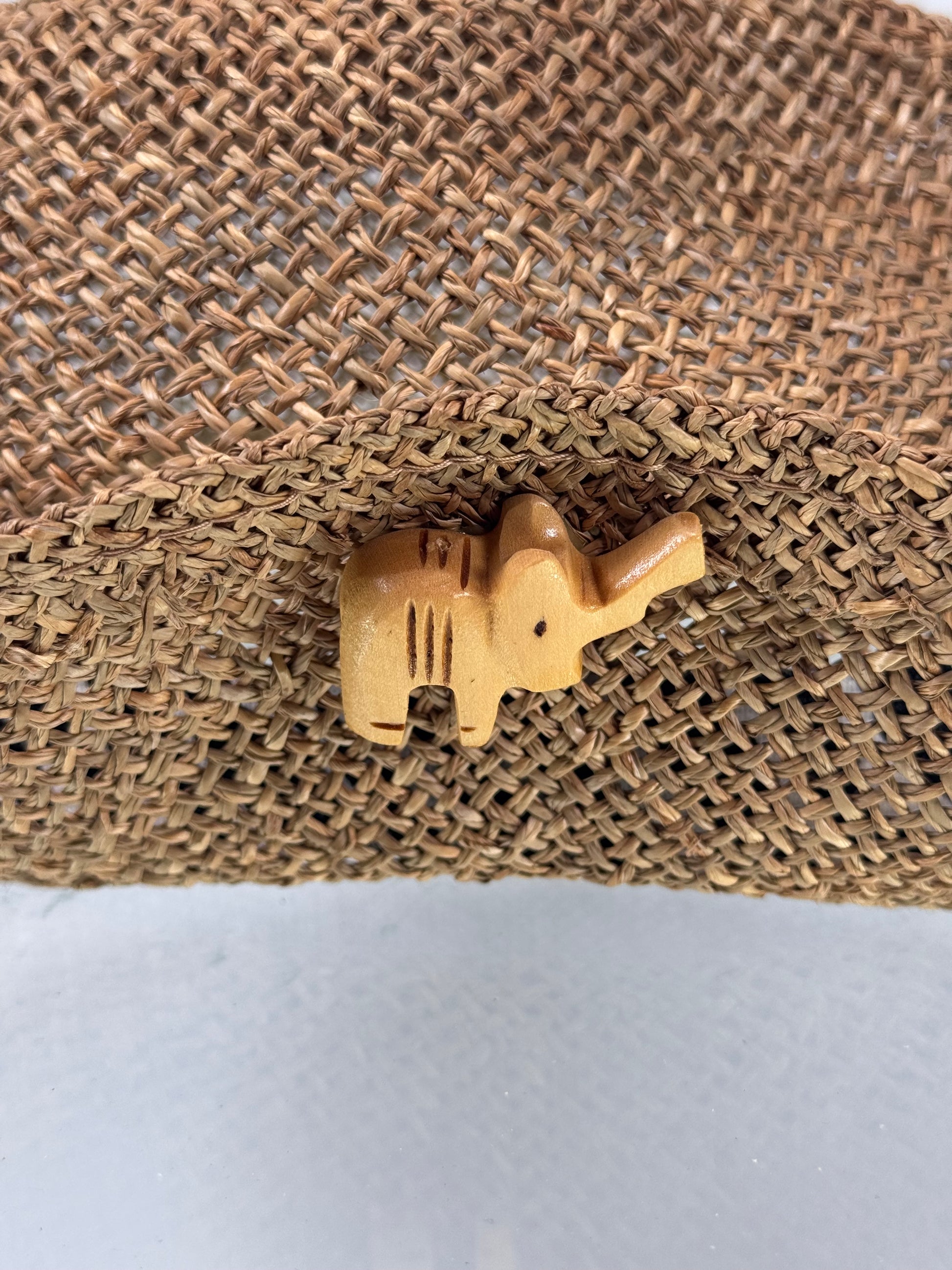 Vintage Hat - Straw Hat with Zebra Band & Elephant Pin