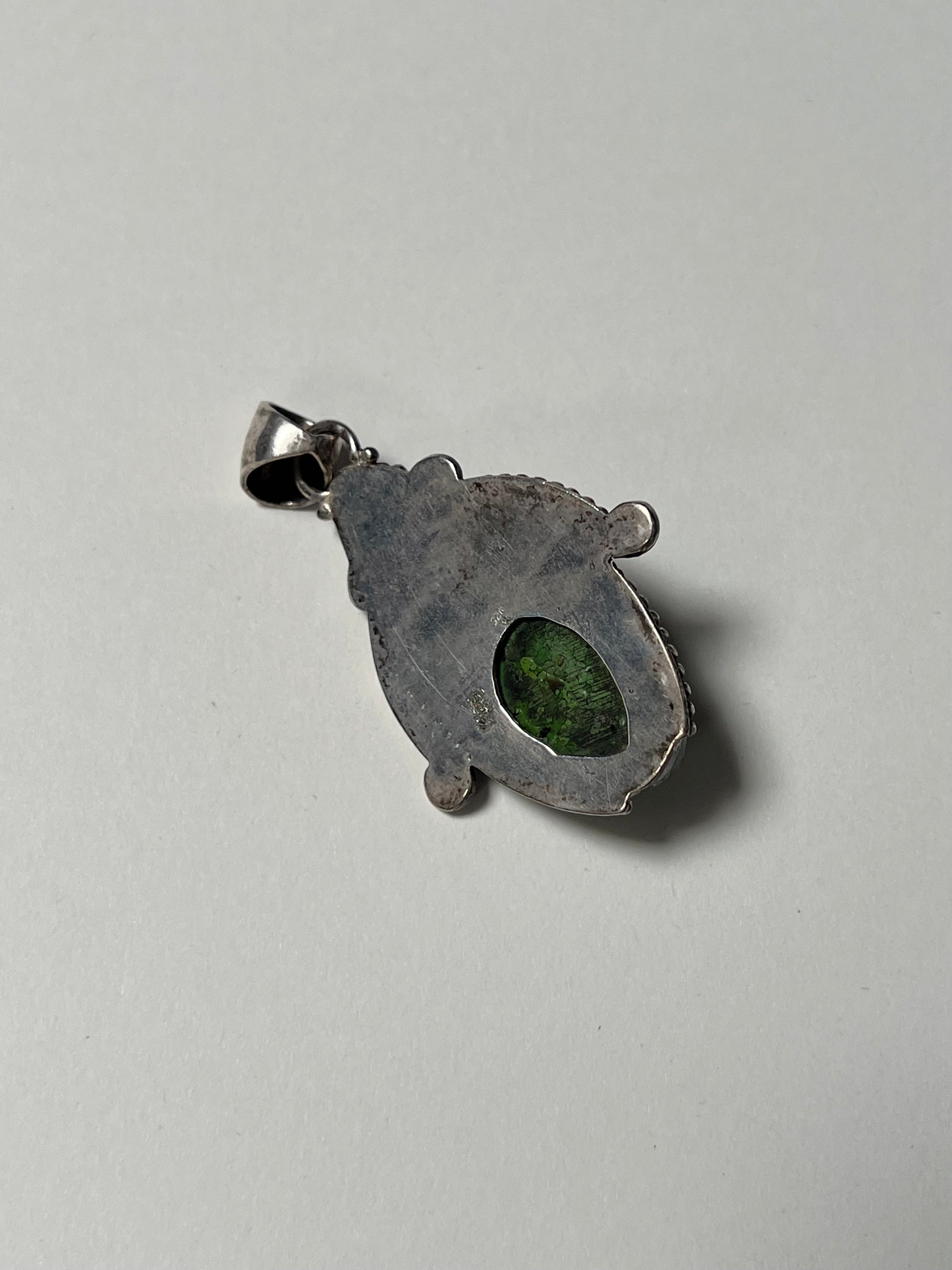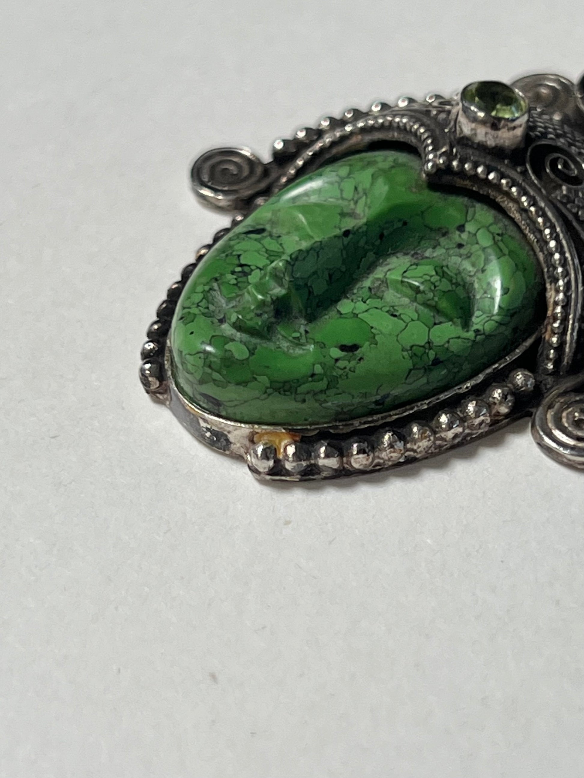 Vintage Jewelry - 925 Sterling Silver Pendant - Carved Moon Face Goddess