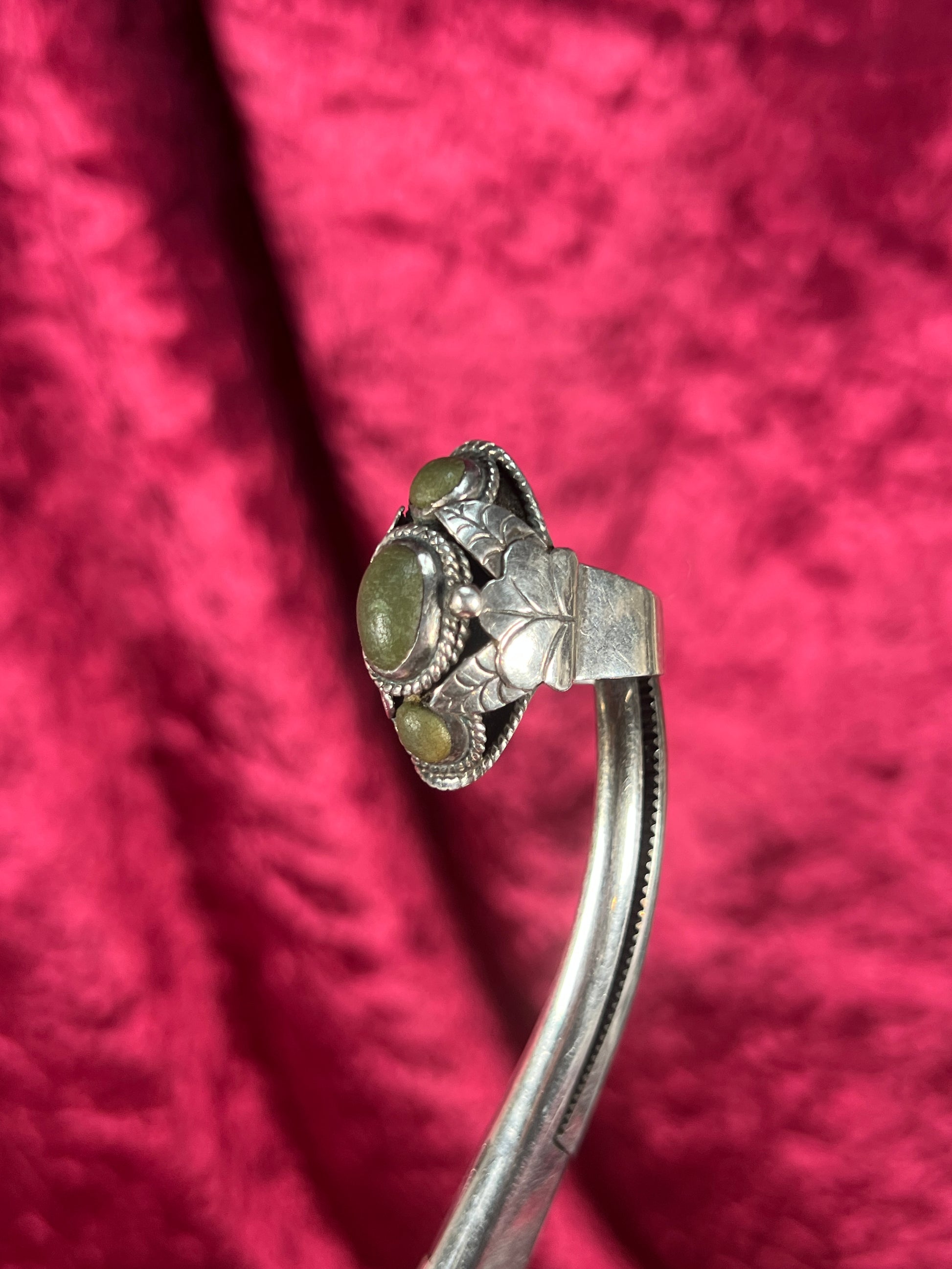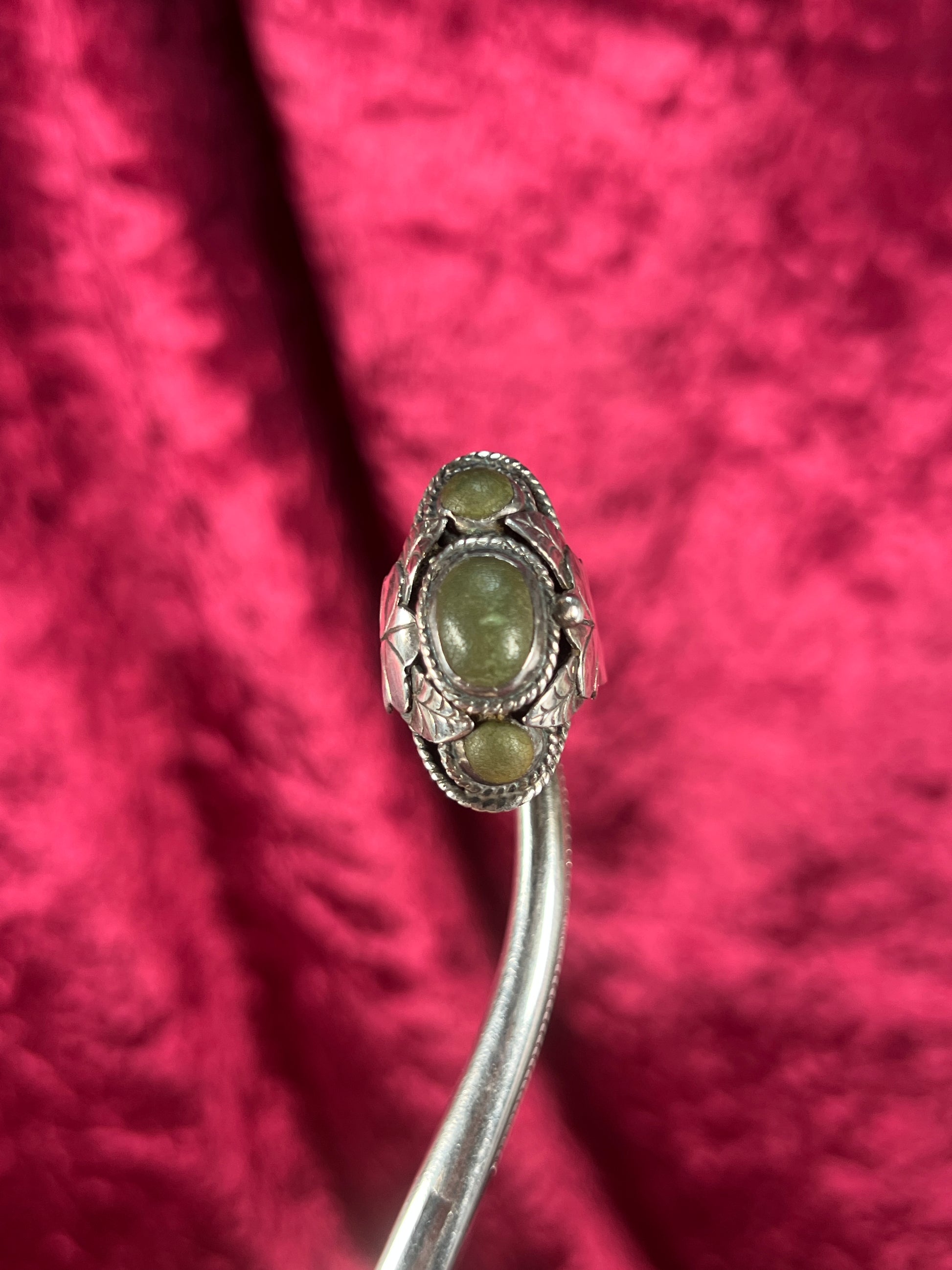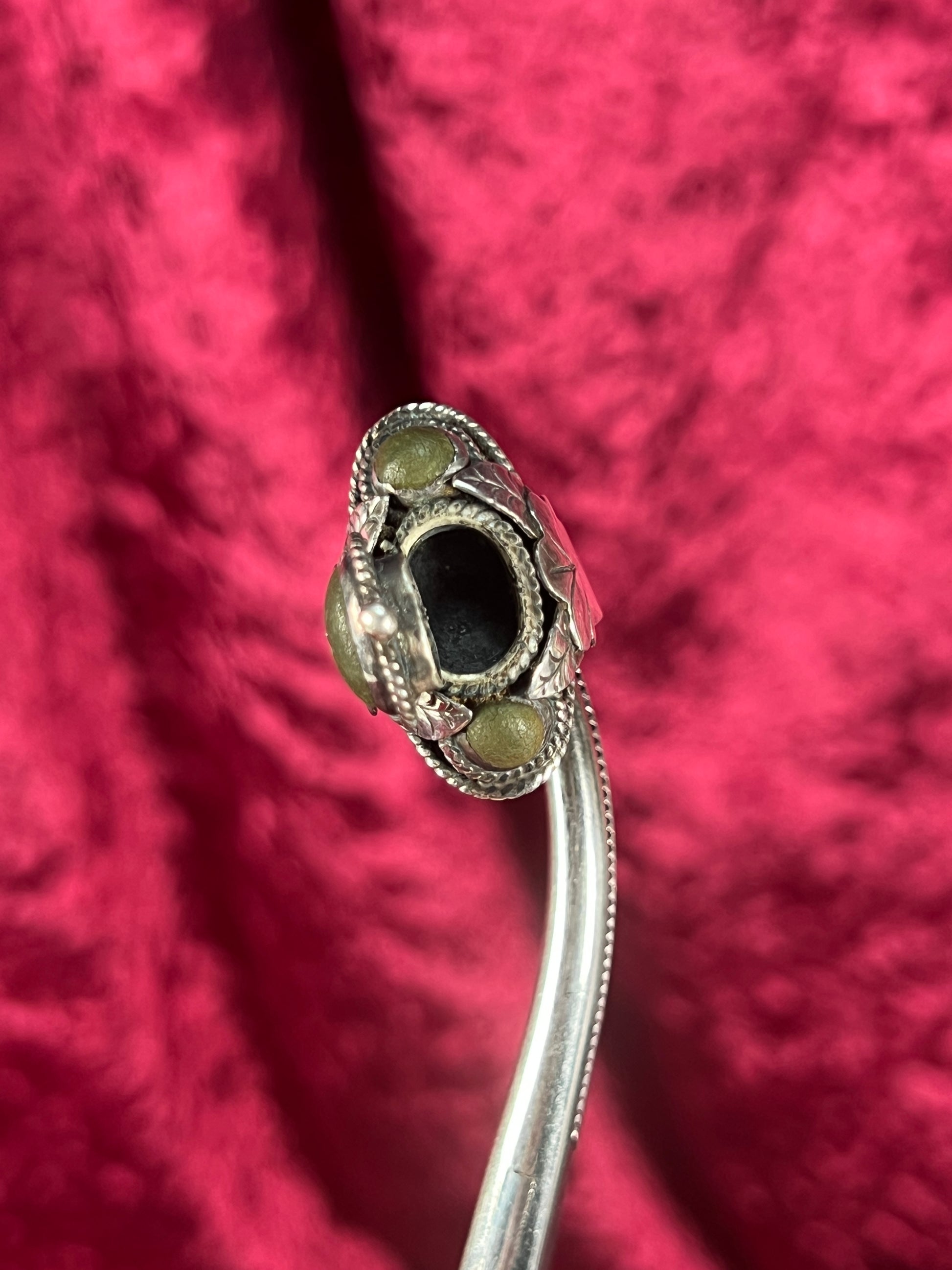 Vintage Jewelry - Adjustable Poison Ring - Sterling Silver - Green Center Stone - Taxco