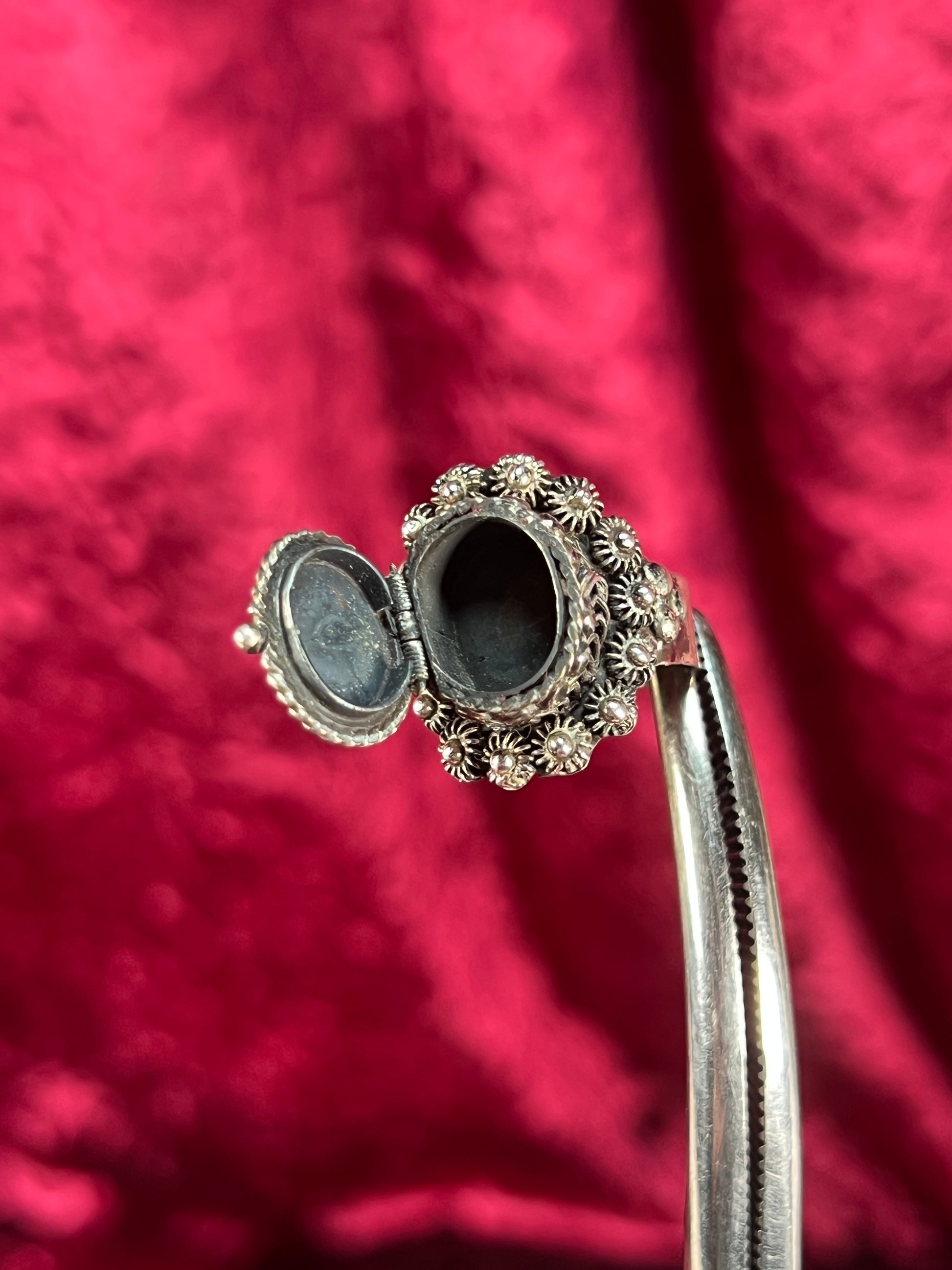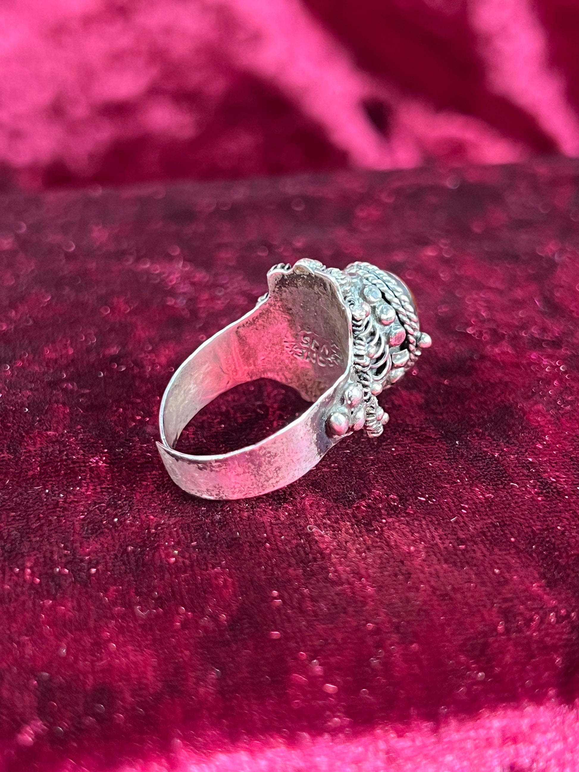 Vintage Jewelry - Adjustable Poison Ring - Sterling Silver - Tigers Eye Center Stone - Taxco
