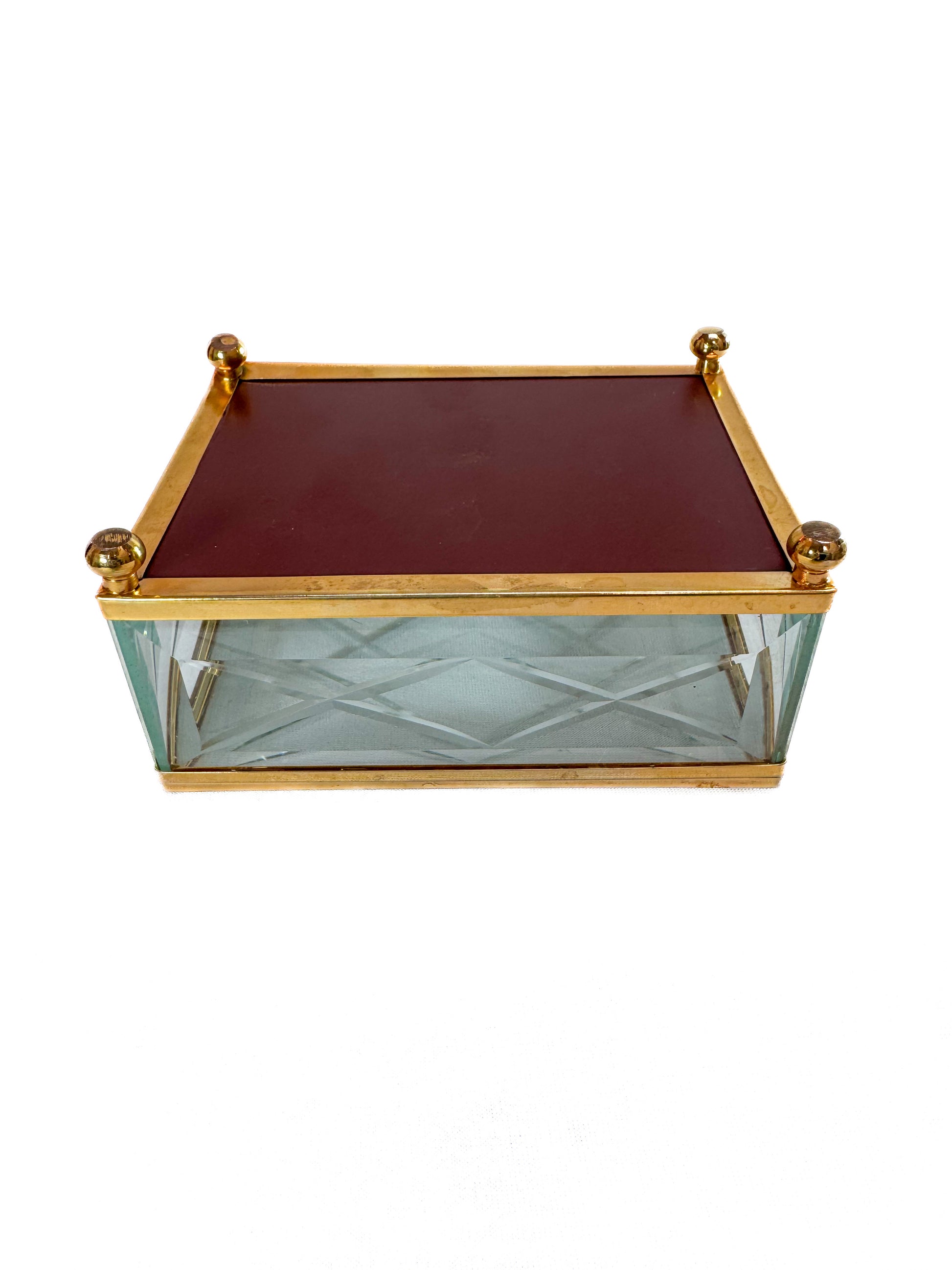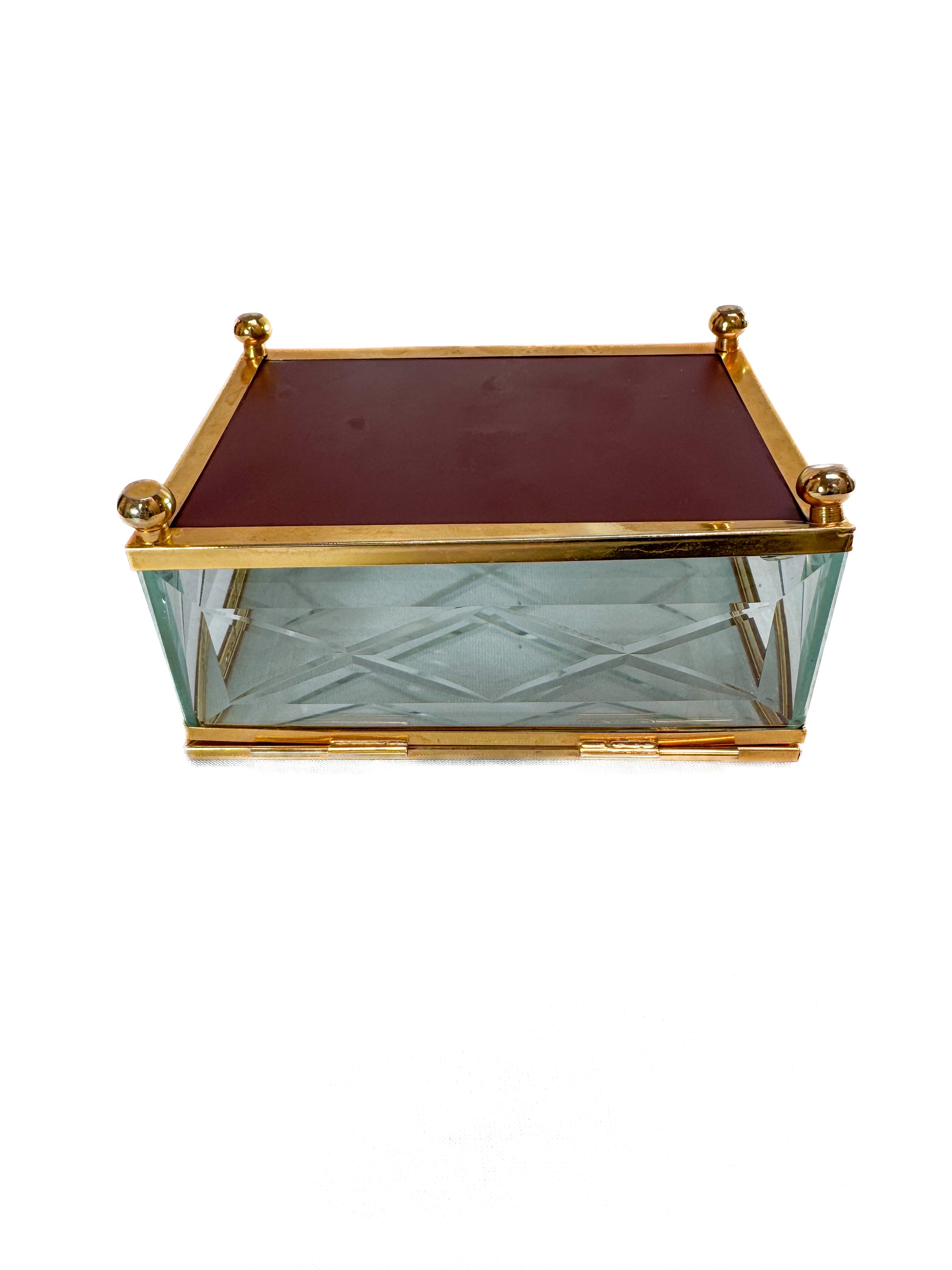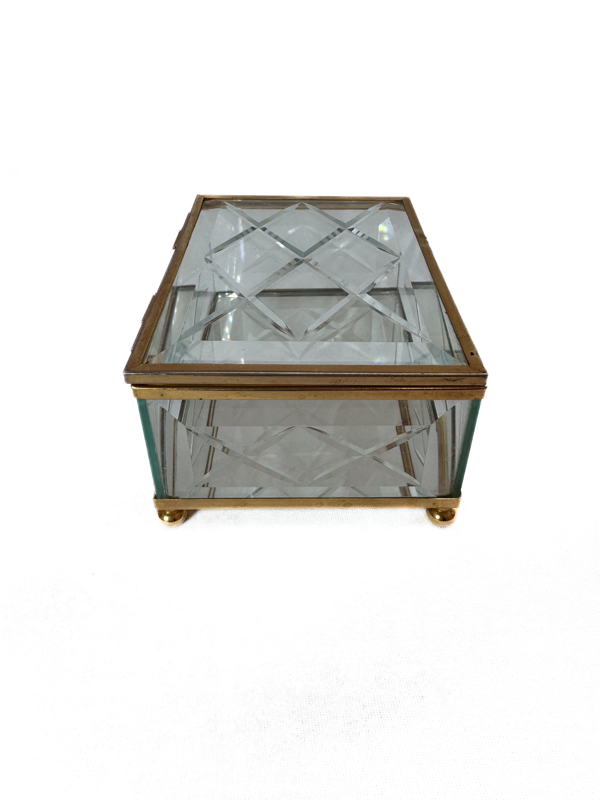 Vintage Jewelry Box - Pillow Cut Beveled Glass - Mirrored Bottom - Brass Feet