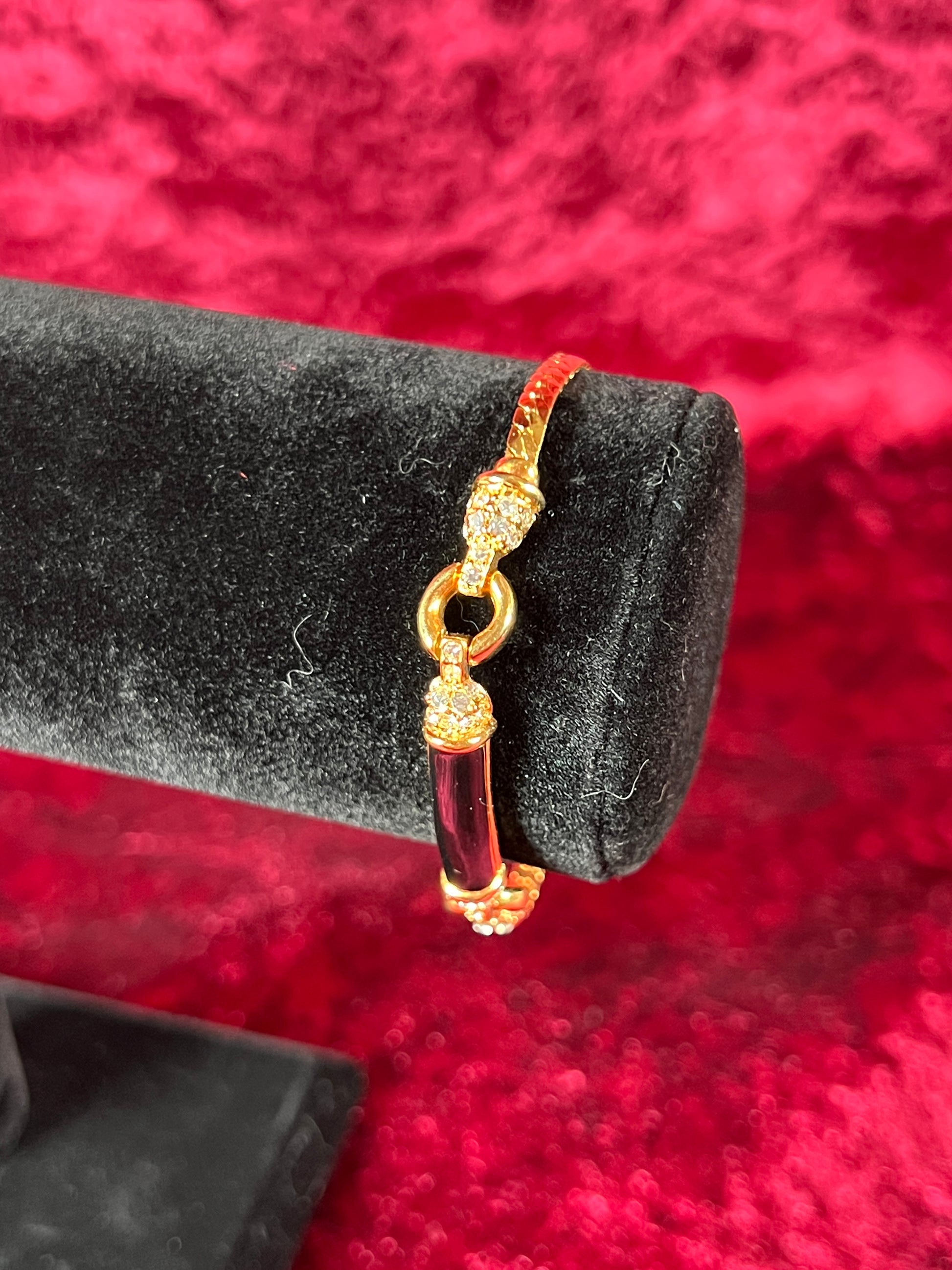 Vintage Jewelry - Bracelet - Gold Tone - Black Enamel Center with Clear Rhinestones - 7.75"