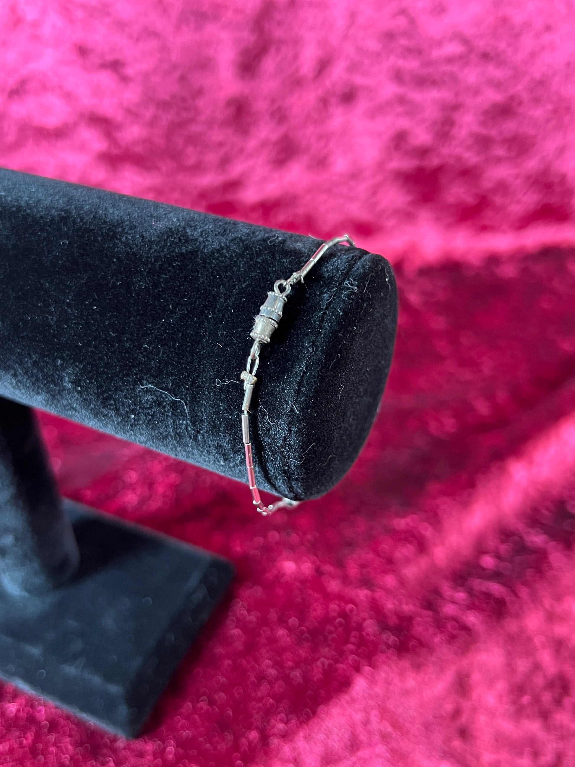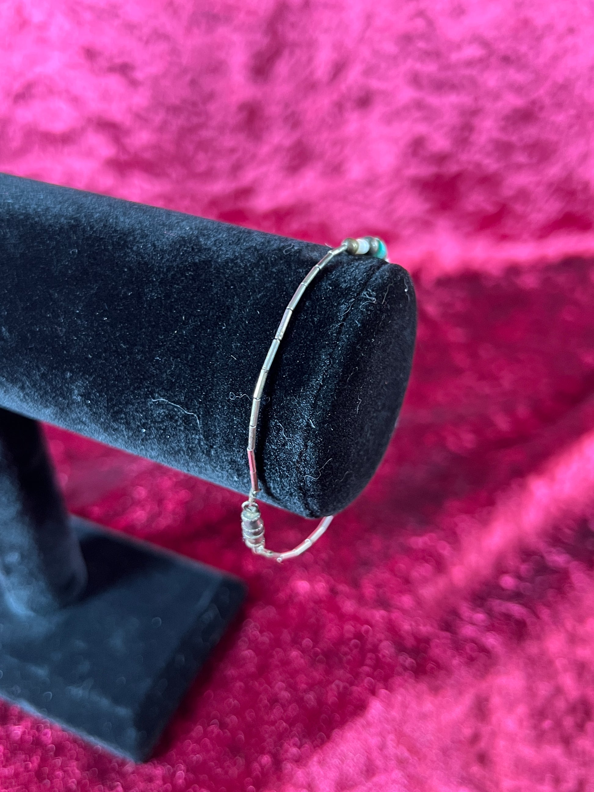 Vintage Jewelry - Beaded Bracelet - Silver Tone - Puka Shell and Turquoise - 7.5"