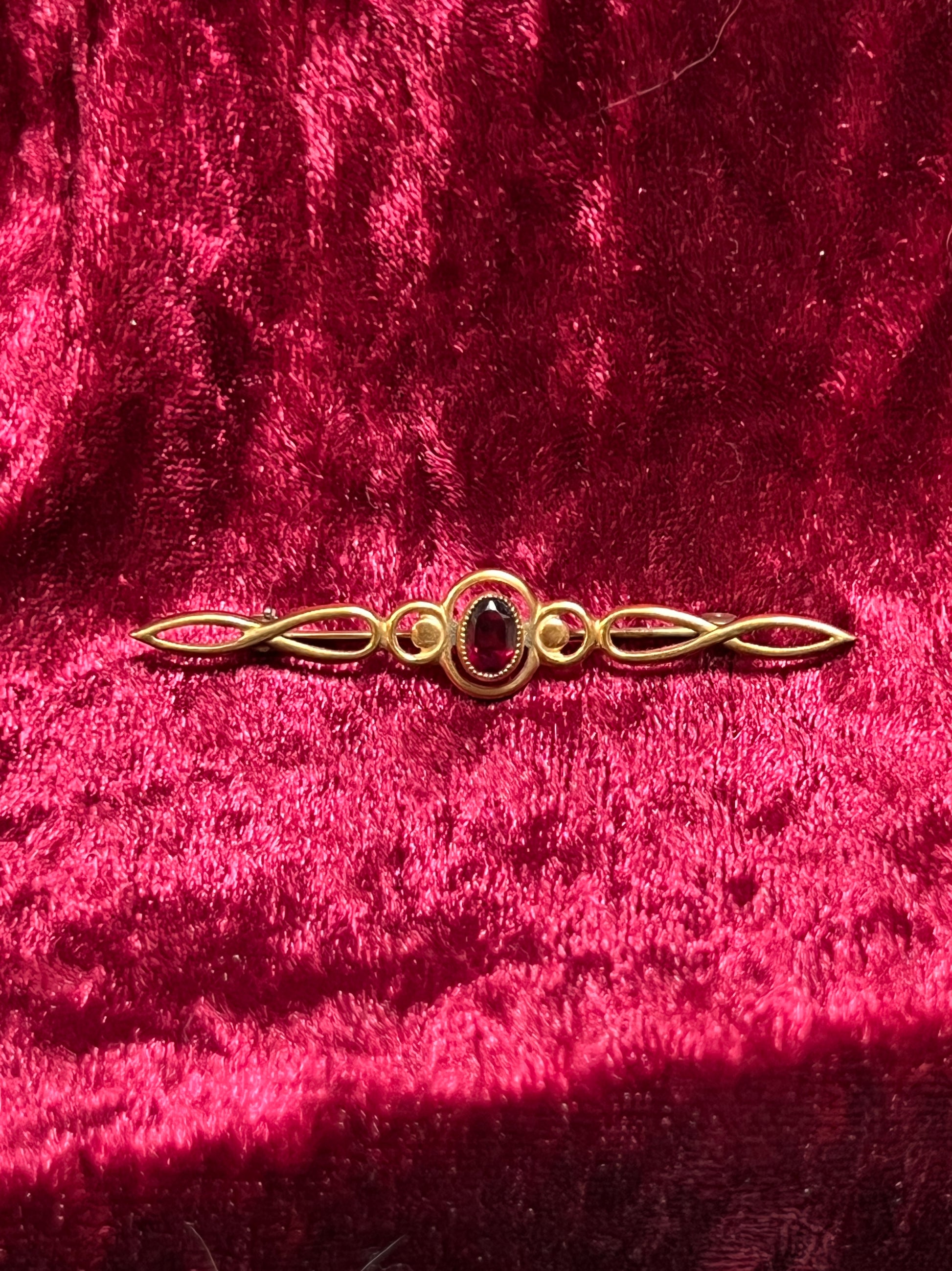 Vintage Jewelry - Brooch - 14KT Gold Filled - Curve Design - Red Faceted Gem