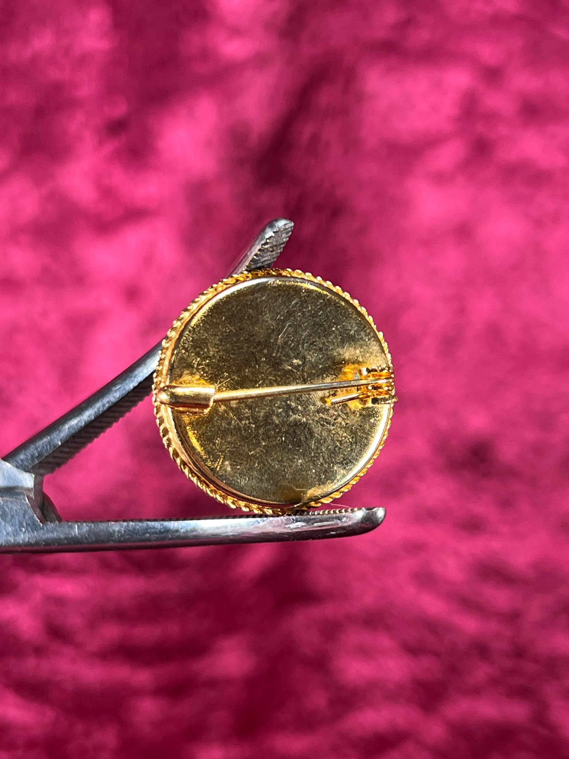 Vintage Jewelry - Brooch - Italian Millefiori Micro Mosaic - Circle - Red Flowers in White
