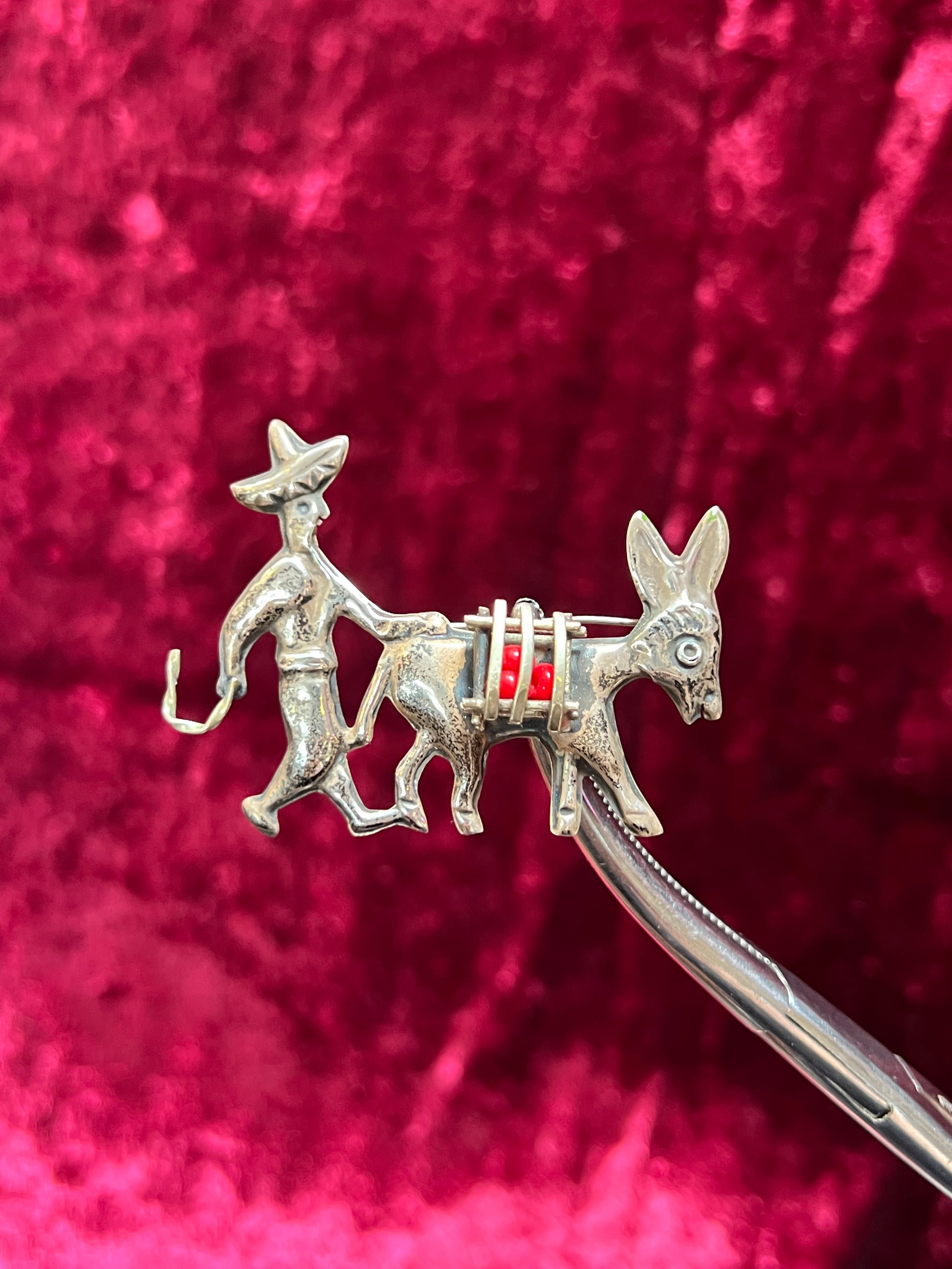 Vintage Jewelry - Brooch - Sterling Silver - Donkey and Minder - Mexico