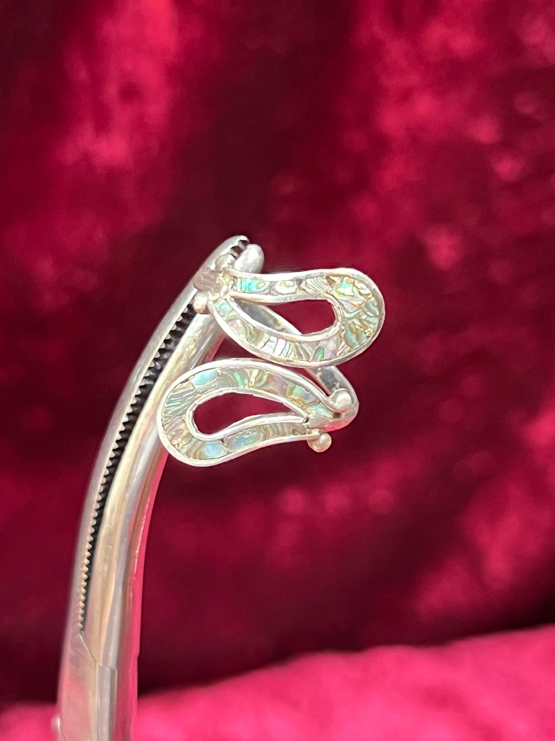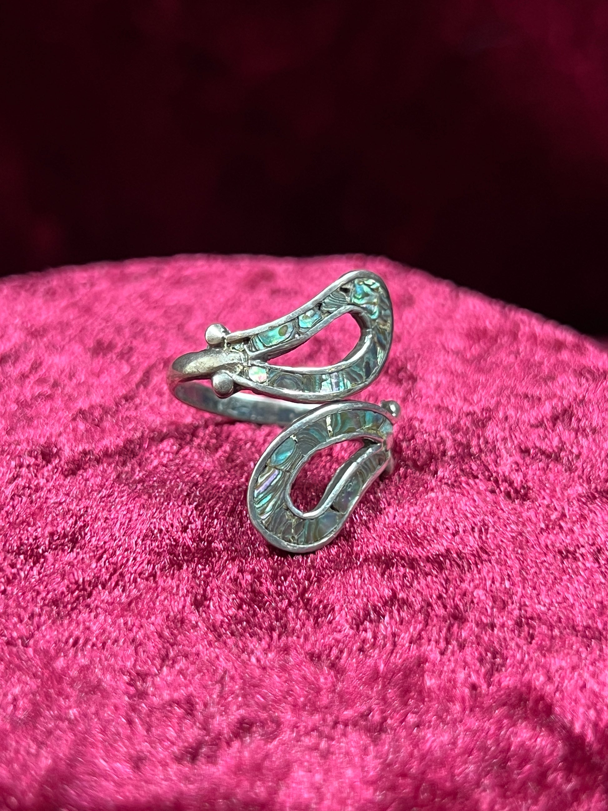 Vintage Jewelry - Bypass Ring - 925 Silver - Inlaid Abalone Shell - 7 - Mexico