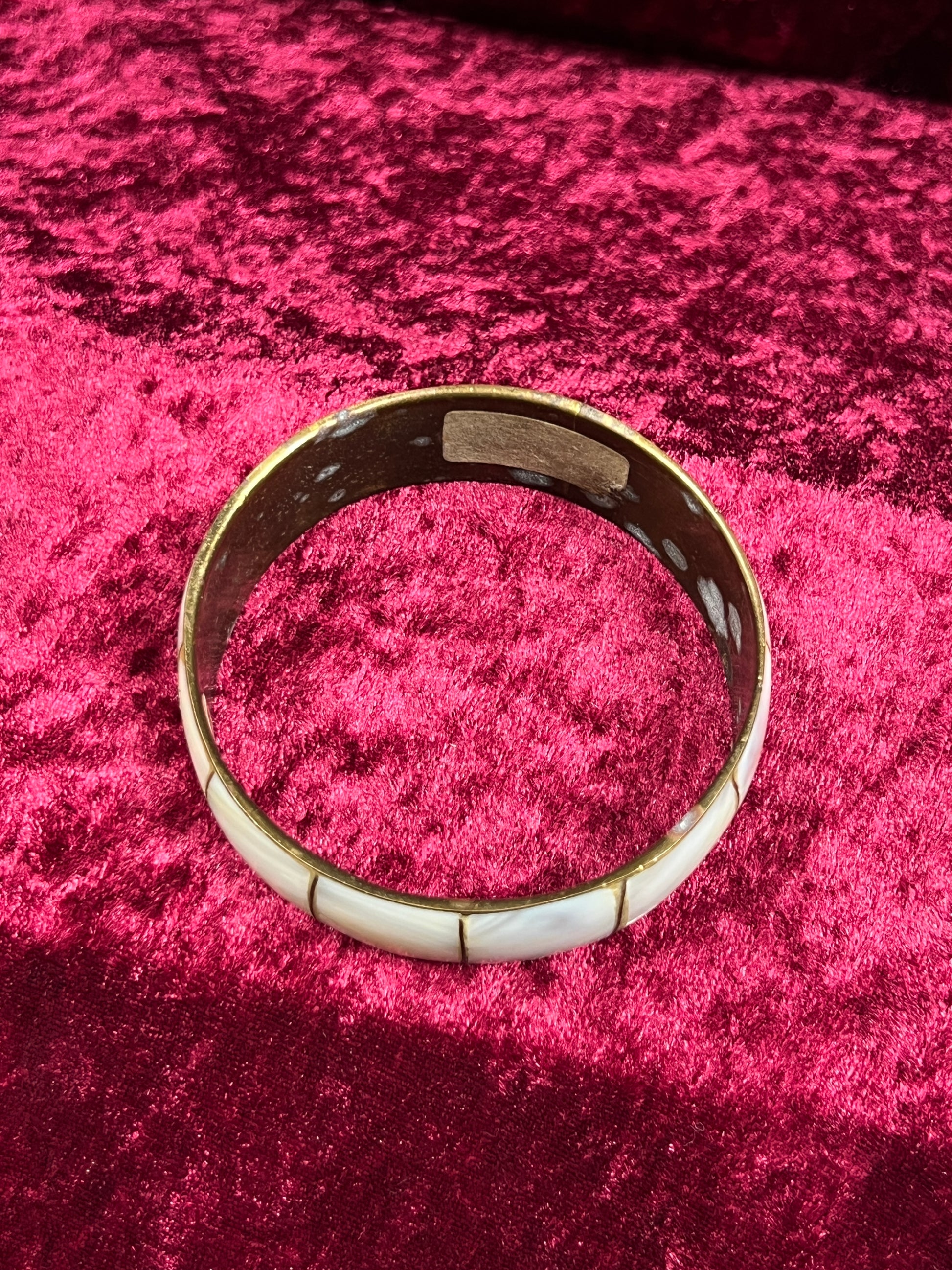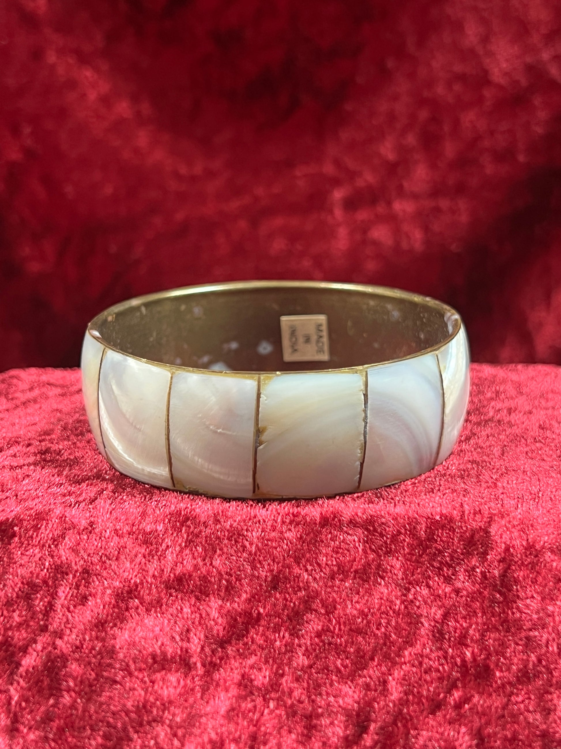 Vintage Jewelry - Chunky Bangle Bracelet - Brass and Mother Of Pearl - Made In India