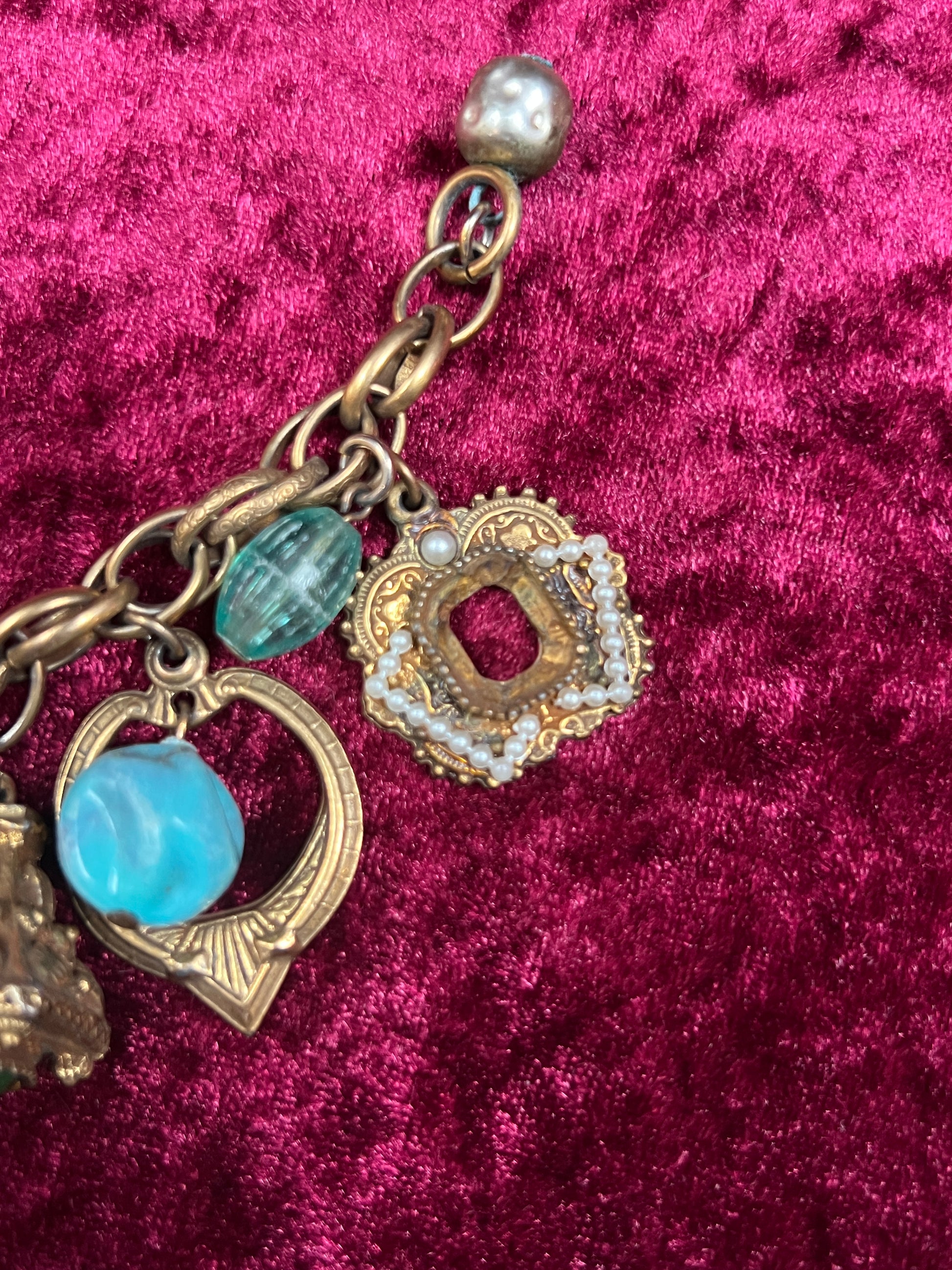 Condition: In good vintage condition. One charm is missing the center stone, and two of the tall pyramid looking charms are missing a pearl.